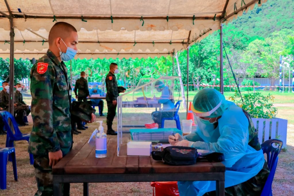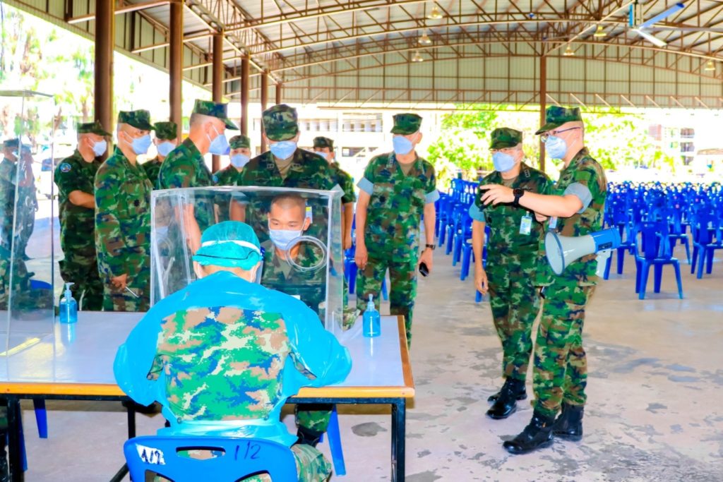 เมื่อวันที่ 30 มิ.ย.64 พล.ร.ต.บัณฑิต สุนทรธนวัจน์ รอง.ผบ.นย. เยี่ยมชมการซักซ้อมการปฏิบัติงานการคัดกรองโรคติดเชื้อไวรัสโคโรนา ๒๐๑๙ (COVID-19) ให้แก่ทหารกองเกินเข้าเป็นทหารกองประจำการการผลัดที่ 1/2564 (1-2 ก.ค.64) ของ พัน.พ.กรม สน.พล.นย., พัน.พ.กรม สน.สอ.รฝ. และ กองเวชกรรมป้องกัน รพ.อาภากรเกียรติวงศ์ ฐท.สส. ตามมาตราการป้องกันโรคติดเชื้อไวรัสโคโรนา ๒๐๑๙ (COVID-19) การนี้ พล.ร.ต.ชัยวัฒน์ คุ้มทิม ผบ.ศฝ.นย. ให้การต้อนรับ ณ กฝท.ศฝ.นย.