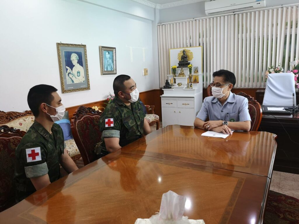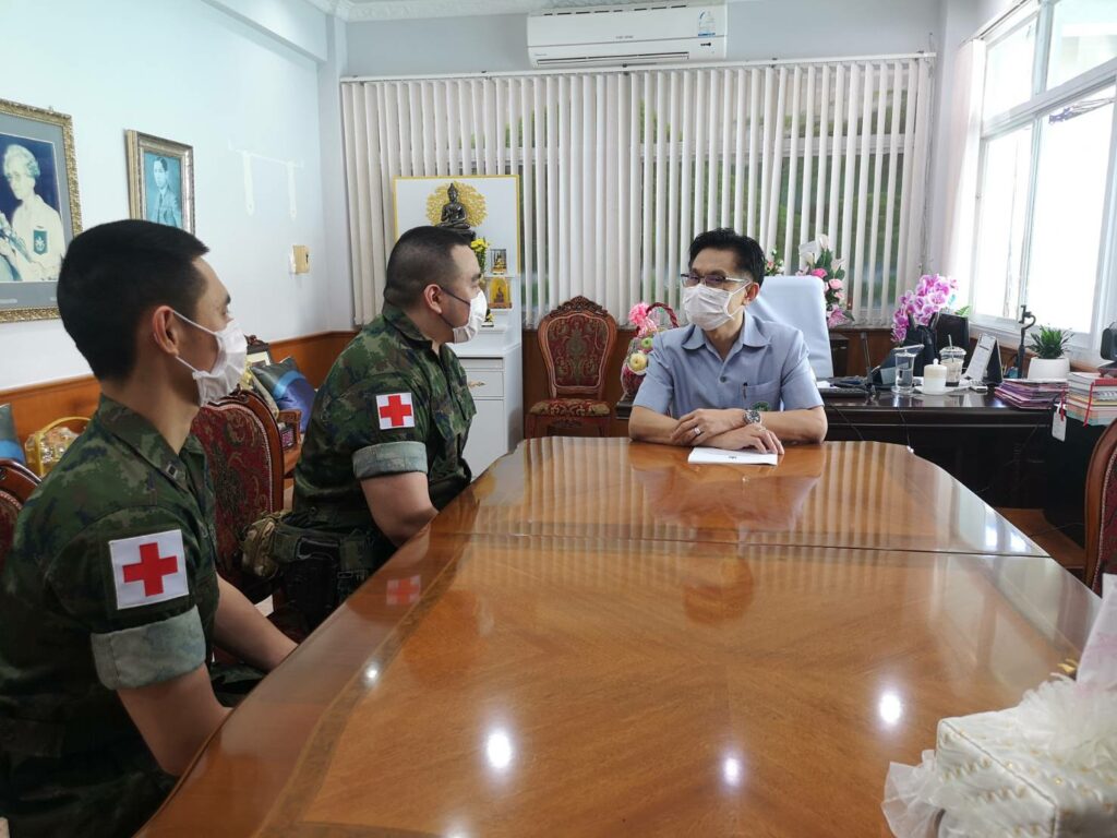 เมื่อ ๒๒ มิ.ย.๖๕ เวลา ๑๔๐๐ ร.ต.ตะวัน สมบูรณ์ศักดิกุล หน.ชพค.ฉก.นย.ทร.และ ร.ต.นิรุตติ ตั้งทองทวี หน.ส่วนการรักษาพยาบาล ชพค.ฉก.นย.ทร.เข้าเยี่ยมคำนับ นายแพทย์สาธารณสุขจังหวัดนราธิวาส ณ สำนักงานสาธารณสุขจังหวัดนราธิวาส อ.เมือง จว.นราธิวาส เพื่อพบปะพูดคุย และแสวงความร่วมมือระหว่างหน่วยงาน ในการนี้ ชพค.ฯ ได้ขอความร่วมมือในการจัดการอบรมกำลังพลสำหรับเป็นผู้ช่วย จนท.สายแพทย์ สนับสนุนให้กับหน่วยที่มีความต้องการ โดยนายแพทย์สาธารณสุขจังหวัดนราธิวาส พร้อมให้ความร่วมมือ สนับสนุนวิทยากร และออกใบประกาศรับรองการอบรม / พัน.พ.กรม สน.พล.นย. / By ข่าวผู้บังคับบัญชา จำนวนคนดู : 23