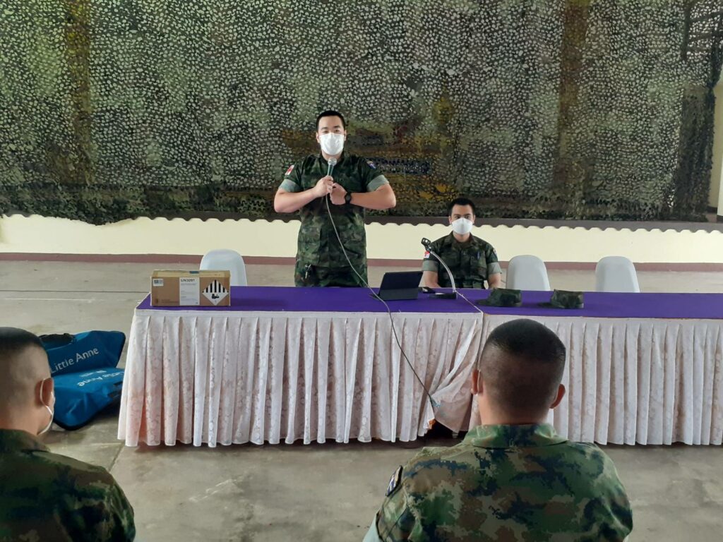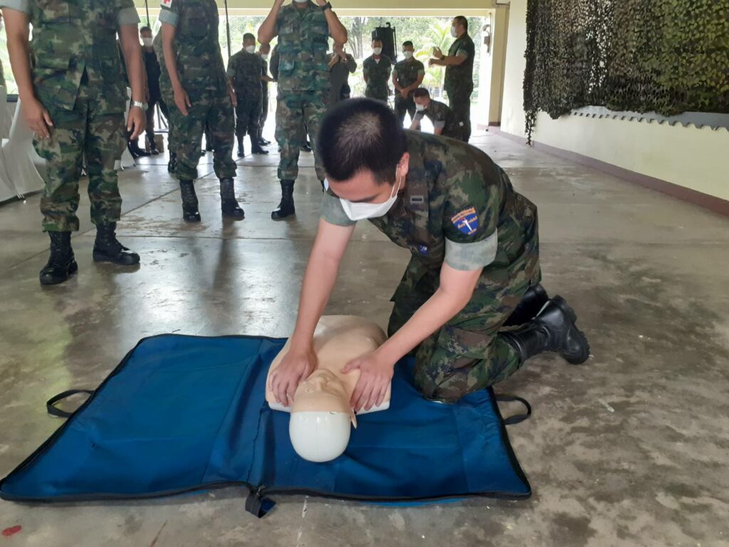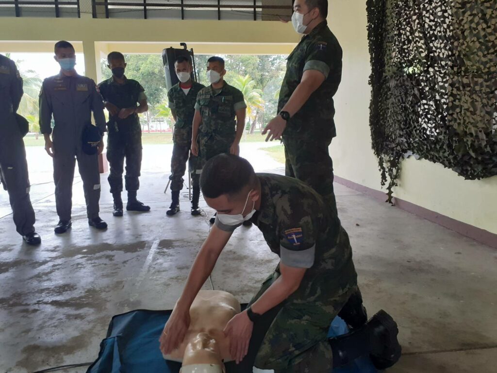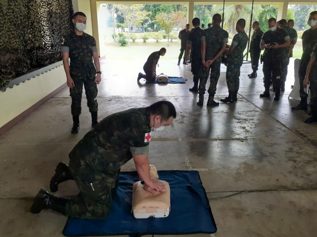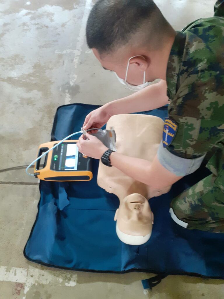 เมื่อ ๔ ก.ค.๖๕ เวลา ๐๙๐๐ ร.ต.นิรุตติ ตั้งทองทวี หัวหน้าส่วนการรักษาพยาบาล ชพค.ฉก.นย.ทร.และ ร.ต.ธนพงศ์ นงค์นวล หัวหน้าส่วนชุดแพทย์เคลื่อนที่ ชพค.ฉก.นย.ทร.เป็นวิทยากรการฝึกอบรมการกู้ชีพขั้นพื้นฐาน และการใช้เครื่องกระตุกหัวใจไฟฟ้า (AED) ให้กับกำลังพล กรม ร.๓ พล.นย.และกำลังพล ฉก.นย.ทร. ณ อาคารอเนกประสงค์ พัน.ร.๙ รอ.กรม ร.๓ พล.นย.(ค่ายจุฬาภรณ์) ต.โคกเคียน อ.เมืองนราธิวาส จว.นราธิวาส โดยมีผู้เข้ารับการฝึกอบรม จำนวน ๕๕ นาย ผลการปฏิบัติผู้เข้ารับการฝึกอบรมรู้และเข้าใจ หลักการและการปฏิบัติการกู้ชีพขั้นพื้นฐาน และการใช้เครื่องกระตุกหัวใจไฟฟ้า (AED) โดยเป็นไปด้วยความเรียบร้อย / พัน.พ.กรม สน.พล.นย. / By ข่าวผู้บังคับบัญชา จำนวนคนดู : 12