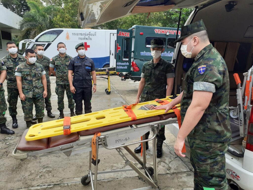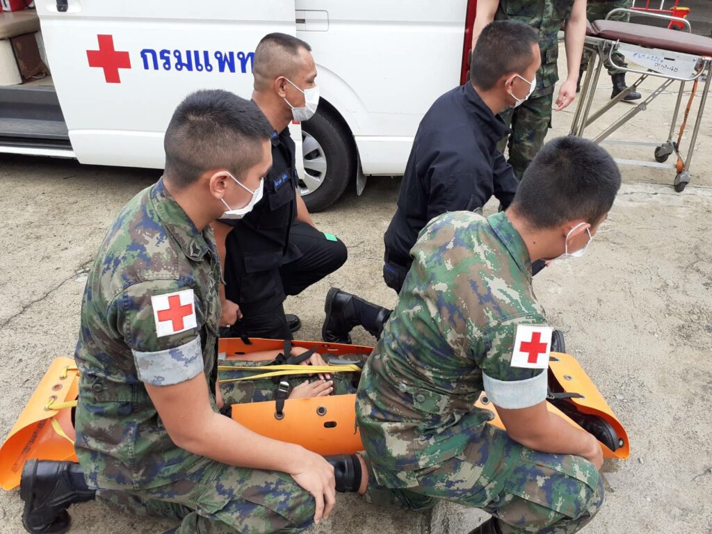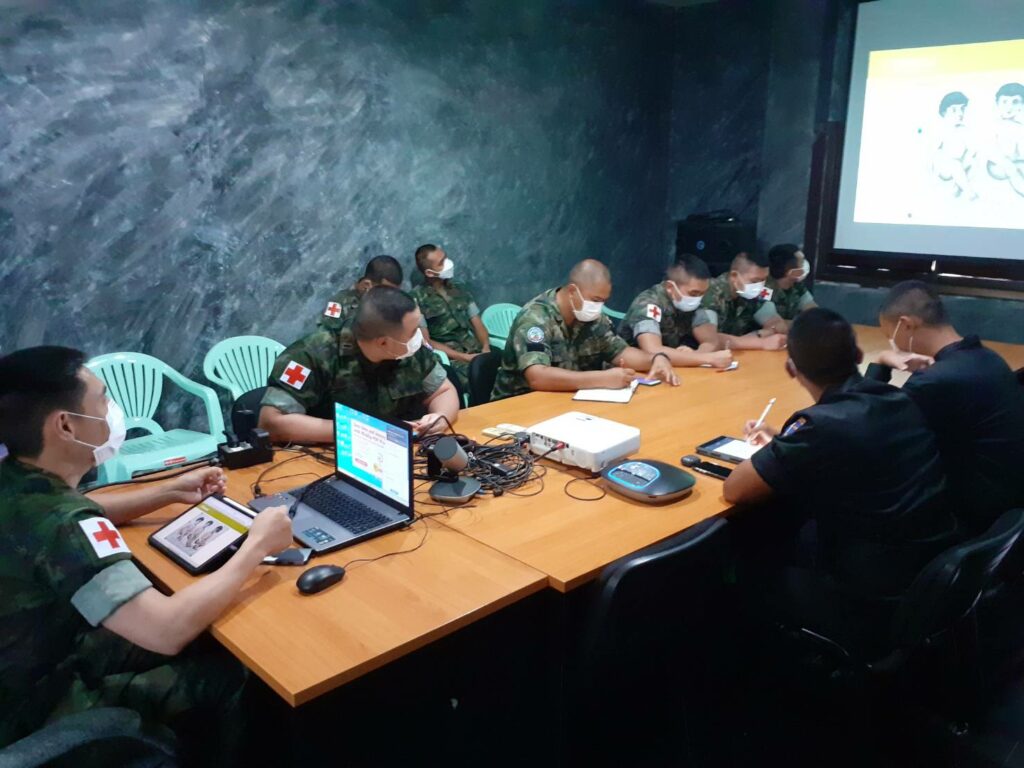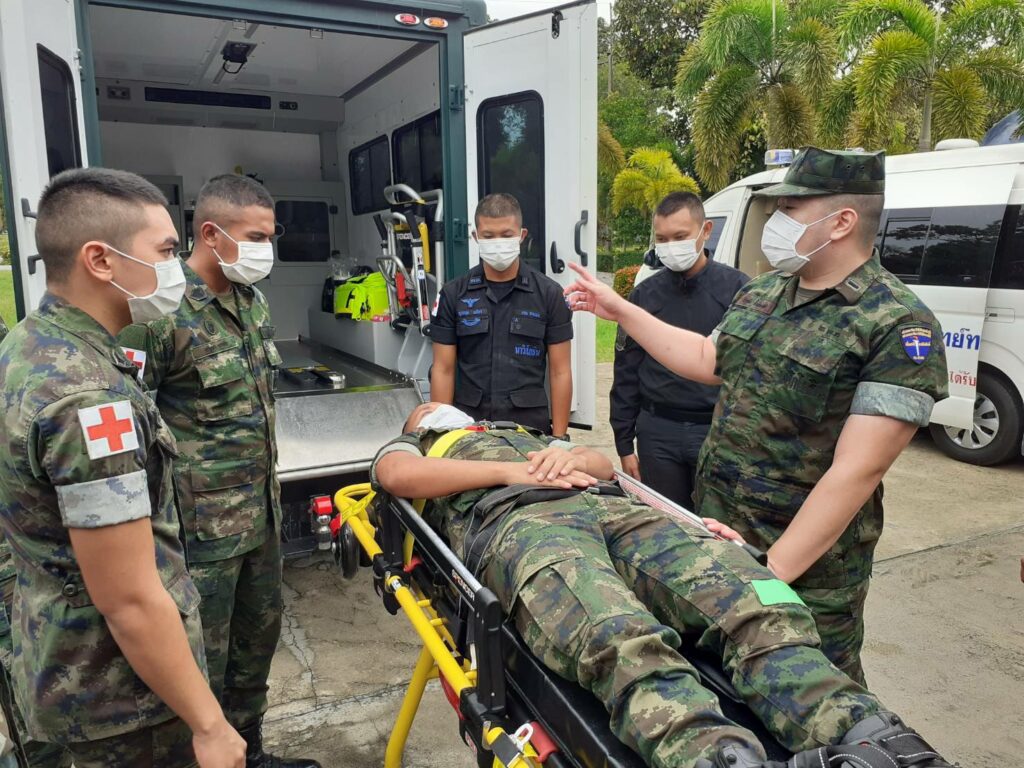 เมื่อ ๒๓ ส.ค.๖๕ ชุดแพทย์เคลื่อนที่ หน่วยเฉพาะกิจนาวิกโยธิน กองทัพเรือ ดำเนินการฝึกทบทวนกำลังพลสายแพทย์ ตามแผนการฝึกทบทวนประจำปี ๒๕๖๕ ณ หมวดพยาบาล ค่ายจุฬาภรณ์ มีกำลังพลสายแพทย์ที่ปฏิบัติงานร่วมกับ ฉก.นย.ทร. เข้ารับการฝึก โดยมี เรือตรี ตะวัน สมบูรณ์ศักดิกุล หัวหน้าชุดแพทย์เคลื่อนที่ ฉก.นย.ทร. และเรือตรี นิรุตติ ตั้งทองทวี หัวหน้าส่วนการรักษาพยาบาล ฉก.นย.ทร. เป็นวิทยากรบรรยาย ผู้เข้ารับการฝึกอบรมได้รับความรู้และมีความเข้าใจในการให้สนับสนุนงานบริการด้านสายแพทย์เพิ่มมากขึ้น / พัน.พ.กรม สน.พล.นย. / By ข่าวผู้บังคับบัญชา จำนวนคนดู : 14
