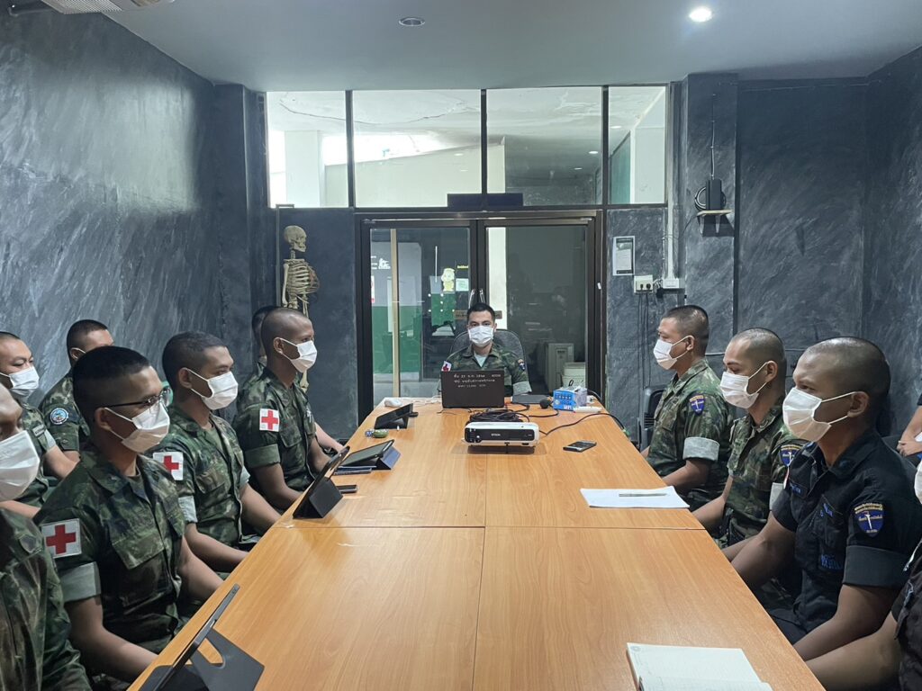 เมื่อ ๑๘ ก.พ.๖๖ ว่าที่ ร.ท.ธนพงศ์ นงค์นวล หน.ชพค.ฉก.นย.ทร.และ ว่าที่ ร.ท.ตะวัน สมบูรณ์ศักดิกุล หน.ส่วน ชพค.ฉก.นย.ทร. เป็นวิทยากรฝึกทบทวนสายแพทย์ ให้กับกำลังพลสายแพทย์ในพื้นที่ จว.นราธิวาส ณ ชพค.ฉก.นย.ทร. ต.โคกเคียน อ.เมืองนราธิวาส จว.นราธิวาส
