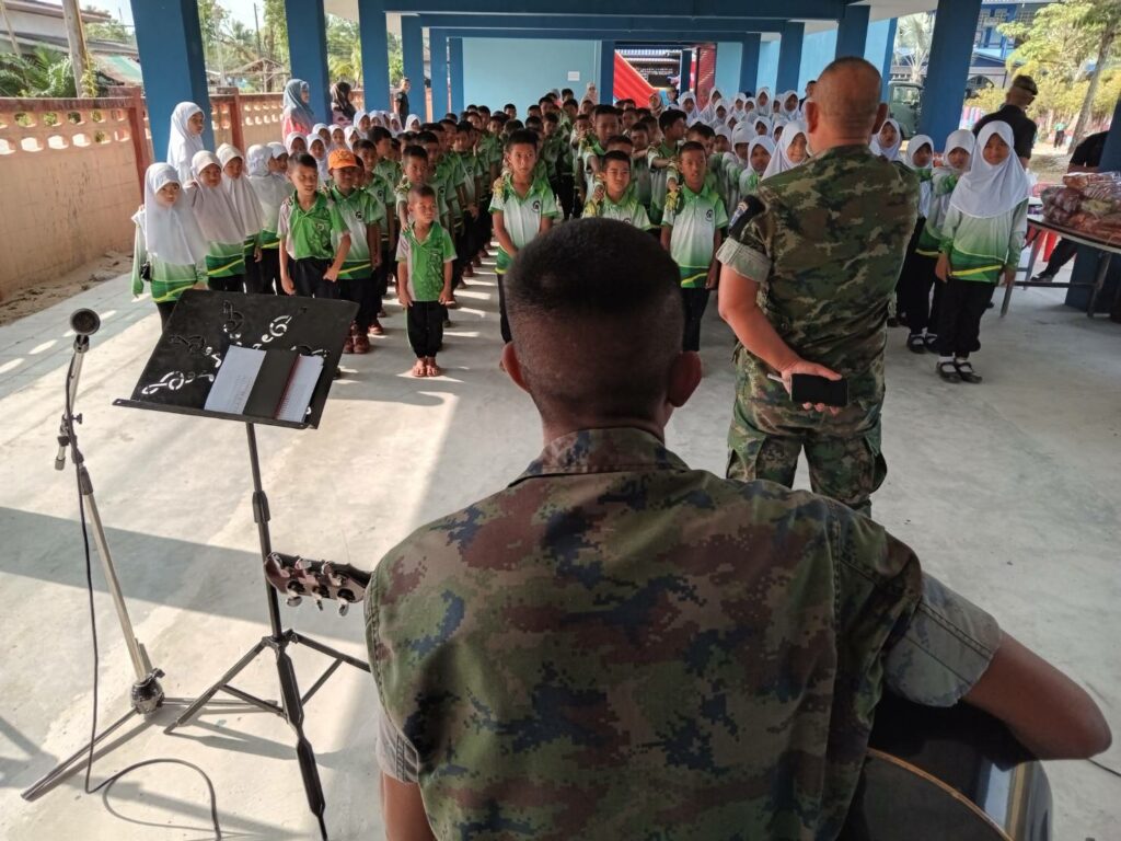 เมื่อ ๒๓ ก.พ.๖๖ ว่าที่ ร.ท.ตะวัน สมบูรณ์ศักดิกุล หน.ชพค.ฉก.นย.ทร. นำกำลังพลสายแพทย์พร้อมยารักษาโรค ออกให้บริการตรวจรักษาโรคแก่ประชาชนในพื้นที่รับผิดชอบของ ฉก.นย.ทร. ตามกิจกรรมโครงการ “นาวิก นาวี สัญจร” เดินเท้าเข้าทุกชุมชน ณ รร.บ้านกาเยาะมาตี ต.บาเระใต้ อ.บาเจาะ จว.นราธิวาส / พัน.พ.กรม สน.พล.นย. / By ข่าวผู้บังคับบัญชา จำนวนคนดู : 4