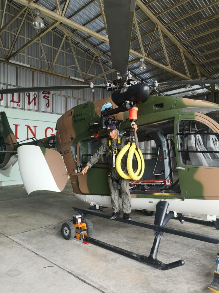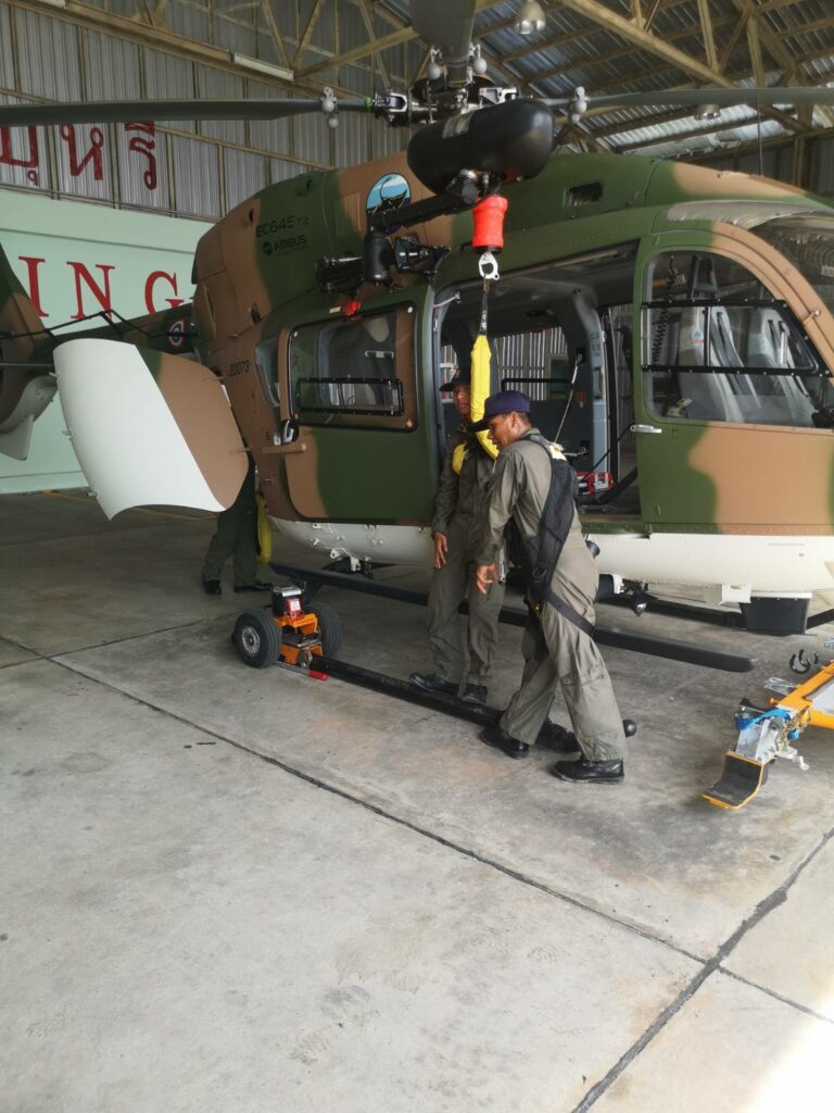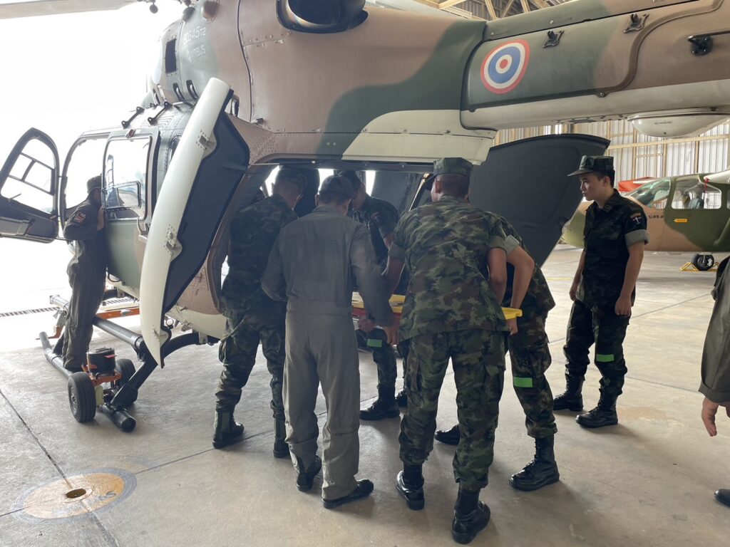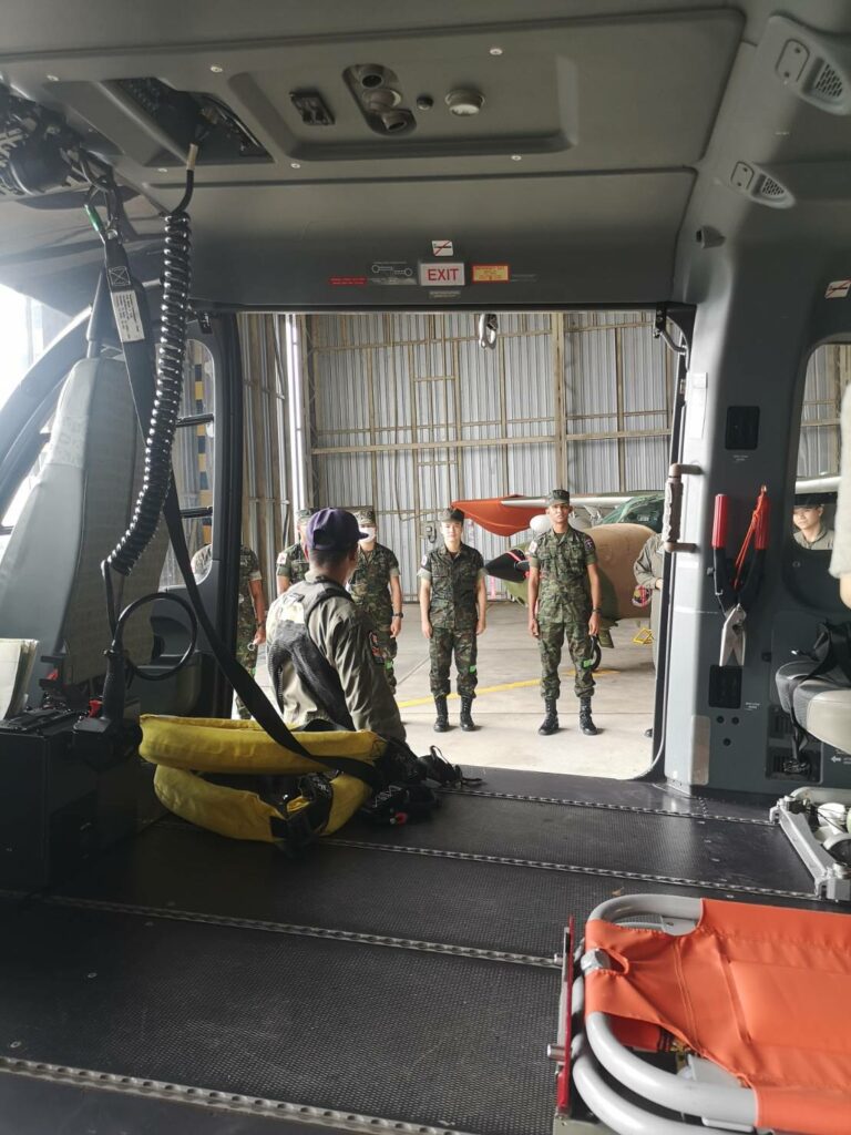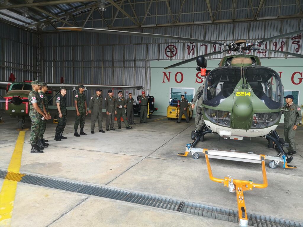 เมื่อ ๙ มิ.ย.๖๖ ร.ต.ณัฐภัทร พิพิธเดชา หน.ชพค.ฉก.นย.ทร. นำกำลังพลสายแพทย์ร่วมรับฟังการสาธิตการใช้งานเฮลิคอปเตอร์ลำเลียง แบบ EC645 T2 ซึ่งเป็นเฮลิคอปเตอร์ลำเลียงทางอากาศสนับสนุนการปฏิบัติการทางเรือและกำลังนาวิกโยธิน ณ โรงเก็บอากาศยาน มวบ.ฉก.ภต. ต.โคกเคียน อ.เมืองนราธิวาส จว.นราธิวาส / พัน.พ.กรม สน.พล.นย. / By ข่าวผู้บังคับบัญชา จำนวนคนดู : 25