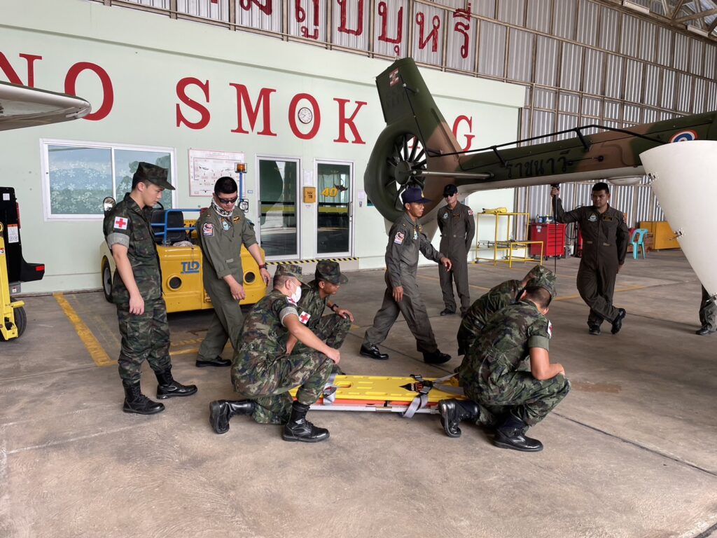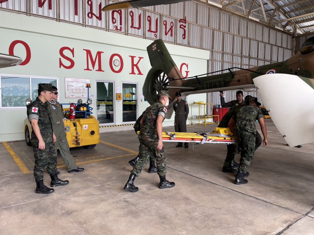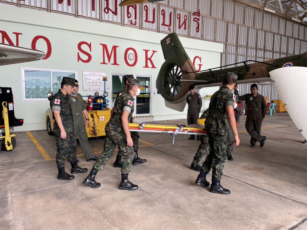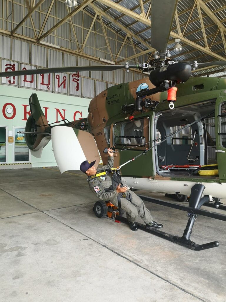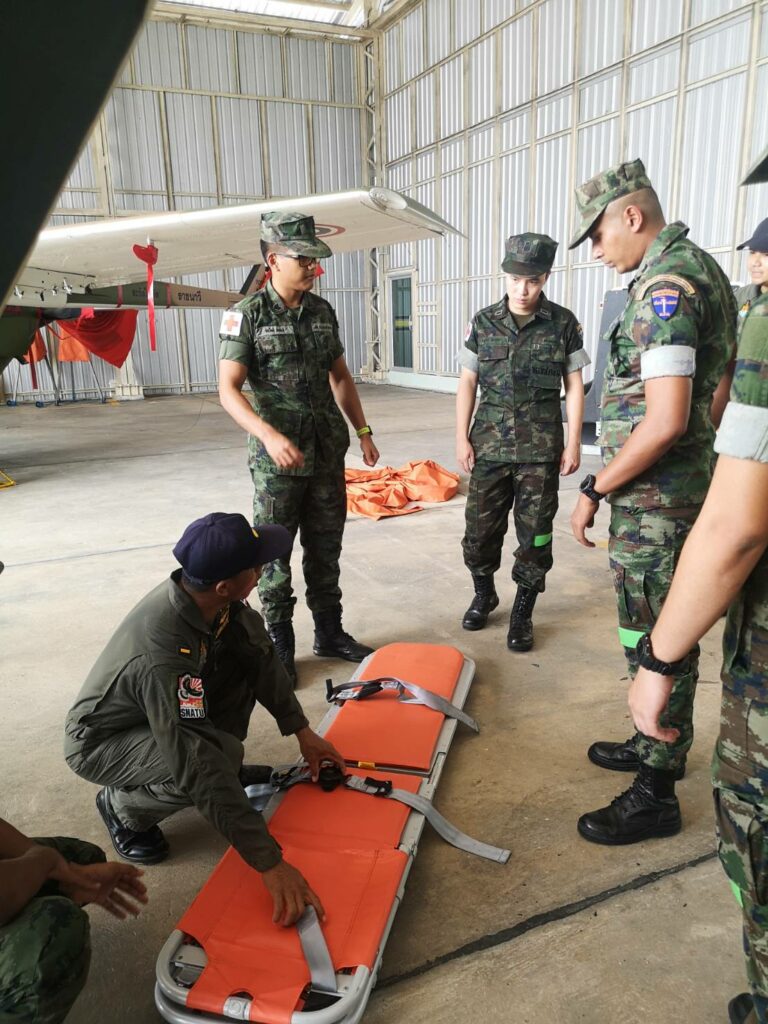 เมื่อ ๙ มิ.ย.๖๖ ร.ต.ณัฐภัทร พิพิธเดชา หน.ชพค.ฉก.นย.ทร. นำกำลังพลสายแพทย์ร่วมรับฟังการสาธิตการใช้งานเฮลิคอปเตอร์ลำเลียง แบบ EC645 T2 ซึ่งเป็นเฮลิคอปเตอร์ลำเลียงทางอากาศสนับสนุนการปฏิบัติการทางเรือและกำลังนาวิกโยธิน ณ โรงเก็บอากาศยาน มวบ.ฉก.ภต. ต.โคกเคียน อ.เมืองนราธิวาส จว.นราธิวาส / พัน.พ.กรม สน.พล.นย. / By ข่าวผู้บังคับบัญชา จำนวนคนดู : 25