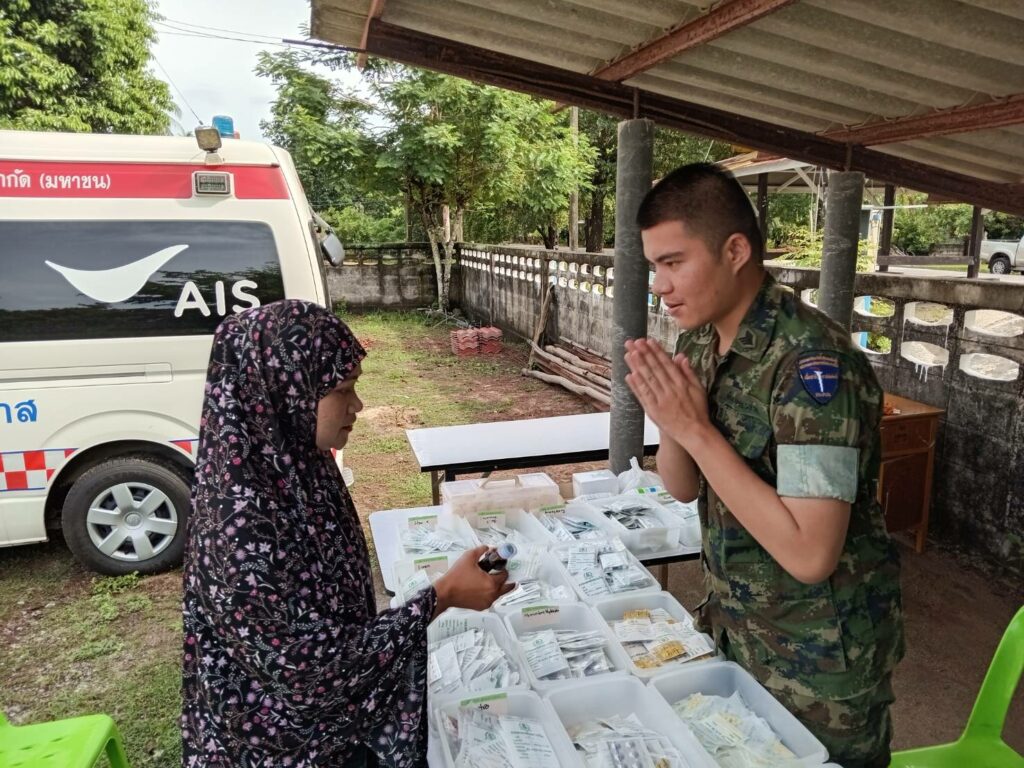 เมื่อ ๙ ก.ค.๖๖ ร.ต.ณัฐภัทร พิพิธเดชา หน.ชพค.ฉก.นย.ทร. นำกำลังพลสายแพทย์เวชภัณฑ์ ออกให้บริการตรวจรักษาโรคแก่ประชาชนในพื้นที่รับผิดชอบของ ฉก.นย.ทร. ตามกิจกรรมโครงการ “นาวิก นาวี สัญจร” ณ วัดโคกเคียน ต.โคกเคียน อ.เมืองนราธิวาส จว.นราธิวาส