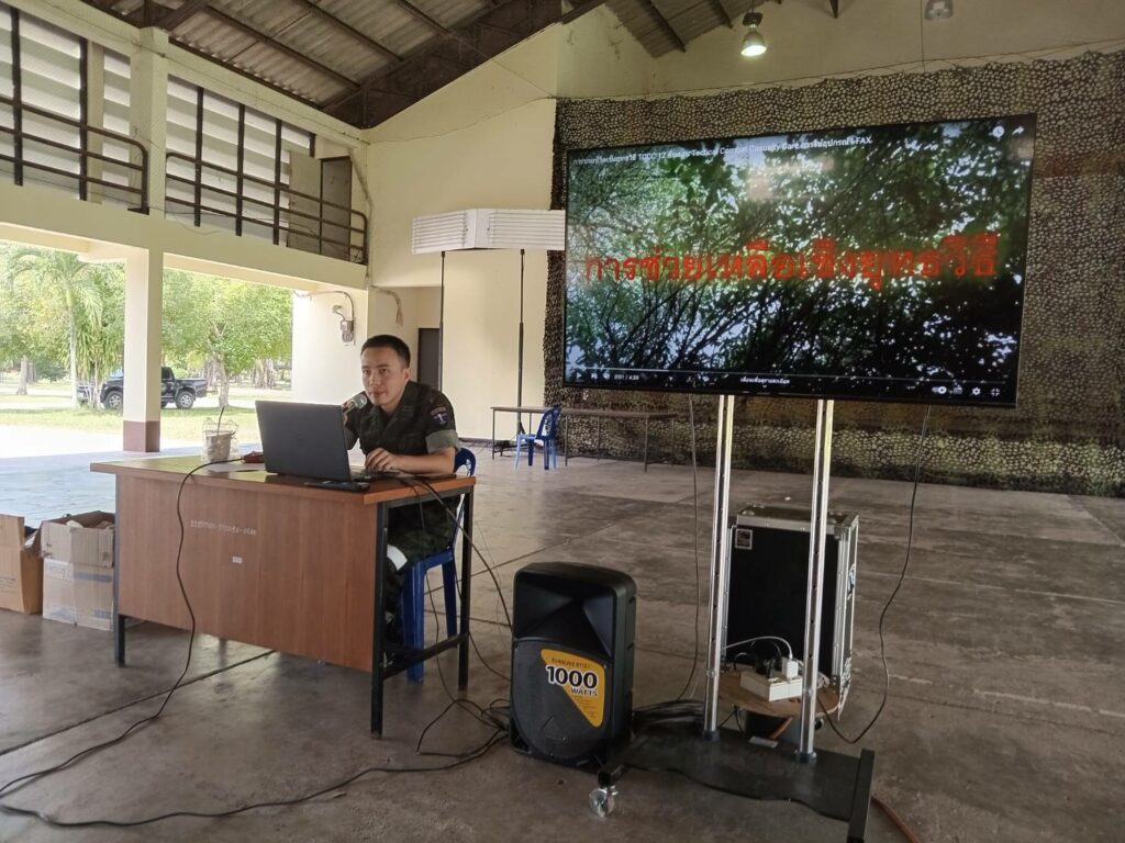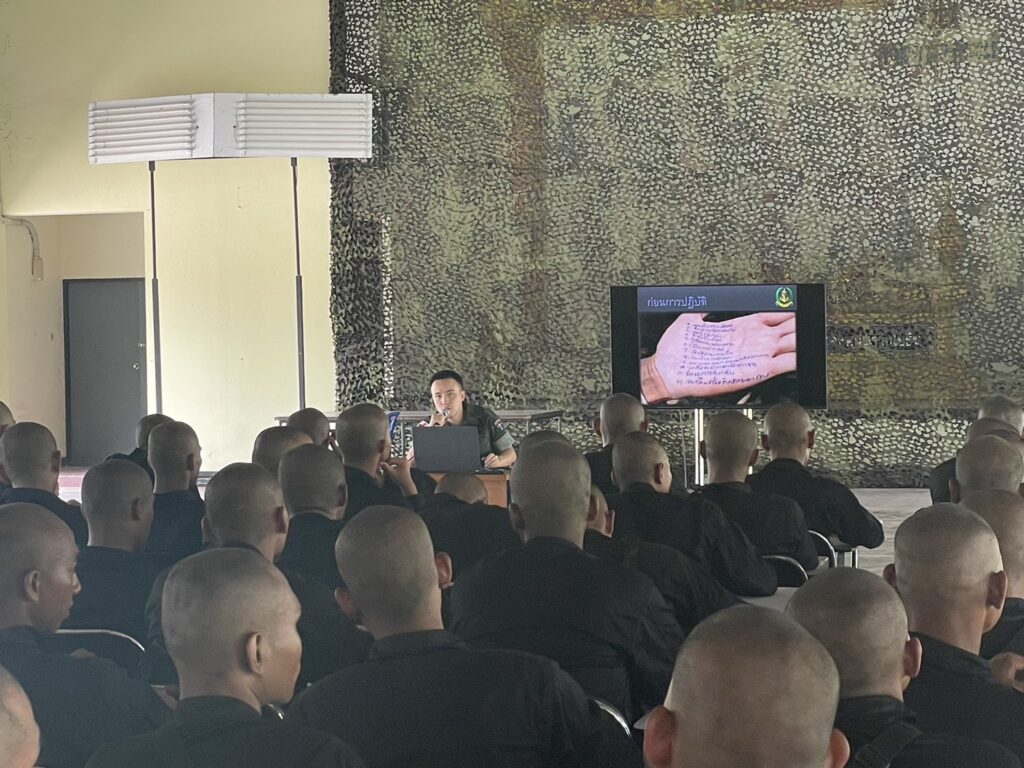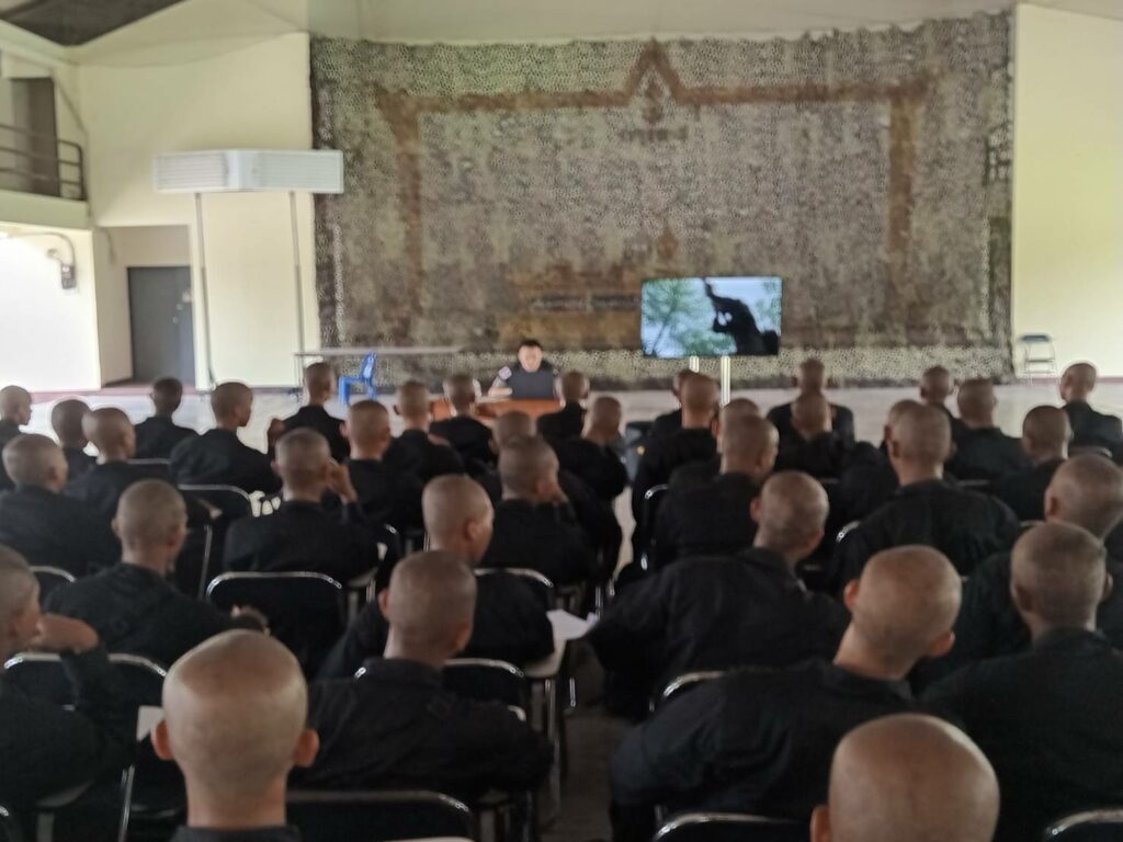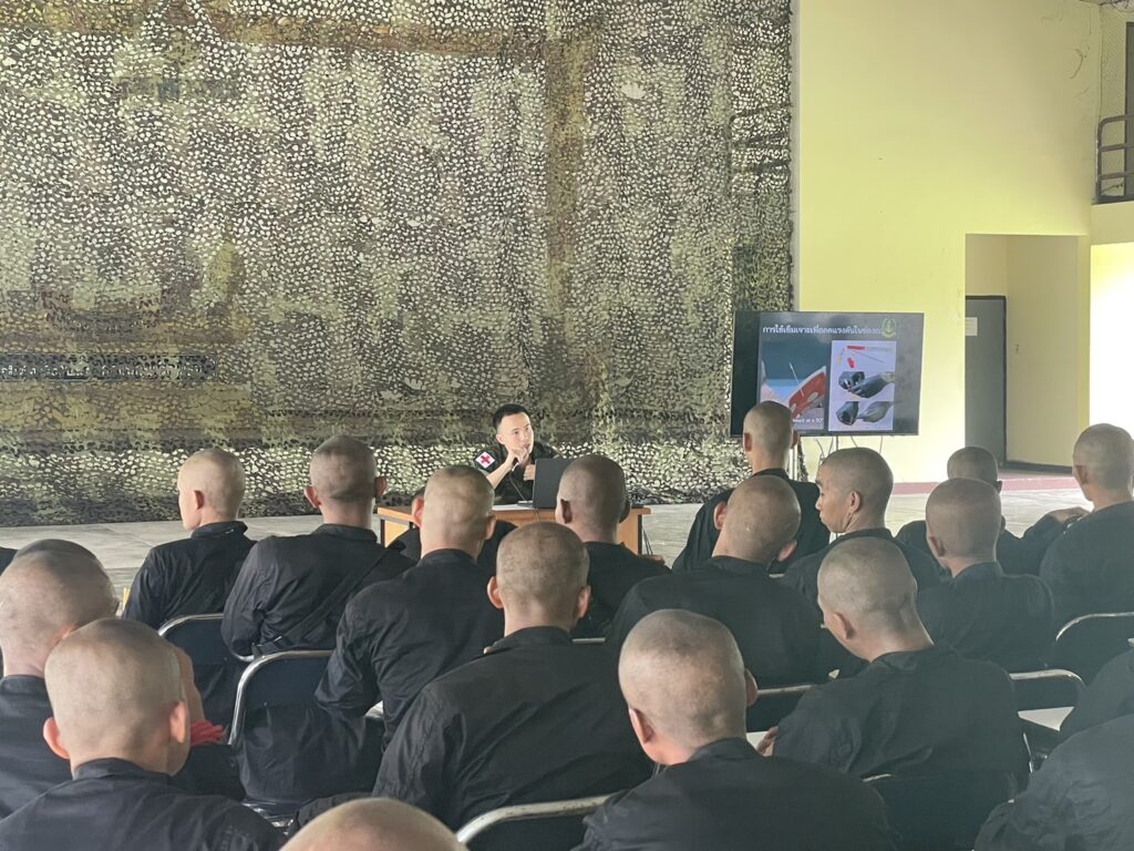 เมื่อ ๑๗ ก.ค.๖๖ ร.ต.ณัฐภัทร พิพิธเดชา หน.ชพค.ฉก.นย.ทร. เป็นวิทยากรบรรยายให้ความรู้เรื่องการช่วยชีวิตเชิงยุทธวิธีให้กับอาสาสมัครทหารพราน หลักสูตรทดแทน รุ่นที่ ๒/๖๖ ณ อาคารอเนกประสงค์ พัน.ร.๙ รอ.กรม ร.๓ พล.นย. ค่ายจุฬาภรณ์ / พัน.พ.กรม สน.พล.นย. / By ข่าวผู้บังคับบัญชา จำนวนคนดู : 15