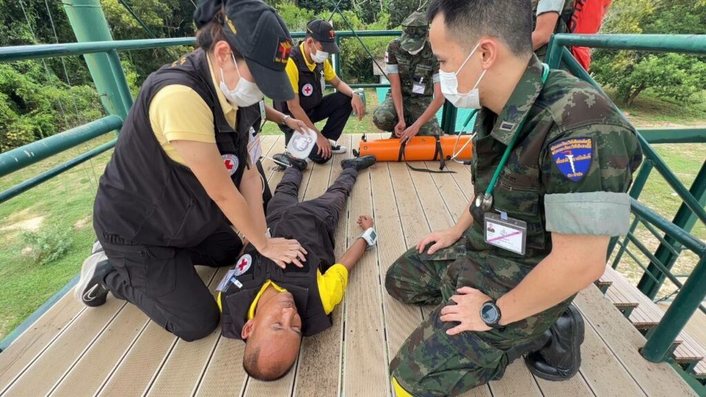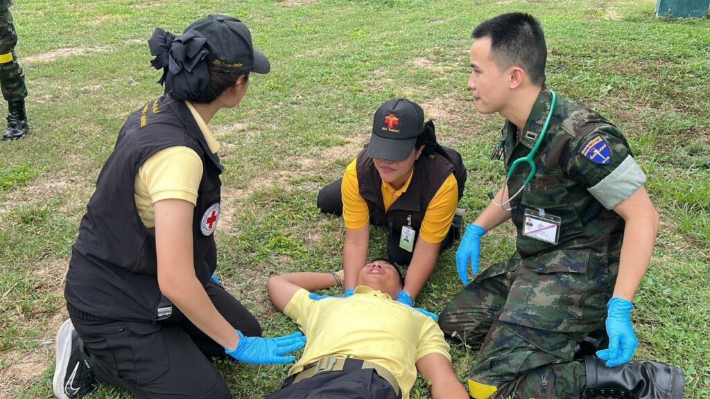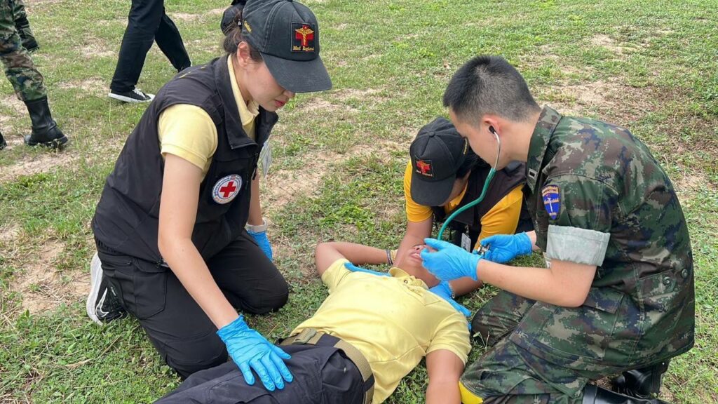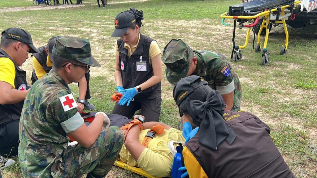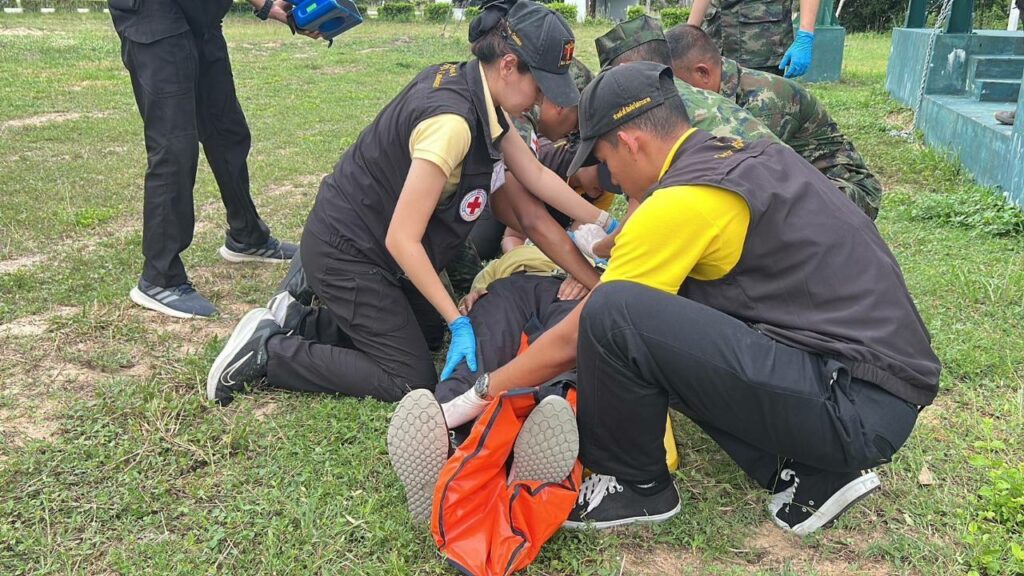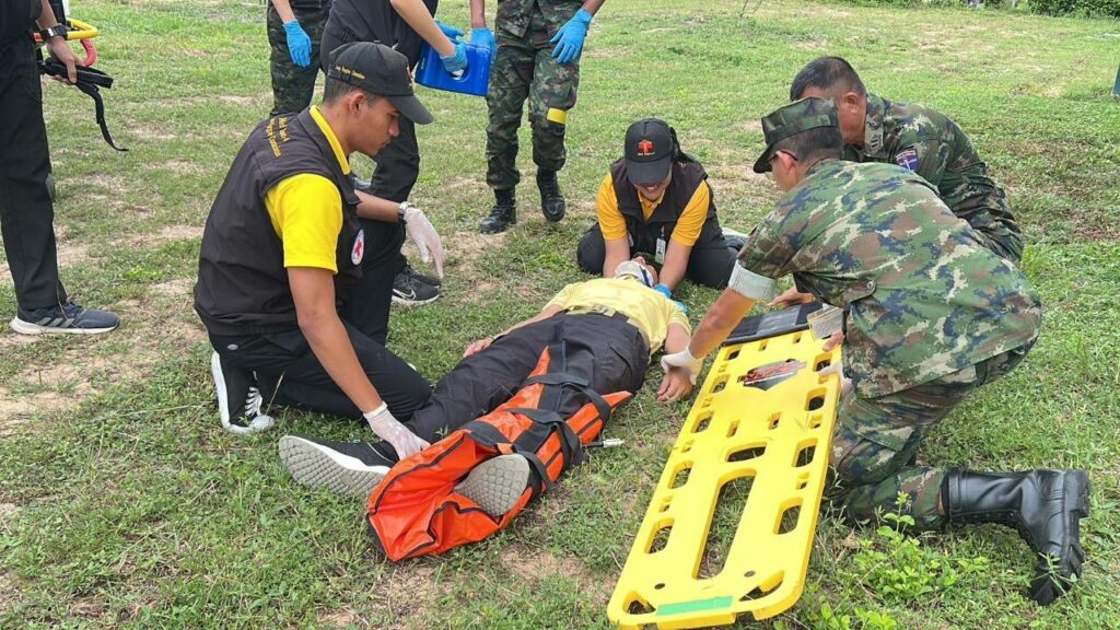 เมื่อ ๔ ก.ย.๖๖ ร.ต.ณัฐภัทร พิพิธเดชา หน.ส่วน ชพค.ฉก.นย.ทร. นำกำลังพลสายแพทย์เข้าร่วมซักซ้อมแผนเผชิญเหตุกับ ฝ่ายการแพทย์สนับสนุนศูนย์ฝึกจิตอาสาพระราชทาน รุ่นที่ ๓/๖๖ ณ หอฝึกกระโดดร่ม กรม ร.๓ พล.นย.ค่ายจุฬาภรณ์ ต.โคกเคียน อ.เมืองนราธิวาส จว.นราธิวาส / พัน.พ.กรม สน.พล.นย. / By ข่าวผู้บังคับบัญชา จำนวนคนดู : 8