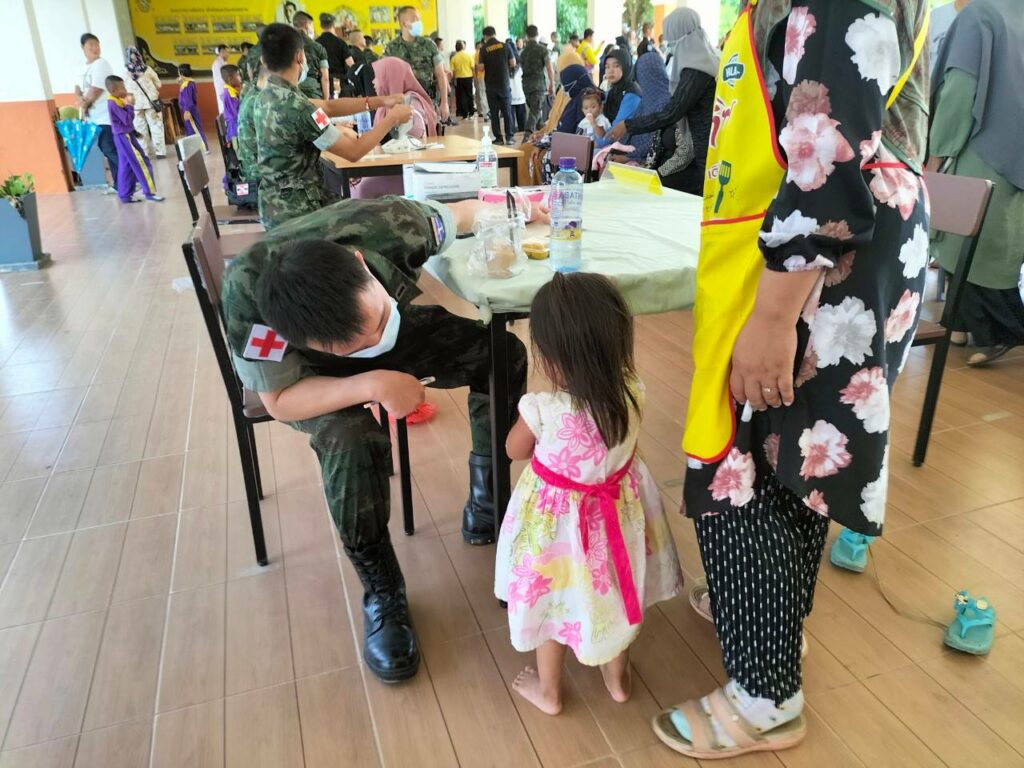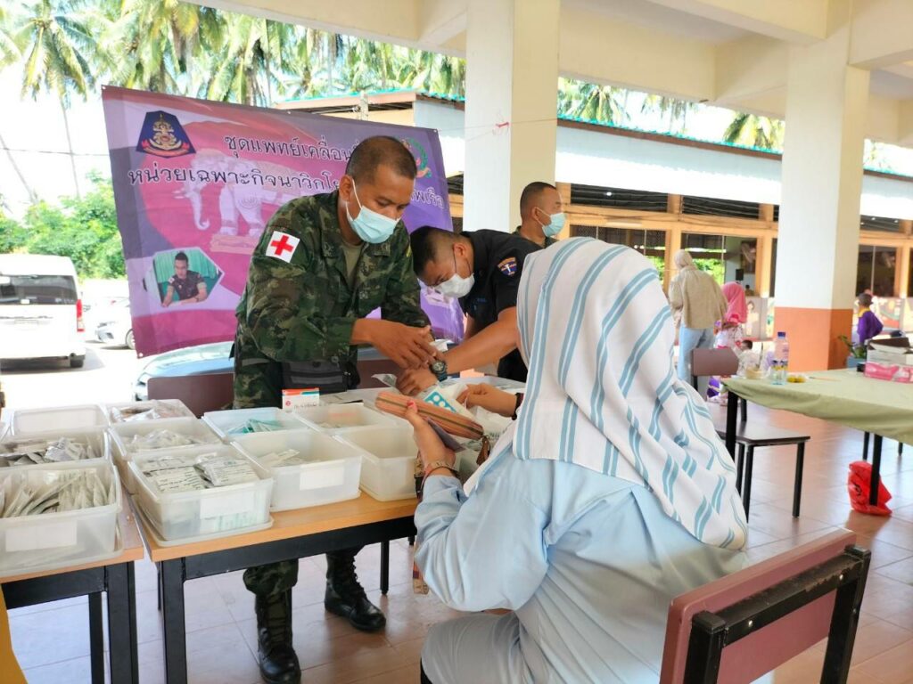เมื่อ ๘ พ.ย.๖๖ ร.ต.ณัฐภัทร พิพิธเดชา หน.ชพค.ฉก.นย.ทร. นำกำลังพลสายแพทย์เวชภัณฑ์ ออกให้บริการตรวจรักษาโรคแก่ประชาชนในพื้นที่รับผิดชอบของ ฉก.นย.ทร. ตามกิจกรรมโครงการ “นาวิก นาวี สัญจร” ณ รร.บ้านตาบา ม.๑ ต.เจ๊ะเห อ.ตากใบ จว.นราธิวาส / พัน.พ.กรม สน.พล.นย. / By ข่าวผู้บังคับบัญชา จำนวนคนดู : 5