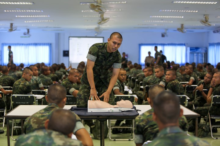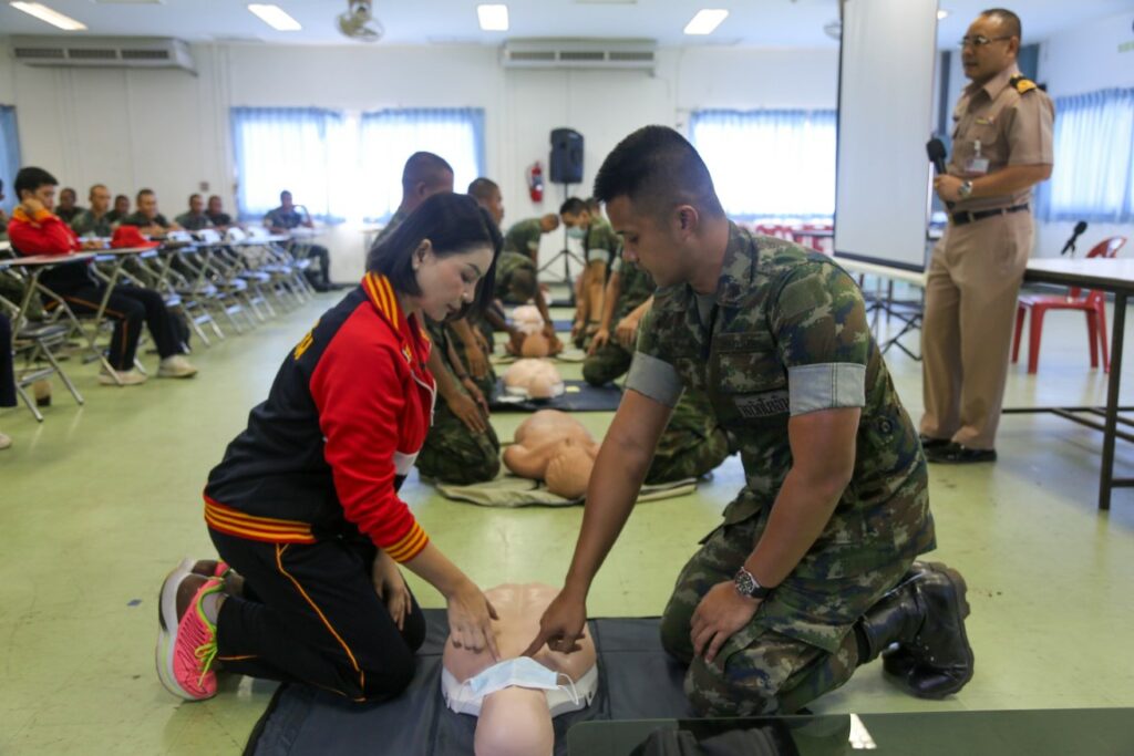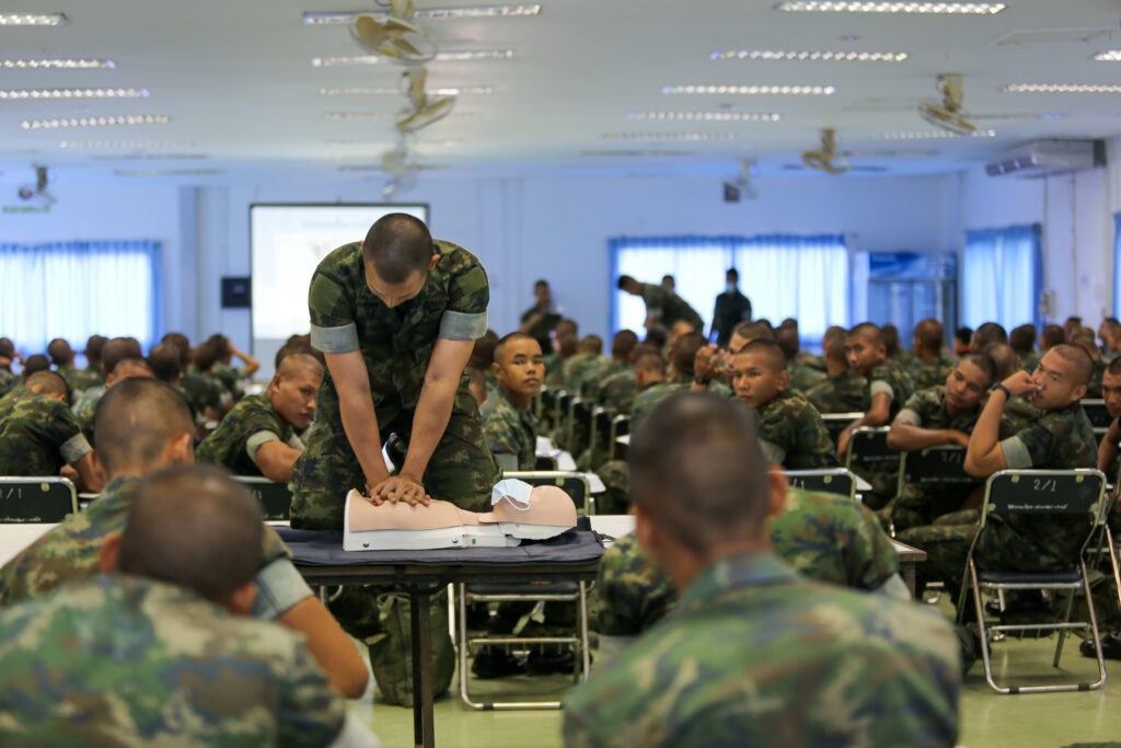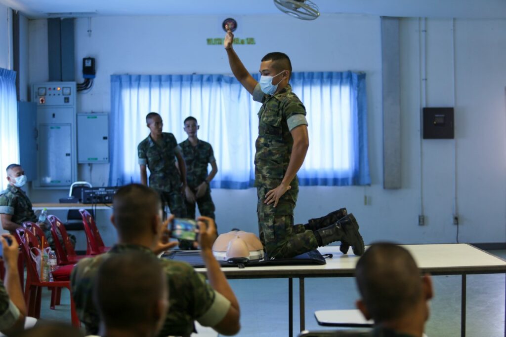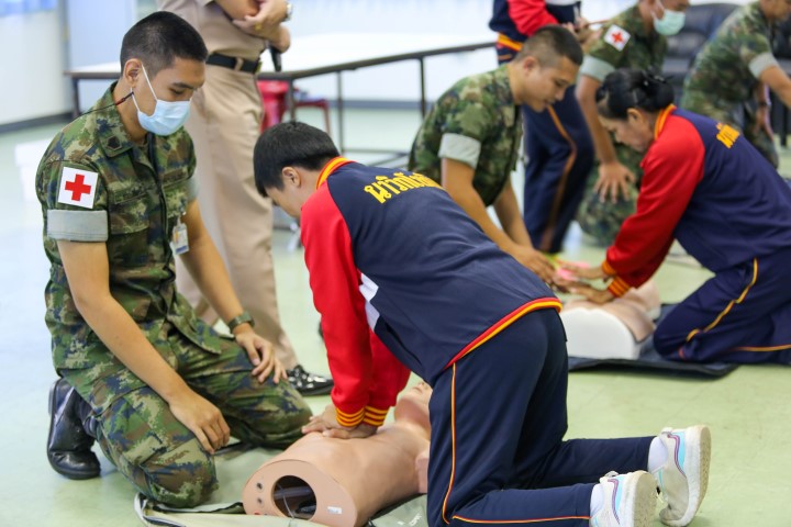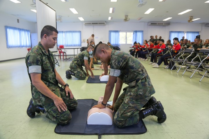 เมื่อ ๘ พ.ย.๖๖ พัน.พ.กรม สน.พล.นย. จัดการฝึกอบรมการกู้ชีพพื้นฐาน( CPR) ให้แก่ กำลังพลข้าราชการ ลูกจ้าง และนักเรียนจ่านาวิกโยธิน ทั้ง ๒ ชั้นปี ในสังกัด กองนักเรียนจ่านาวิกโยธิน เพื่อให้กำลังพลมีขีดความสามารถในการกู้ชีพพื้นฐาน (CPR) ณ อาคารเรียน A-B ศฝ.นย. / พัน.พ.กรม สน.พล.นย. / By ข่าวผู้บังคับบัญชา จำนวนคนดู : 9