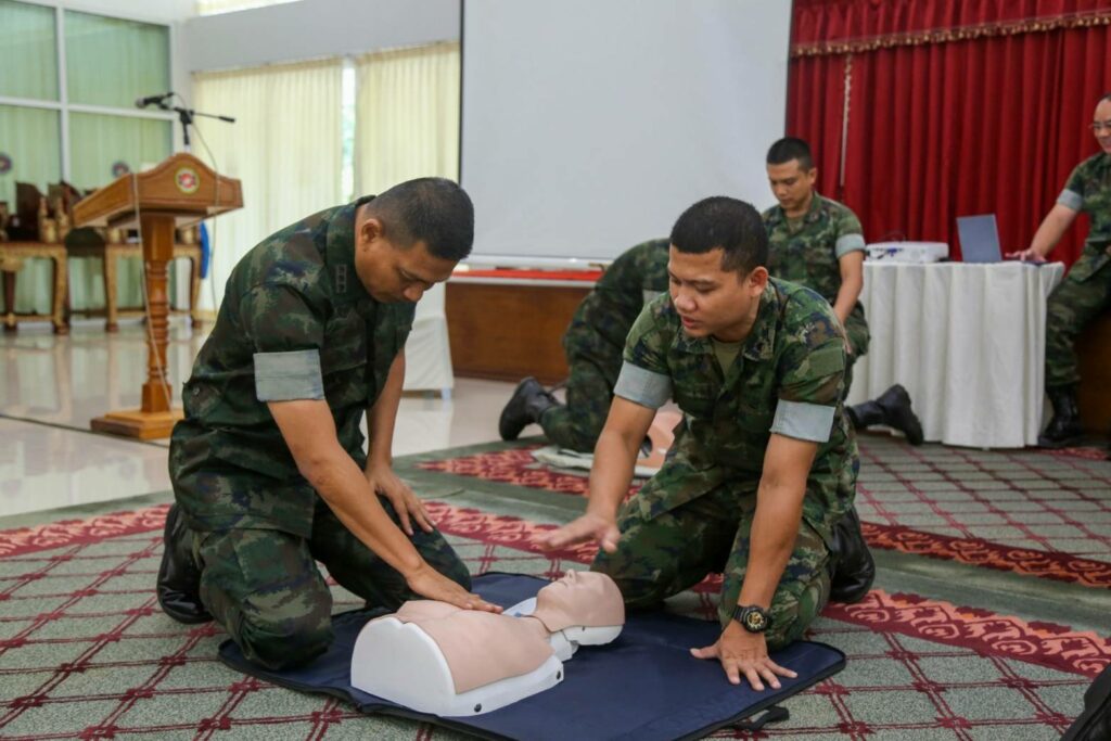 เมื่อ ๑๓ พ.ย.๖๖ พัน.พ.กรม สน.พล.นย. ฝึกอบรมการกู้ชีพพื้นฐาน ( CPR) ให้แก่ กำลังพลในสังกัด กรม รปภ.นย. เพื่อให้กำลังพลมีขีดความสามารถในการกู้ชีพพื้นฐาน( CPR) และนำไปใช้ได้อย่างถูกต้อง โดยมี น.อ.นพโรจน์ สิริปริยพงศ์ ผบ.กรม รปภ.นย. และ น.อ กิจจา แจ้งสุข รอง ผบ.กรม รปภ.นย เข้าร่วมการฝึกอบรมฯ ณ อาคารศาสนสถาน นย. / พัน.พ.กรม สน.พล.นย. / By ข่าวผู้บังคับบัญชา จำนวนคนดู : 5