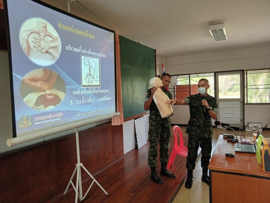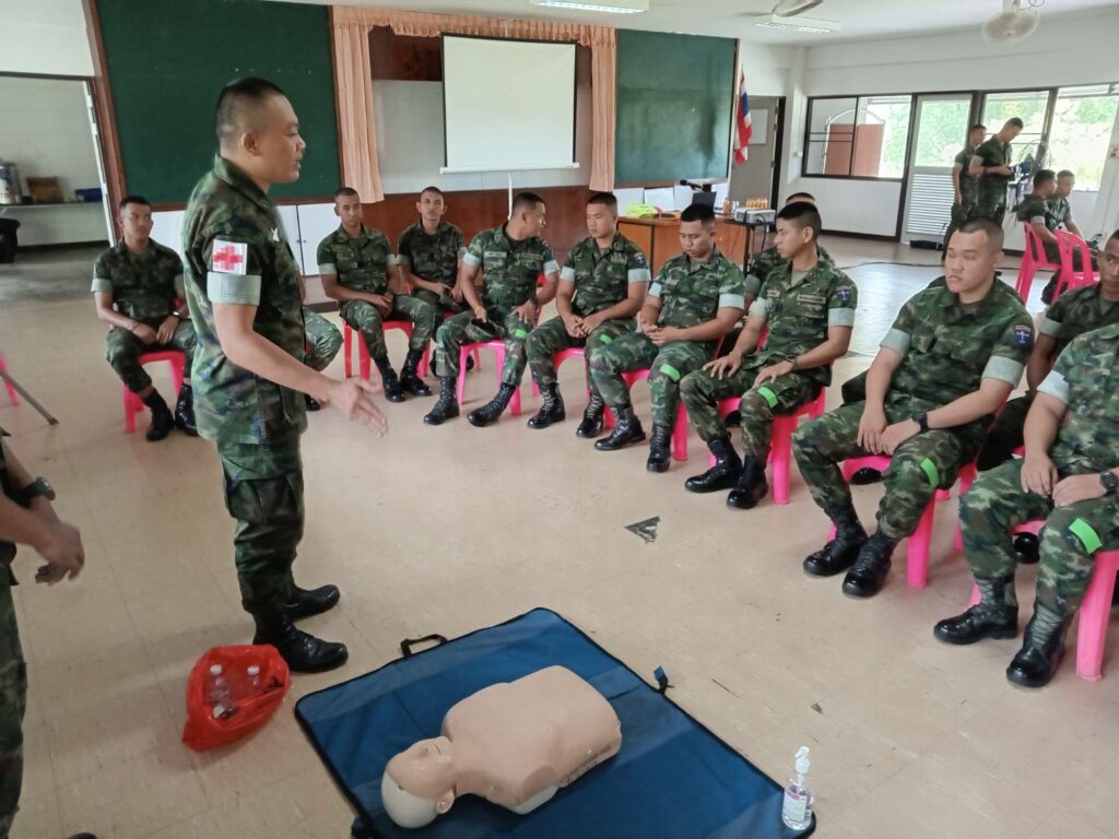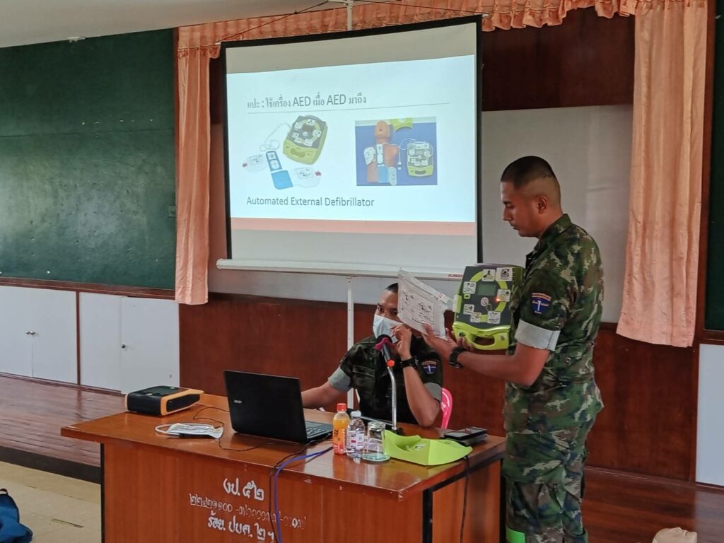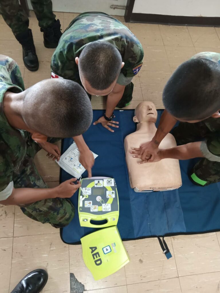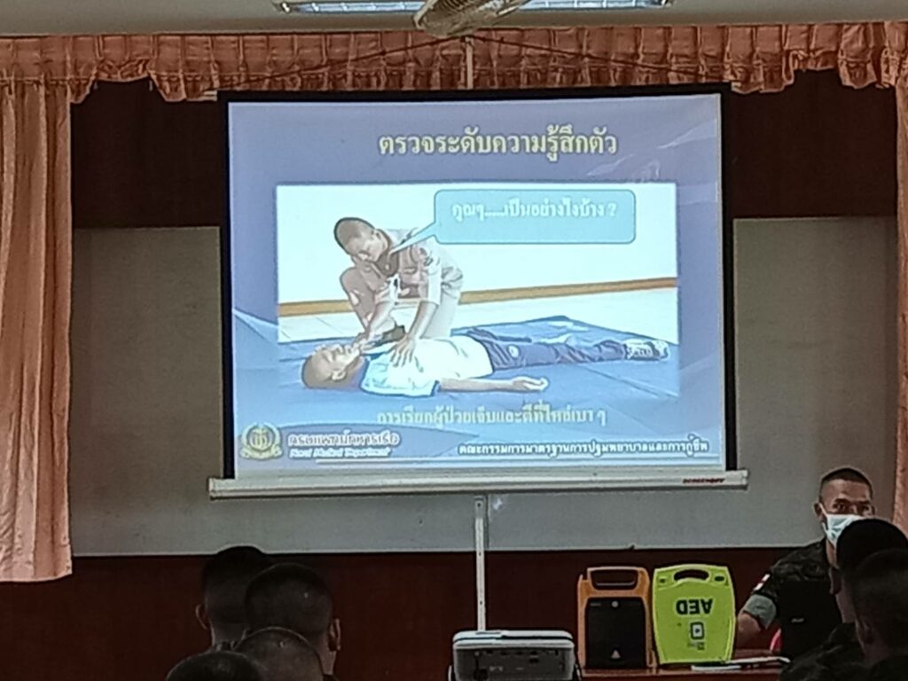 เมื่อ ๑๔ พ.ย.๖๖ ชพค.ฉก.นย.ทร. สนับสนุนวิทยากร บรรยายให้ความรู้และฝึกอบรมการช่วยฟื้นคืนชีพขั้นพื้นฐาน (CPR) และการใช้เครื่องฟื้นคืนคลื่นหัวใจด้วยไฟฟ้า แบบอัตโนมัติ (AED) ให้แก่ กำลังพล พัน.ปบค.๒ กรม ป.พล.นย. ณ ห้องเรียน ร้อย.ปบค.๓ พัน.ปบค.๒ กรม ป.พล.นย.ค่ายจุฬาภรณ์ ต.โคกเคียน อ.เมืองนราธิวาส จว.นราธิวาส / พัน.พ.กรม สน.พล.นย. / By ข่าวผู้บังคับบัญชา จำนวนคนดู : 7