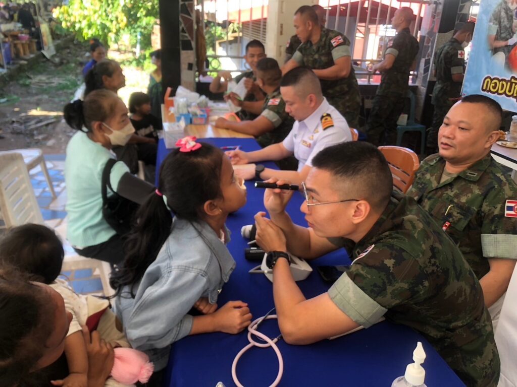 เมื่อ ๑๘ พ.ย.๖๖ ผบ.พัน พ.กรม สน.พล.นย.และ ผบ.ร้อย พ.กอง สนช.กจต. พร้อม จนท.ชุดแพทย์เคลื่อนที่ของ ร้อย พ.กอง สนช.กจต. ให้บริการตรวจรักษาโรค แก่ประชาชนที่มาร่วมงานพิธีทอดกฐินสามัคคี “หน่วยทหารนาวิกโยธิน” ประจำปี ๒๕๖๖ ณ วัดทุ่งไก่ดัก ต.ท่ากลุ่ม อ.เมือง จว.ตราด / พัน.พ.กรม สน.พล.นย. / By ข่าวผู้บังคับบัญชา จำนวนคนดู : 9