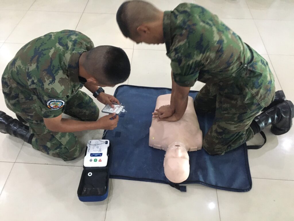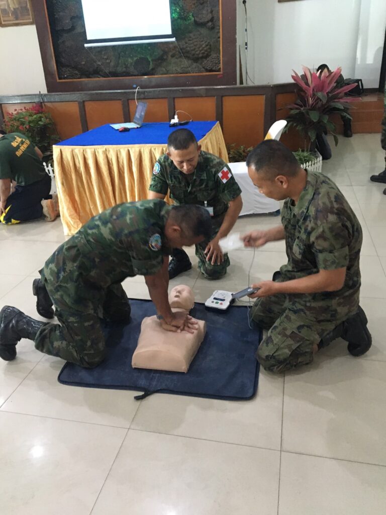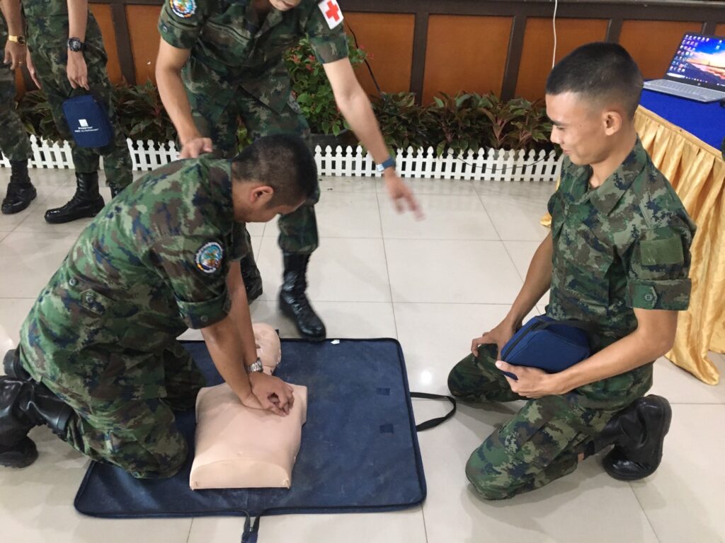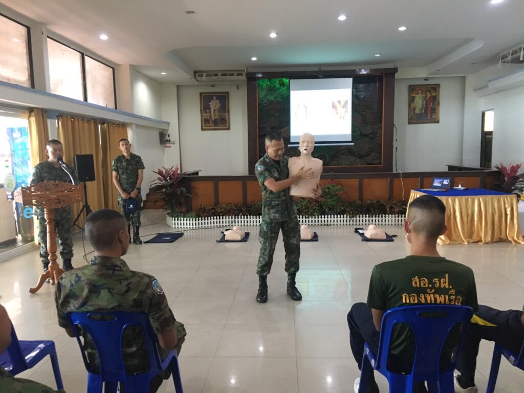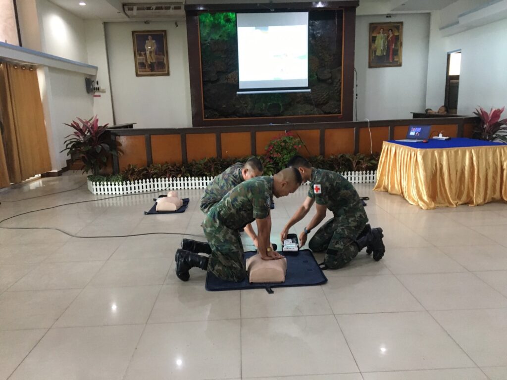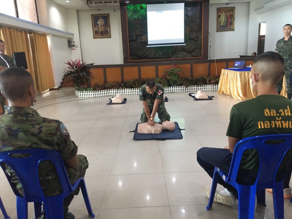 เมื่อ ๒๘ พ.ย.๖๖ พัน.พ.กรม สน.สอ.รฝ. สนับสนุนวิทยากรอบรมการกู้ชีพขั้นพื้นฐาน CPR และการใช้เครื่อง AED ให้แก่กำลังพล ศสร. ณ สโมสรริมชลรวี