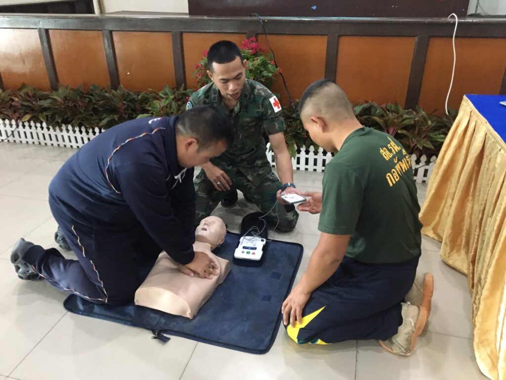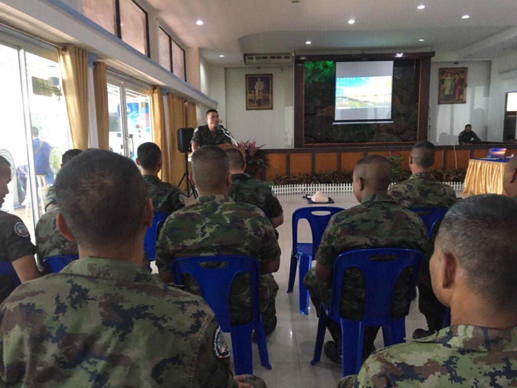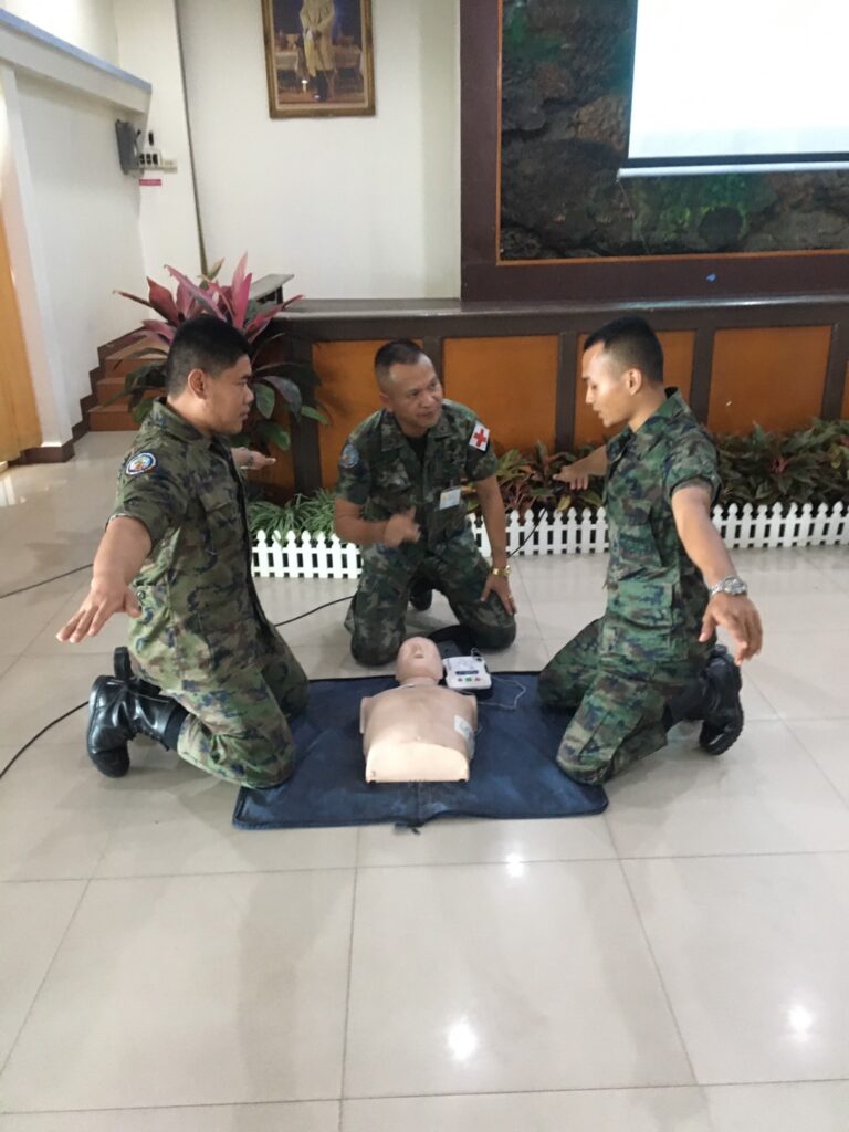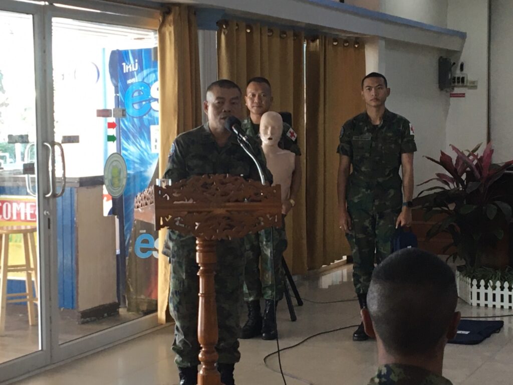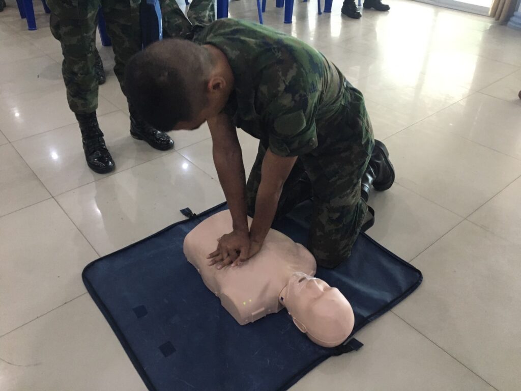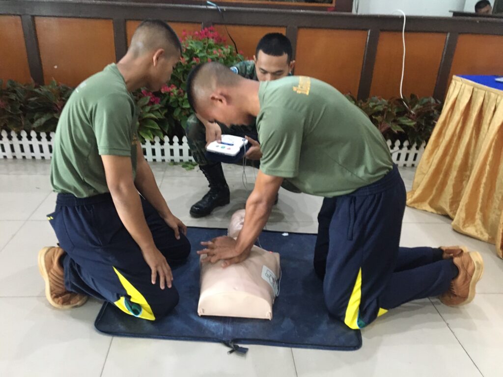 เมื่อ ๒๘ พ.ย.๖๖ พัน.พ.กรม สน.สอ.รฝ. สนับสนุนวิทยากรอบรมการกู้ชีพขั้นพื้นฐาน CPR และการใช้เครื่อง AED ให้แก่กำลังพล ศสร. ณ สโมสรริมชลรวี