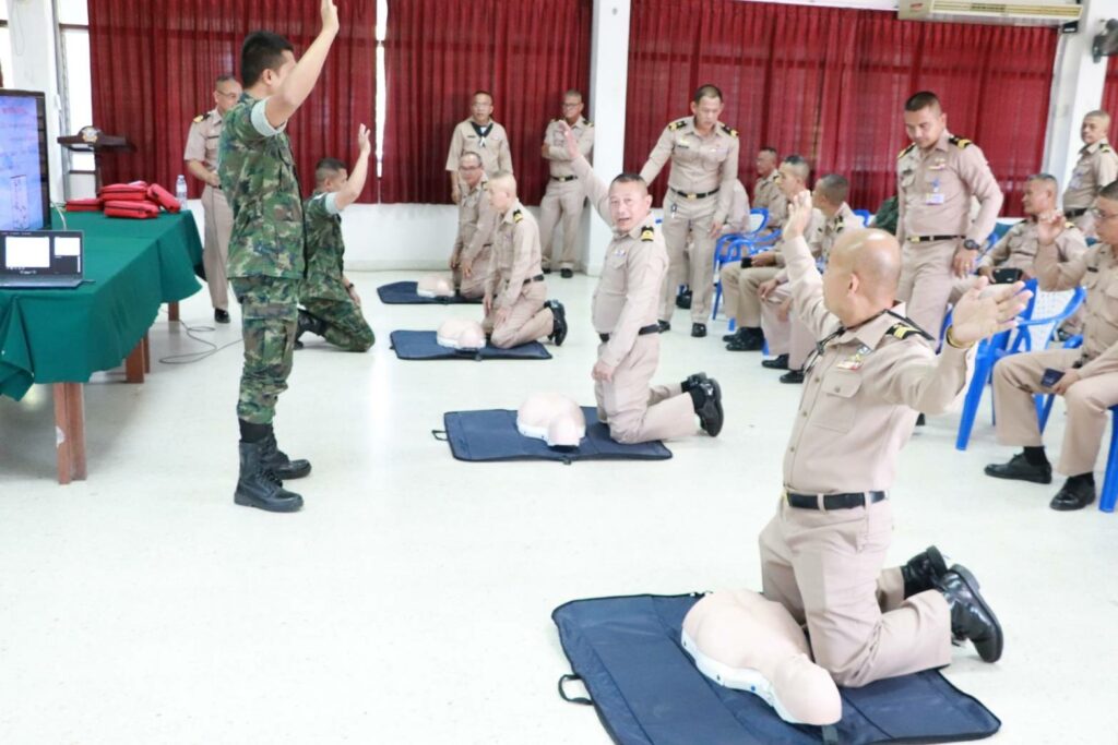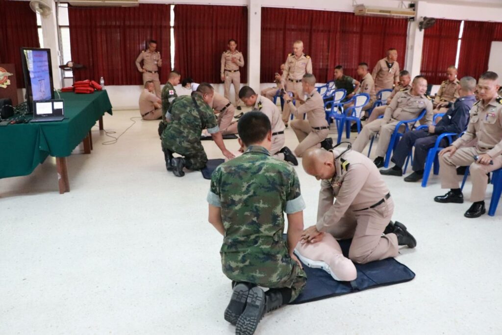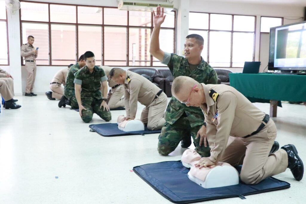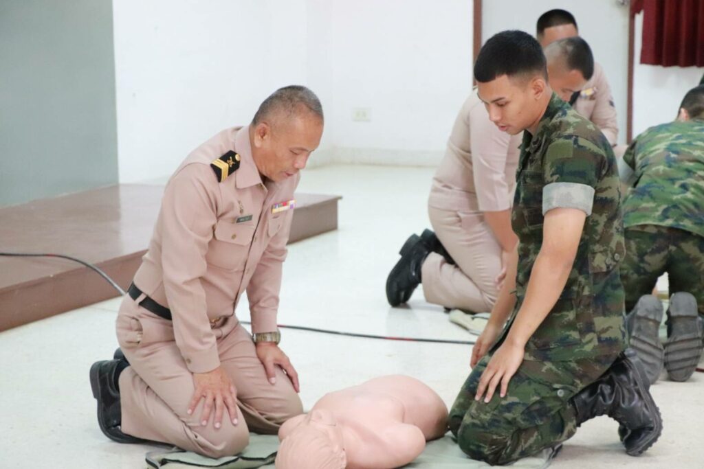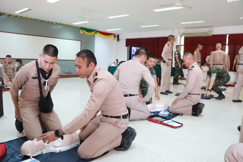 เมื่อ ๔ ม.ค.๖๗ พัน.พ.กรม สน.พล.นย. สนับสนุนวิทยากรบรรยายการกู้ชีพพื้นฐาน (CPR) และการใช้เครื่องฟื้นคืนคลื่นหัวใจด้วยไฟฟ้าแบบอัตโนมัติ (AED) ให้แก่กำลังพลข้าราชการและพลทหารในสังกัดกรม สน.พล.นย. ณ อาคาร ร้อย.บก.กรม สน.พล.นย. / พัน.พ.กรม สน.พล.นย. / By ข่าวผู้บังคับบัญชา จำนวนคนดู : 4