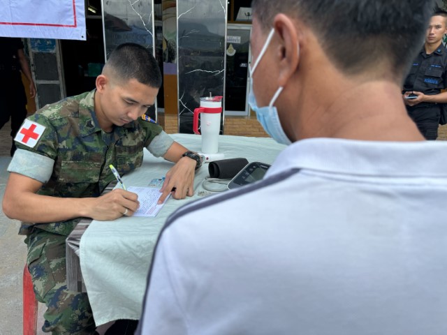 เมื่อ ๒๐ ก.พ.๖๗ ว่าที่ ร.ท.พีรธัช จิราตระกาล หน.ชพค.ฉก.นย.ทร. นำกำลังพลสายแพทย์เวชภัณฑ์ ออกให้บริการตรวจรักษาโรคแก่ประชาชนในพื้นที่รับผิดชอบของ ฉก.นย.ทร. ตามกิจกรรมโครงการ “นาวิก นาวี สัญจร” ณ รร.บ้านยะลูตง ม.๒ ต.กาเยาะมาตี อ.บาเจาะ จว.นราธิวาส / พัน.พ.กรม สน.พล.นย. / By ข่าวผู้บังคับบัญชา จำนวนคนดู : 5