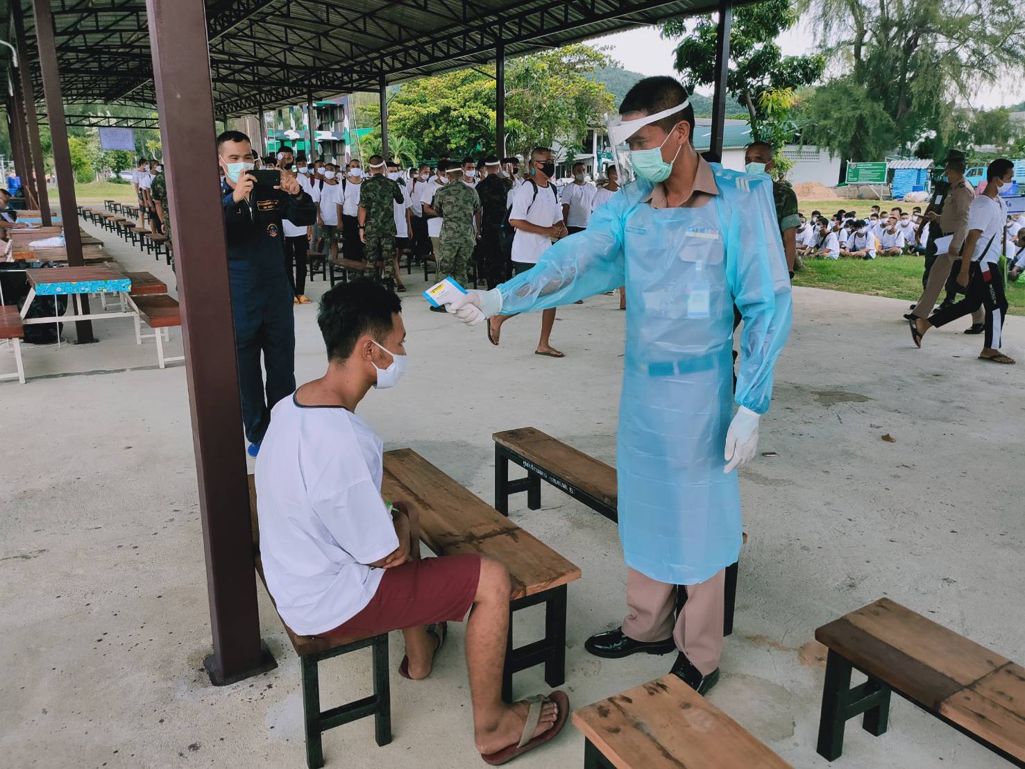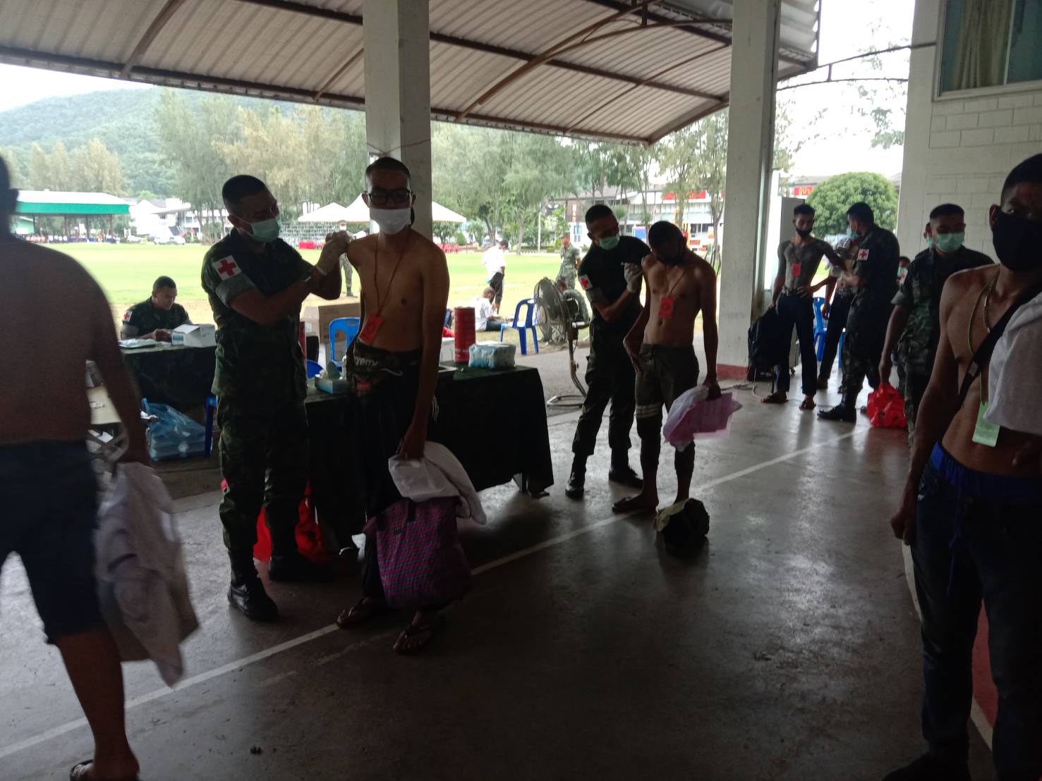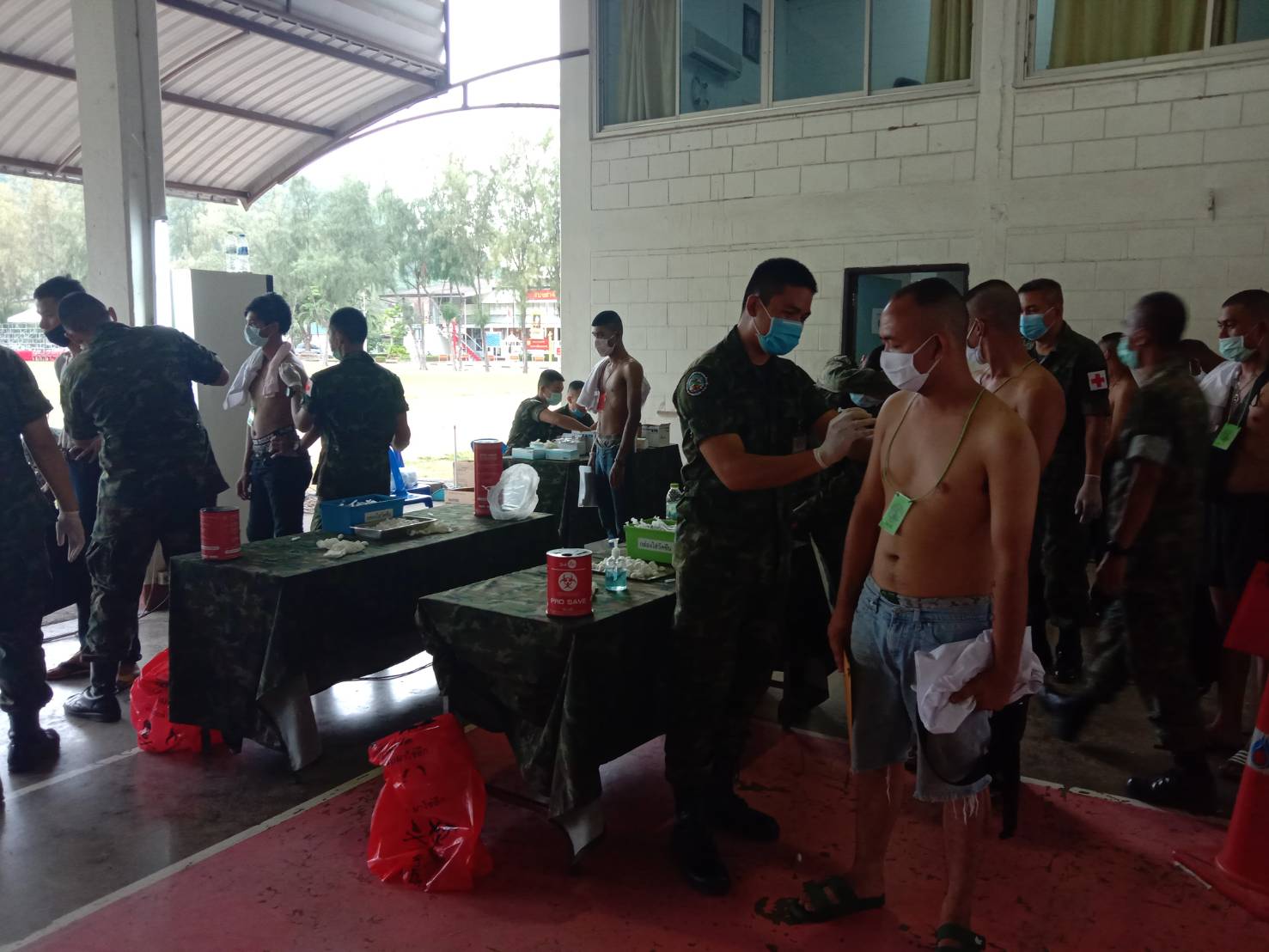 ๒ ก.ย. ๖๓ พัน.พ.กรม สน.พล.นย.สนับสนุนเจ้าหน้าที่พยาบาลในการคัดกรองโรค/ฉีดวัคซีน สำหรับทหารใหม่ ผลัด ๑/๖๓ แบบ NEW NORMAL ณ บริเวณอาคารเอนกประสงค์ ศฝ.นย.