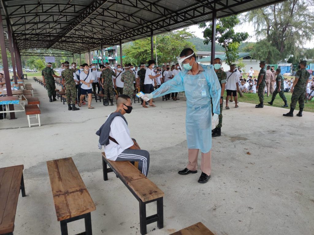 พัน.พ.กรม สน.พล.นย.สนับสนุนเจ้าหน้าที่พยาบาลในการคัดกรองโรค/ฉีดวัคซีน สำหรับทหารใหม่ ผลัด ๑/๖๓ แบบ NEW NORMAL ณ บริเวณอาคารเอนกประสงค์ ศฝ.นย. เมื่อวันที่ ๑-๒ กันยายน ๒๕๖๓