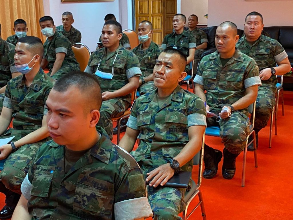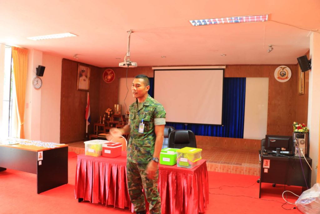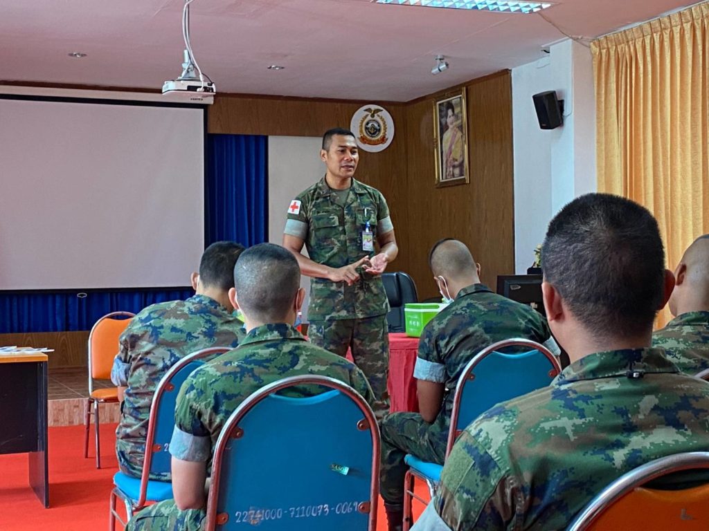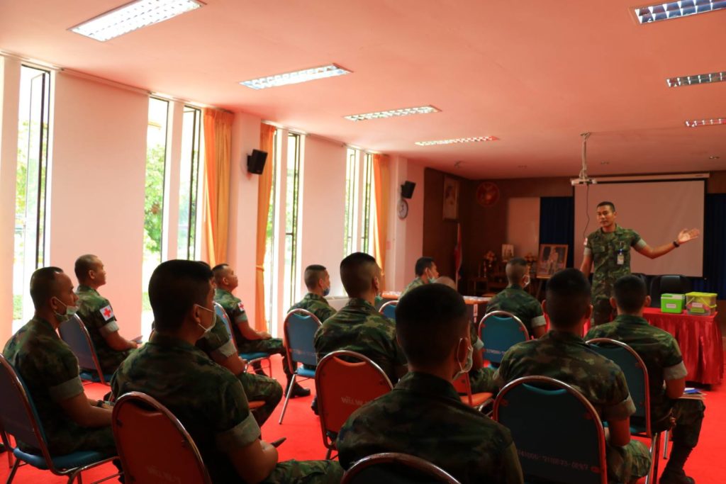 พัน.พ.กรม สน.พล.นย.โดย พ.จ.อ.วิชัย นามวิชา จนท.เวชกรรมป้องกัน พัน.พ.ฯ ดำเนินการบรรยายความรู้เรื่อง แนวทางการให้บริการด้านการแพทย์เรื่องแนวทางการปฏิบัติงานของศูนย์ปฏิบัติการโรคลมเหตุร้อน นย. /การป้องกันและปฐมพยาบาลผู้ป่วยโรคอันตรายจากความร้อนในการฝึก และแนวทางการคัดกรองโรค COVID-๑๙ และ ARI Clinic ในกำลังพลสายแพทย์ที่เข้ารับหน้าที่ใหม่ งป.๖๔ ณ ห้องประชุม พัน.พ.กรม สน.พล.นย.ค่ายกรมหลวงชุมพร นย.