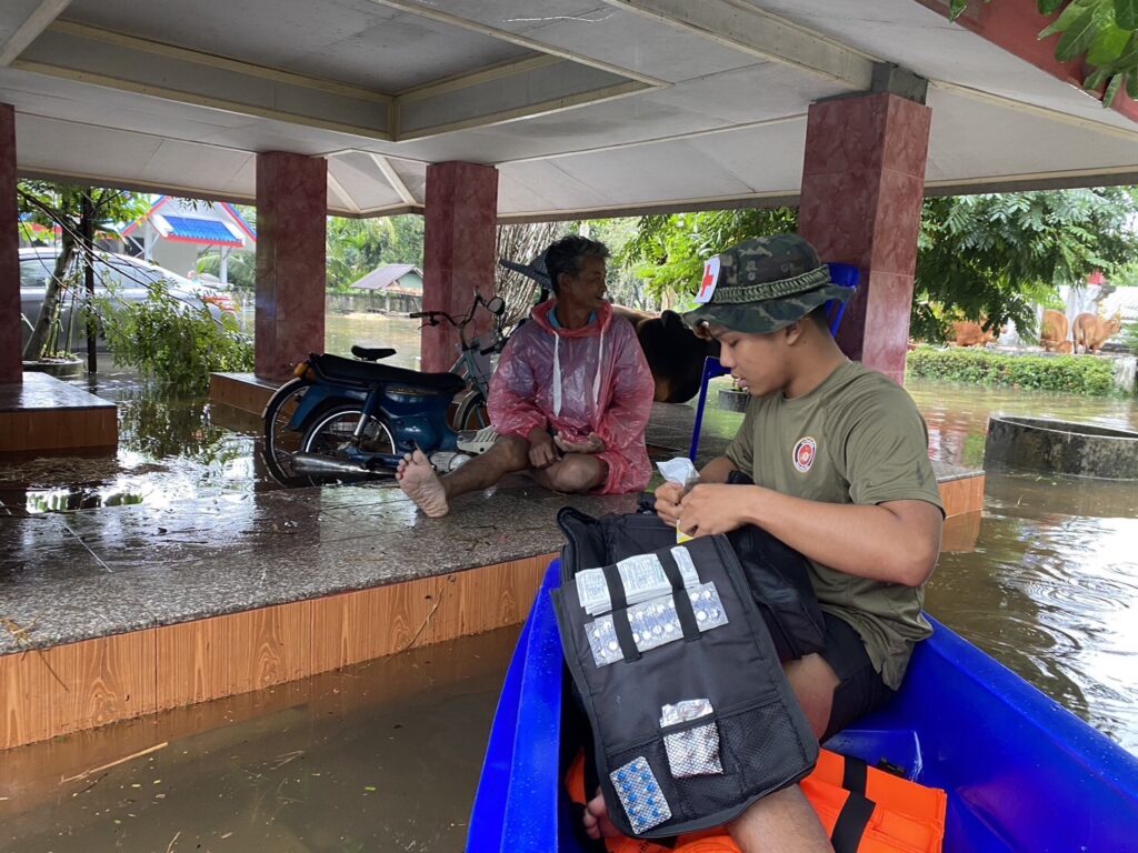 เมื่อ ๓๐ พ.ย.๖๗ ร.ท.ชิษณุพงศ์ วงศ์แสงจันทร์ ผู้บังคับกองร้อยปืนเล็กที่ ๓ ฉก.นย.ทร. ๓๓ มอบหมายให้เจ้าหน้าที่พยาบาล ในสังกัดฯ เข้าแจกจ่ายยาเบื้องต้นให้แก่พี่น้องประชาชนที่ได้รับผลกระทบจากอุทกภัย ณ วัดโฆษิต บ้านบอฆอ ม.๒ ต.โฆษิต อ.ตากใบ จว.นราธิวาส