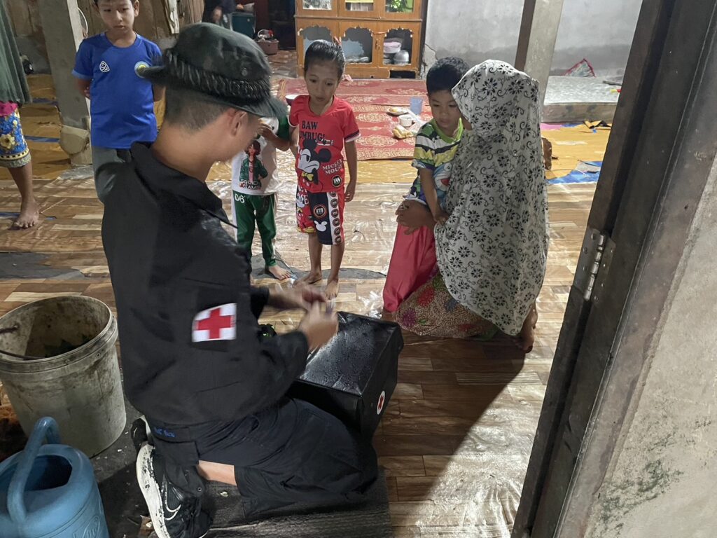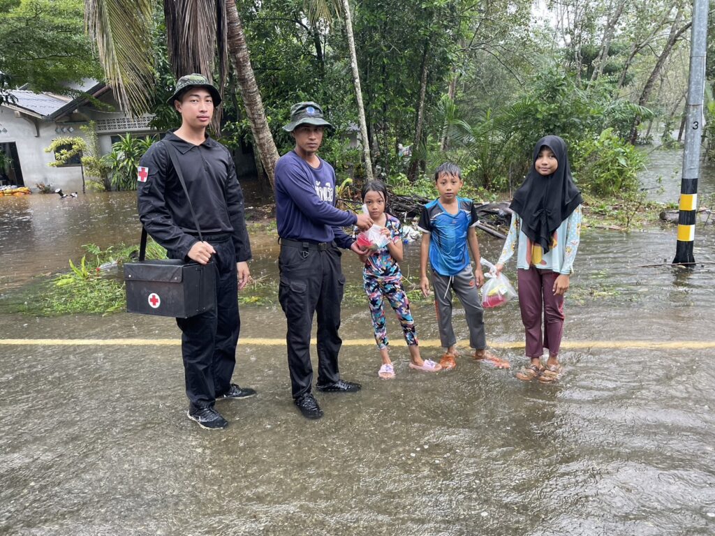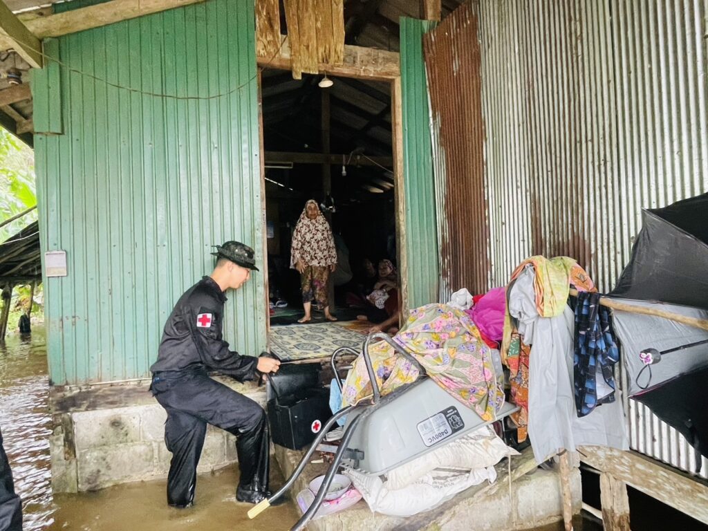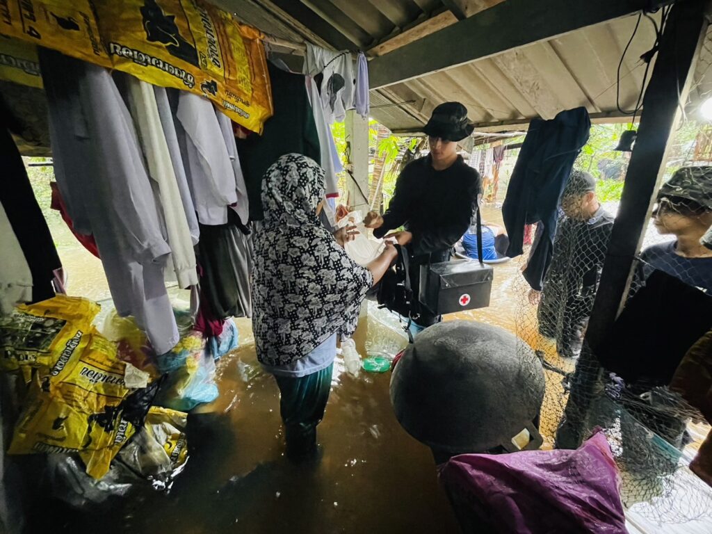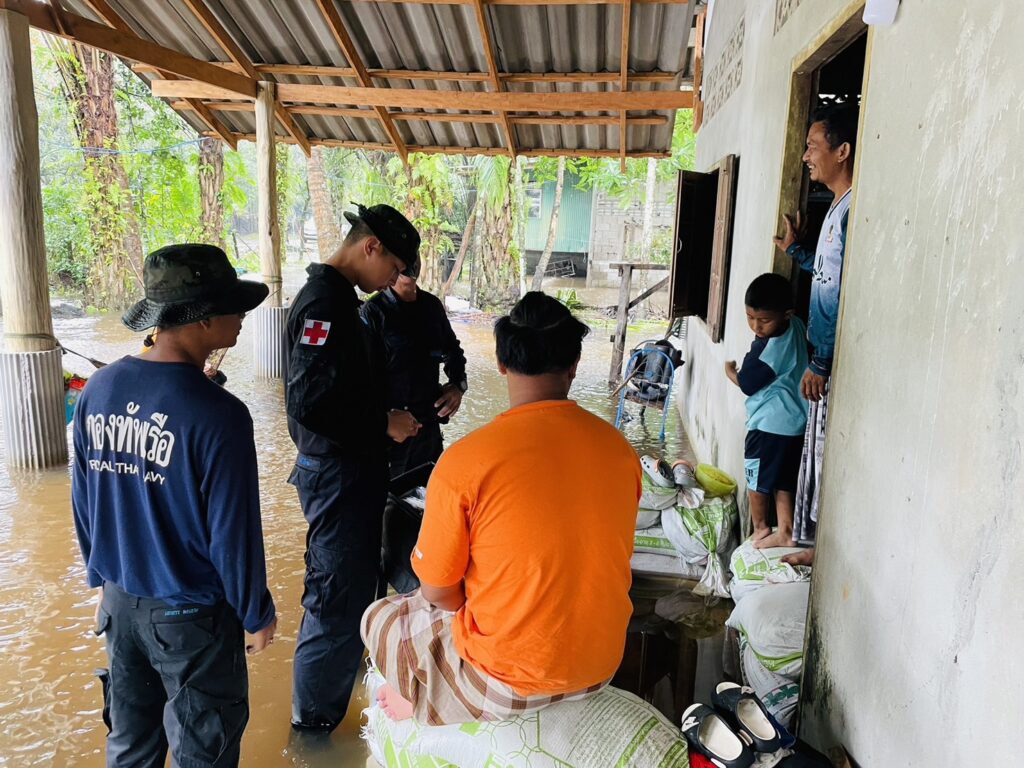 เมื่อ ๒๙ พ.ย.๖๗ พ.จ.อ.คงฤทธิ์ พูลสวัสดิ์ รอง ผบ.ร้อย.ทพ.นย.๑๐ฯ พร้อม จ.อ.วริทธิ์ ดีนาน จนท.พยาบาลประจำกองร้อย จัดกำลังพล ๑ ชป. เข้าช่วยเหลือพี่น้องประชาชนในพื้นที่ที่ได้รับผลกระทบจากเหตุอุทกภัย และมอบยาเวชภัณฑ์แก่ประชาชนในพื้นที่รับผิดชอบ เนื่องจากฝนตกหนักติดต่อกันหลายวัน ณ ม.๖ บ.บ้านยามูกือแล ต.บาเระใต้ อ.บาเจาะ จว.นราธิวาส / พัน.พ.กรม สน.พล.นย. / By ข่าวผู้บังคับบัญชา จำนวนคนดู : 3