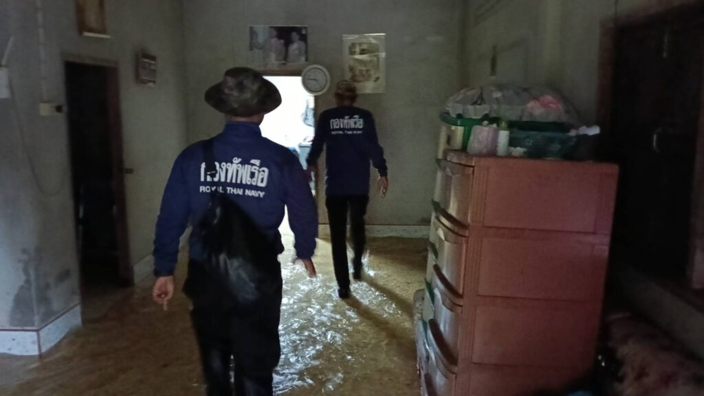 เมื่อ ๓๐ พ.ย.๖๗ ร.ต.ชัยยัณ ชายชาติ ผู้บังคับกองร้อยทหารพรานนาวิกโยธินที่ ๑๓ หน่วยเฉพาะกิจทหารพรานนาวิกโยธินกองทัพเรือ พ.จ.ท.สุพจน์ ไวว่อง พันจ่ากองร้อย พร้อมด้วย ชุดปฏิบัติการกิจการพลเรือน ชุดจรยุทธ์ และ จ.อ.จักรพันธ์ พงศ์จันทรเสถียร เจ้าหน้าที่พยาบาลประจำกองร้อยฯ ร่วมกับผู้นำชุมชน เข้าช่วยเหลือเคลื่อนย้ายผู้ประสบภัยและสิ่งของ เยี่ยมผู้ป่วยติดเตียง และมอบยาสามัญประจำบ้านให้กับพี่น้องประชาชนที่ได้รับความเดือดร้อนจากอุทกภัยใน พื้นที่ ณ ม.๔ บ้านคลองไหล ต.ไพรวัน อ.ตากใบ จว.นราธิวาส / พัน.พ.กรม สน.พล.นย. / By ข่าวผู้บังคับบัญชา จำนวนคนดู : 4
