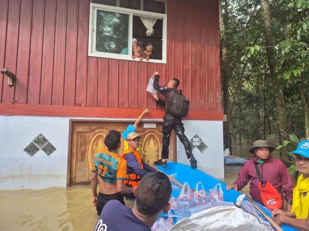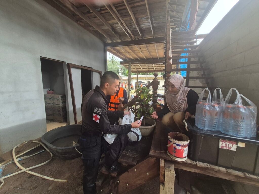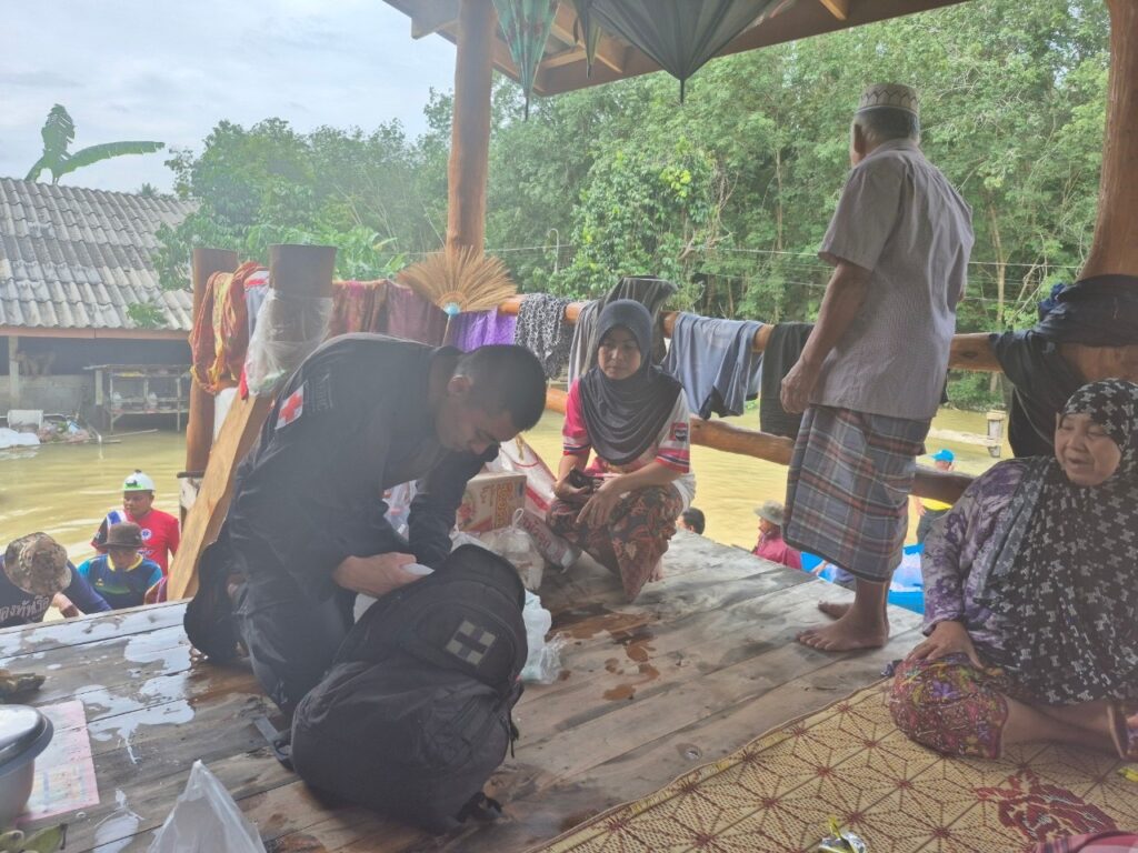 เมื่อ ๑ ธ.ค.๖๗ พ.จ.ต.กมลเทพ รักประสงค์ จนท.พยาบาล ร้อย.ทพ.นย.๑๑ฯ ร่วมกับผู้นำท้องที่และประชาชน ลงพื้นที่พบปะเยี่ยมเยียนผู้ประสบภัยพิบัติ (เหตุอุทกภัย) มอบอาหารและน้ำดื่มให้กับประชาชน ในการนี้ดำเนินการตรวจสุขภาพ จ่ายยาให้กับผู้ที่มีอาการเจ็บป่วย เพื่อบรรเทาความเดือดร้อนเบื้องต้น ณ บ.ลูโบ๊ะกาหยี ม.๖ ต.ปะลุกาสาเมาะ อ.บาเจาะ จว.นราธิวาส
