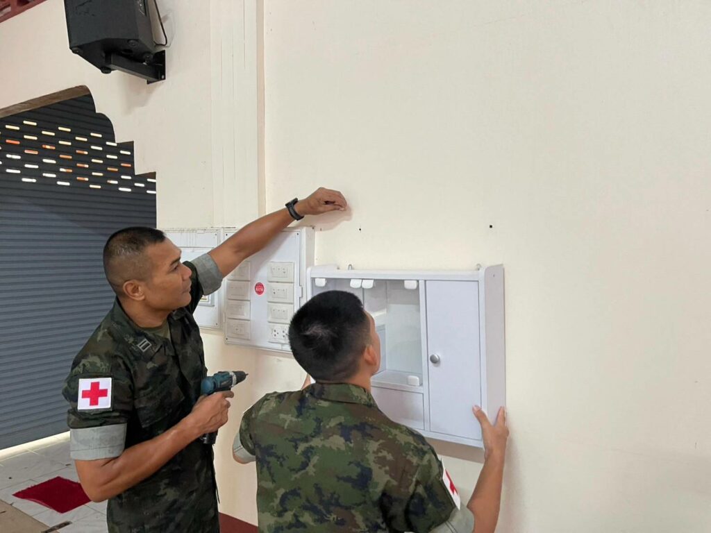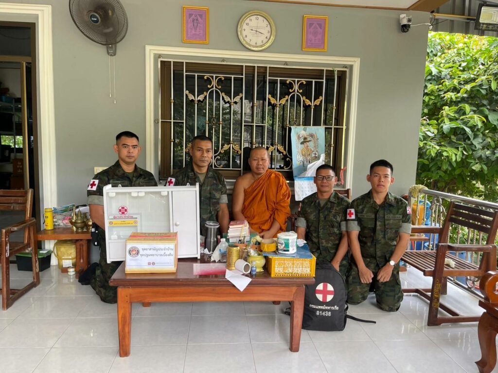 เมื่อ ๕ ธ.ค.๖๗ ตอน พ.ฉก.นย.๑๘๒ ถวายตู้เก็บยาสามัญประจำบ้าน ยารักษาโรคเบื้องต้น ให้กับวัดเกษมสีมาราม (วัดหาดเล็ก) ทั้งนี้มีกิจกรรมการตรวจสุขภาพเบื้องต้นให้พระภิกษุสงฆ์ประจำวัด รวมถึงการพ่นหมอกควันเพื่อกำจัดยุงและแมลงพาหะนำโรคในพื้นที่วัด ป้องกันการเกิดโรคให้กับพระสงฆ์และประชาชนที่มาทำบุญในโอกาสวันสำคัญทางศาสนา เพื่อถวายเป็นพระราชกุศล เนื่องในวันคล้ายวันพระบรมราชสมภพ พระบาทสมเด็จพระบรมชนกาธิเบศร มหาภูมิพลอดุลยเดชมหาราช บรมนาถบพิตร วันชาติ และวันพ่อแห่งชาติ ๕ ธันวาคม ๒๕๖๗ / พัน.พ.กรม สน.พล.นย. / By ข่าวผู้บังคับบัญชา จำนวนคนดู : 3