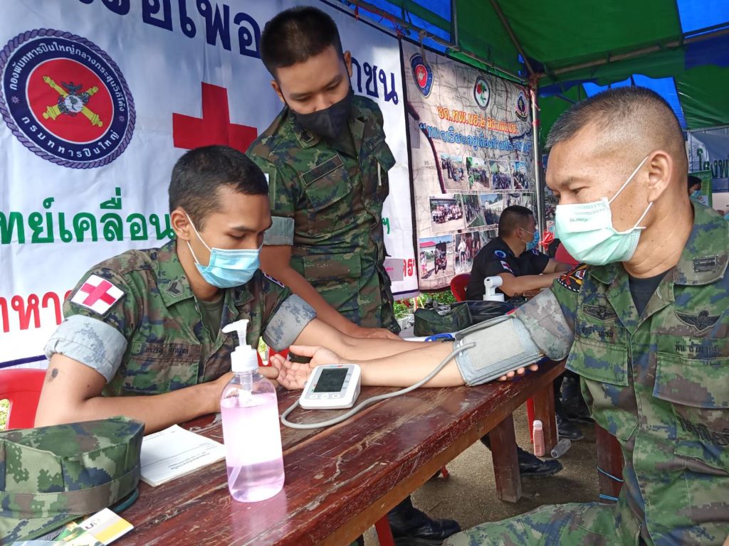 ๒๐ ต.ค.๖๓ พัน.ป.กจต.ดำเนินการจัดเจ้าหน้าที่พยาบาลให้บริการทางการแพทย์โดยจัดชุดแพทย์เคลื่อนที่ของมว.พยาบาลที่ ๒ พัน.ป.กจต.ร่วมด้วย ศปศ.๖๑และชค.๒ ทพ.นย.ร่วมกิจกรรมอำเภอยิ้มของอำเภอโป่งน้ำร้อนจังหวัดจันทบุรี โดยให้บริการประชาชนในพื้นที่บ้านแหลมใหม่ ต.เทพนิมิตร อ.โป่งน้ำร้อน จว.จันทบุรี