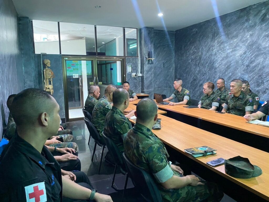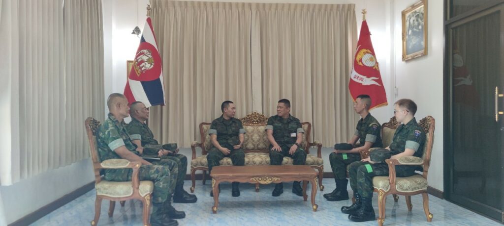 เมื่อ ๖ ม.ค.๖๘ น.อ.ธงรบ วีระจิตต์ รอง ผบ.กรม ร.๓ พล.นย. อนุญาติให้ น.ท.โยธิน สุวรรณปรีดี ผบ.พัน.พ.กรม สน.พล.นย. และคณะเข้าเยี่ยมคำนับ เนื่องในโอกาสตรวจเยี่ยมหน่วยแพทย์ภาคใต้ ประจำปีงบประมาณ ๒๕๖๘ และรับทราบผลการปฏิบัติงาน ตลอดจนปัญหา ข้อขัดข้องอีกทั้งเป็นขวัญกำลังใจแก่ข้าราชการสายแพทย์ที่ปฏิบัติงานในพื้นที่ภาคใต้ / พัน.พ.กรม สน.พล.นย. / By ข่าวผู้บังคับบัญชา จำนวนคนดู : 9