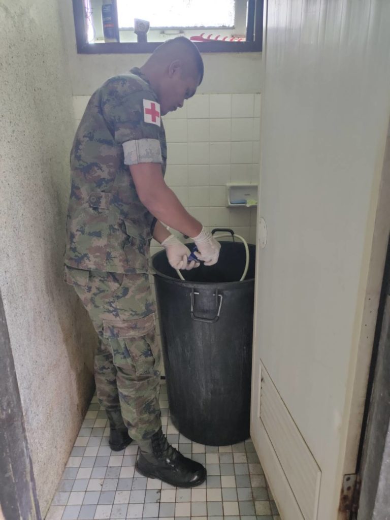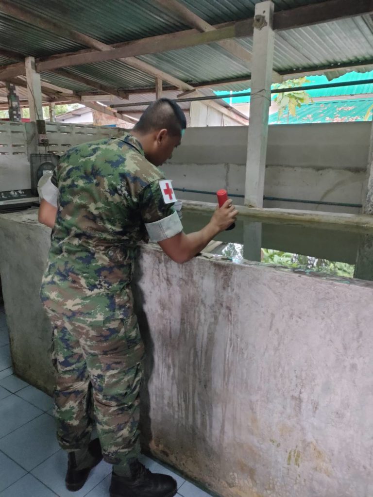 ๒๑ ต.ค.๖๓ จนท.เวชกรรมป้องกัน ร้อย. พ. กอง สนช. กจต. ดำเนินการสำรวจลูกน้ำยุงลาย,หยอดทรายอะเบท และทำลายแหล่งเพาะพันธุ์ลูกน้ำยุงลาย ภายในบริเวณพื้นที่ค่ายตากสิน อ.เมืองจันทบุรี จว.จันทบุรี