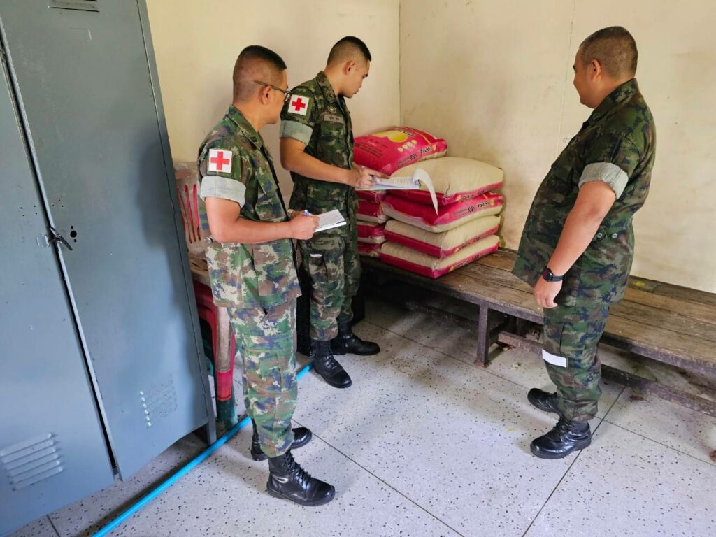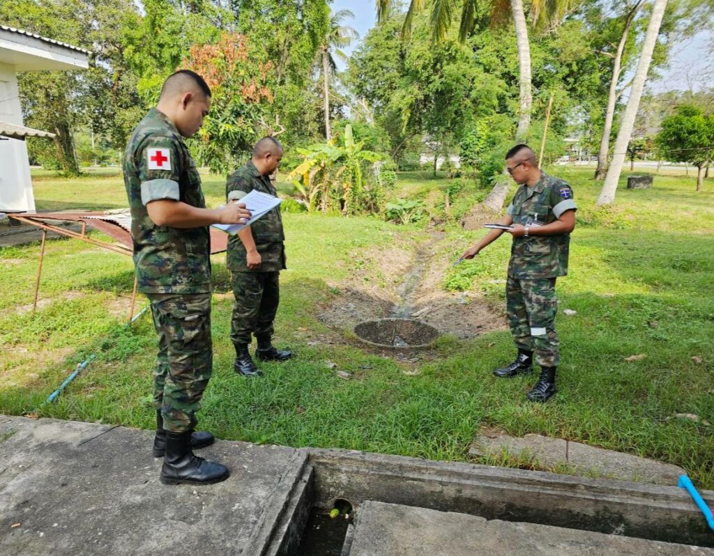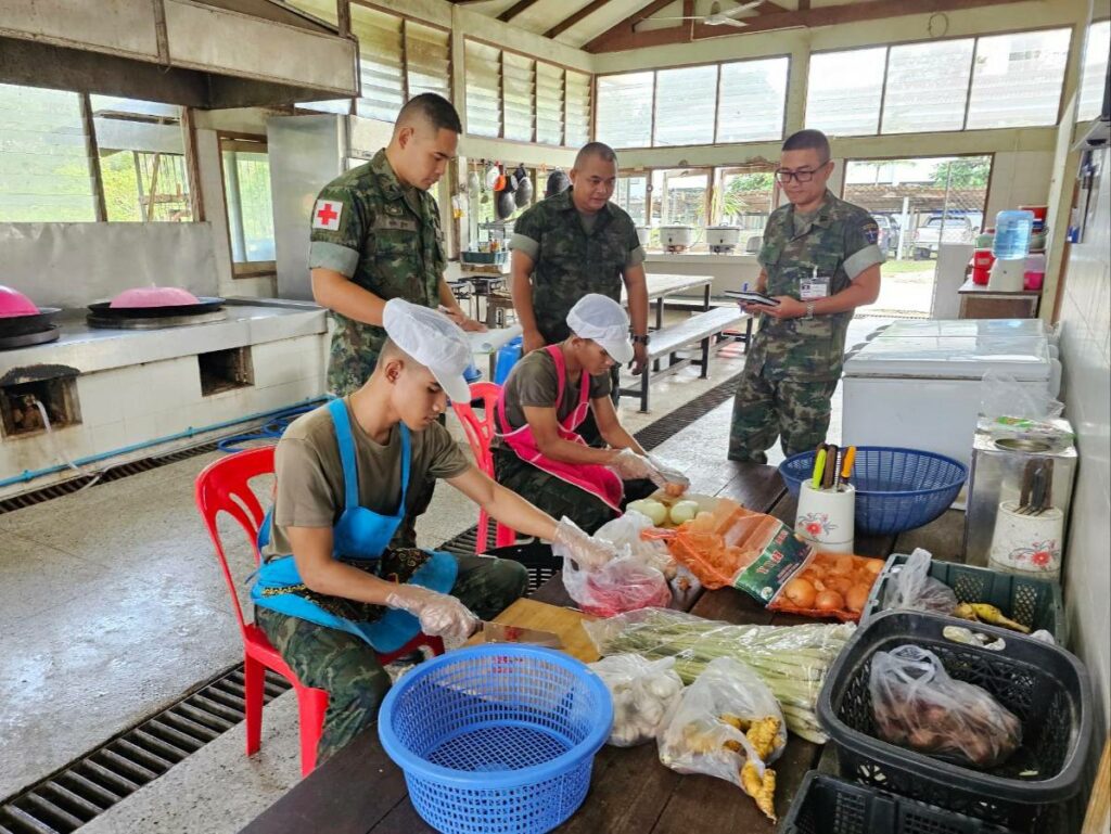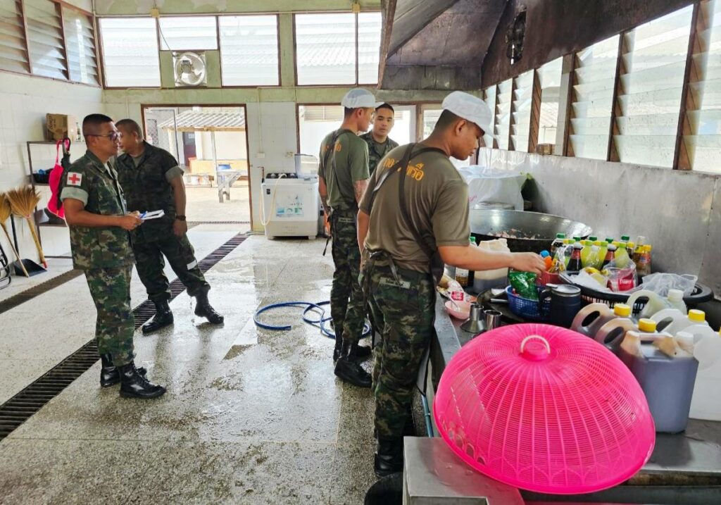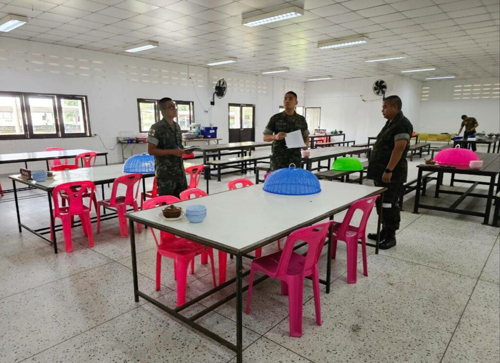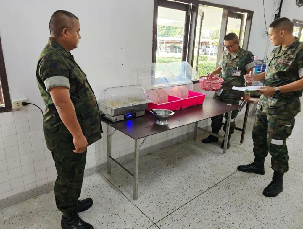 เมื่อ ๒๒ ม.ค.๖๘ ร.ท.มานะ จินดาศรี นายทหารพยาบาล และ จนท.เวชกรรมป้องกัน ชพค.ฉก.นย.ทร. ดำเนินการตรวจประเมินโรงครัว ตอนสูทกรรม กองพันทหารปืนใหญ่เบากระสุนวิถีโค้งที่ ๒ กรมทหารปืนใหญ่ กองพลนาวิกโธิน ค่ายจุฬาภรณ์ จว.นราธิวาส ตามนโยบาย ผบ.ทร. และตามมาตรฐานสุขาภิบาลอาหาร พร้อมให้คำแนะนำในการปรับปรุง ณ พัน ปบค.๒ กรม ป.พล.นย.