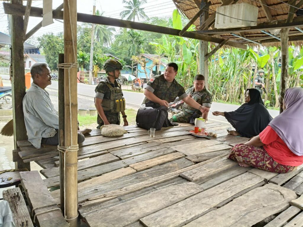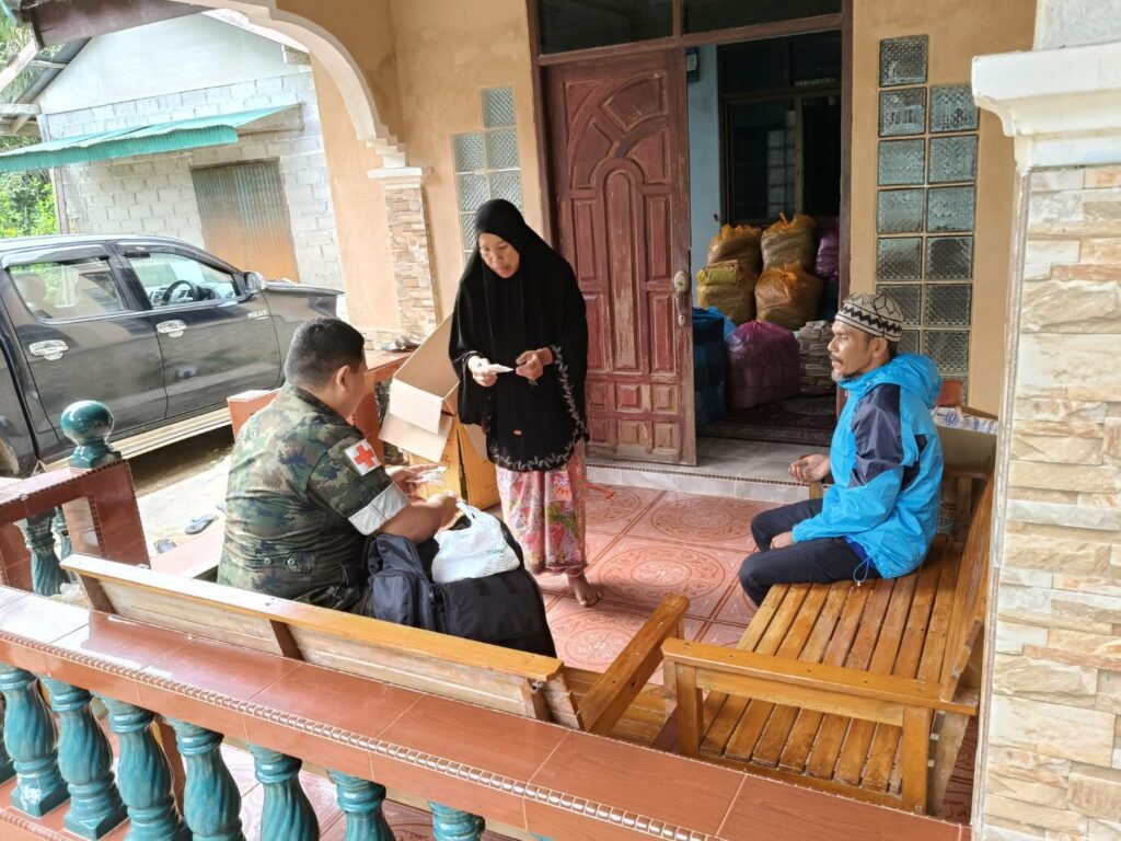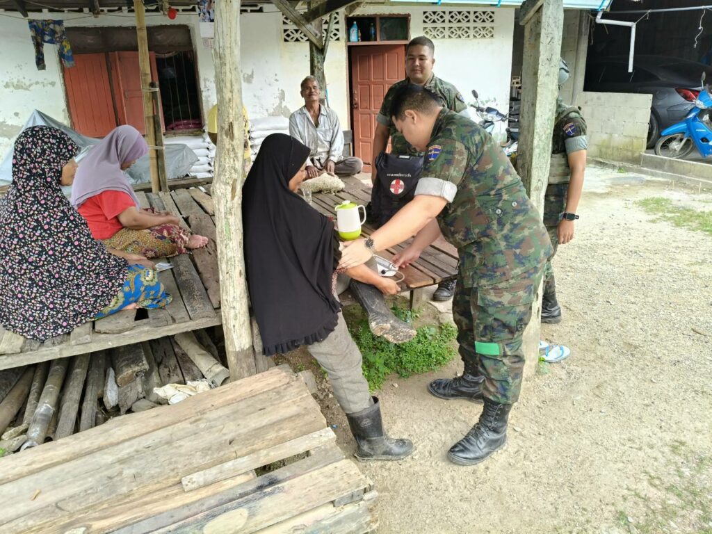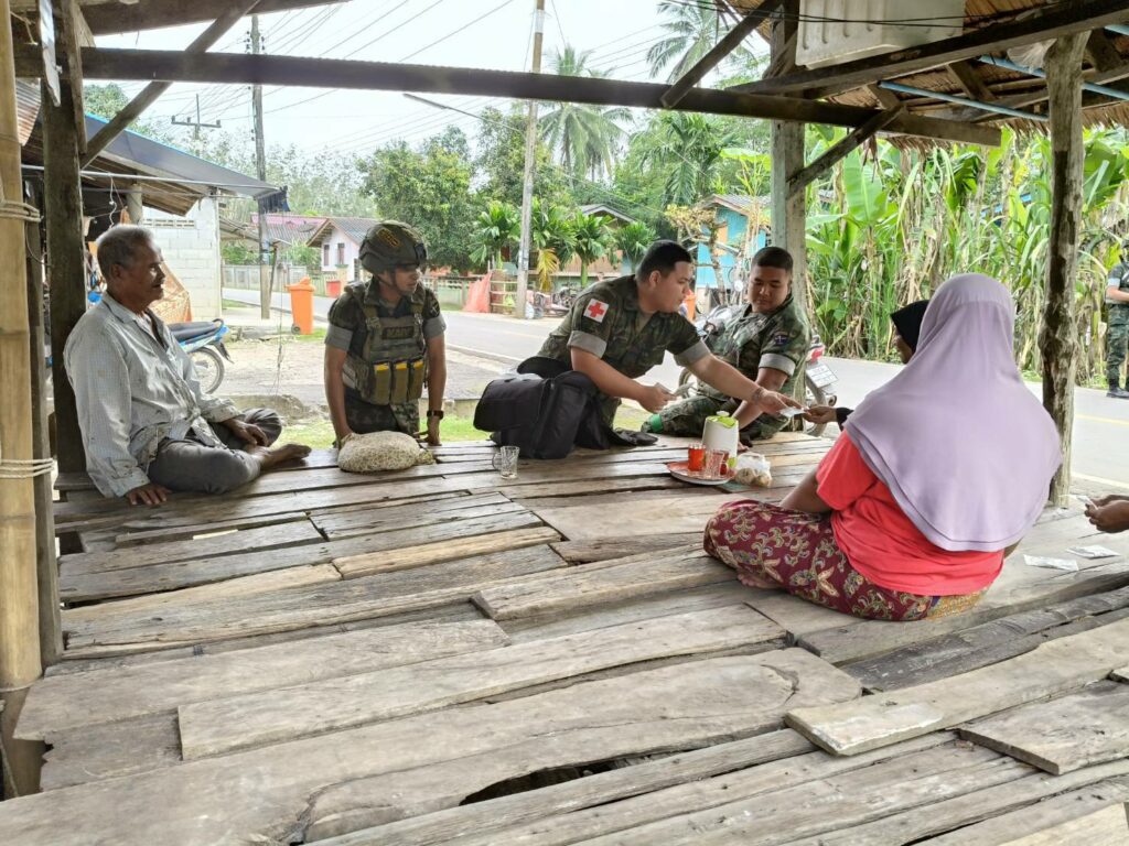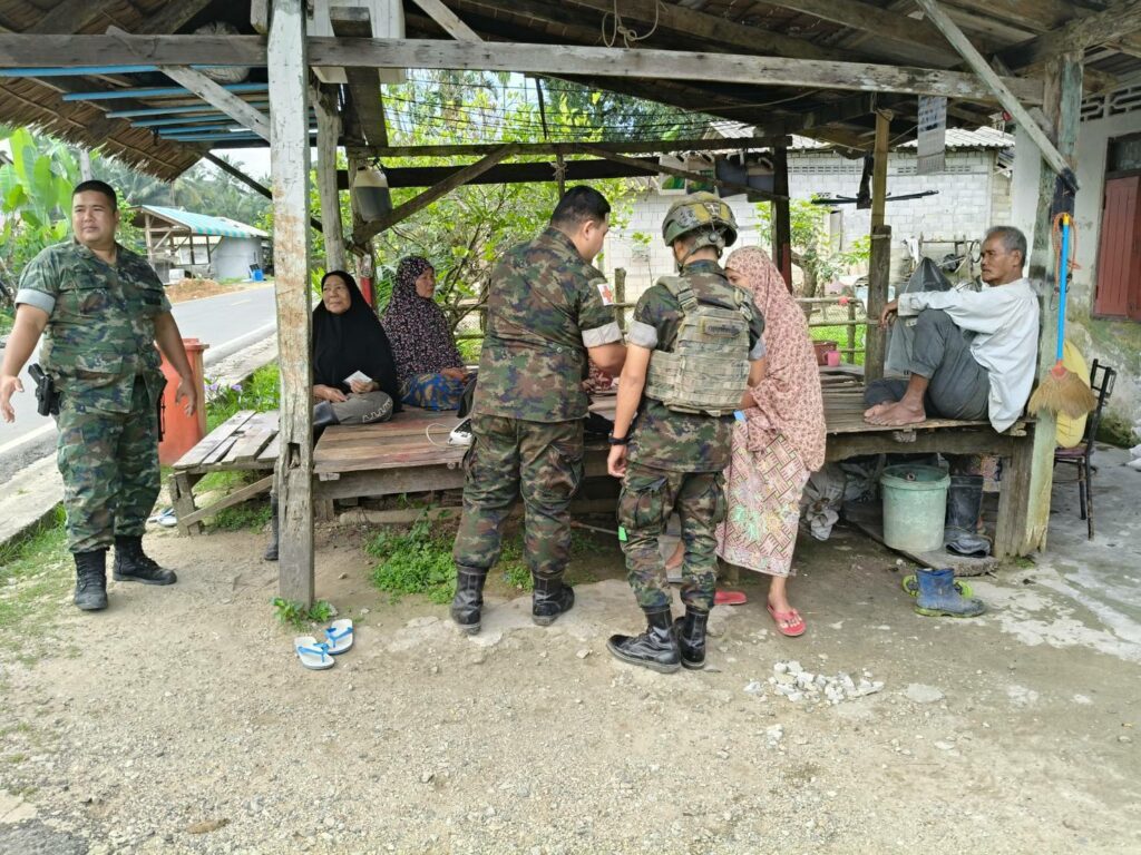 เมื่อ ๖ ก.พ.๖๘ ร.ท.ชิษณุพงศ์ วงษ์แสงจันทร์ ผบ.ร้อยปืนเล็กที่ ๓ ฉก.นย.ทร.๓๓ มอบหมายให้ ชป.กร.ในสังกัด เข้าพบปะเยี่ยมเยียน แจกจ่ายยาสามัญประจำบ้านให้กับประชาชนในพื้นที่ เพื่อแสดงออกถึงความห่วงใยและสร้างความสัมพันธ์อันดีต่อกัน ณ บ.ปะดาดอ ต.นานาค อ.ตากใบ จว.นราธิวาส / พัน.พ.กรม สน.พล.นย. / By ข่าวผู้บังคับบัญชา จำนวนคนดู : 4