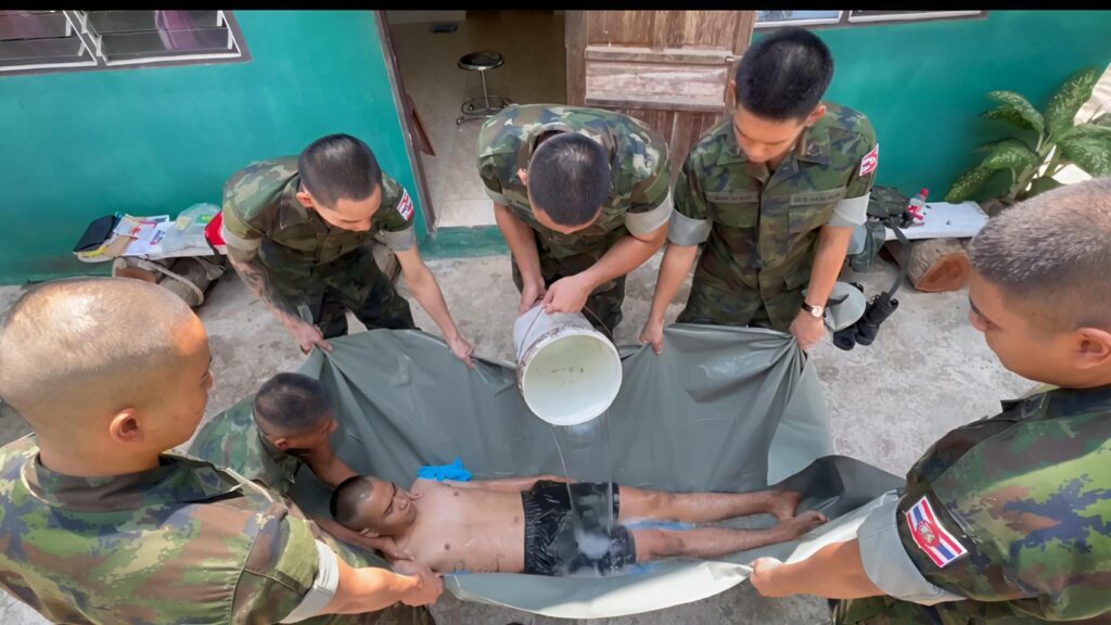 เมื่อ ๓ มี.ค.๖๘ ตอน พ.ฉก.นย.๑๘๒ ดำเนินการฝึกทบทวนเพื่อเพิ่มทักษะและความชำนาญ เรื่องการป้องกันและการปฐมพยาบาลผู้ป่วยโรคอันตรายจากความร้อนจากการฝึกให้กับกำลังพลสายแพทย์ (Unit school) เพื่อเฝ้าระวังและเตรียมการป้องกันโรคดังกล่าว เนื่องจากประเทศไทยเข้าสู่ฤดูร้อนอาจเสี่ยงต่อการเกิดโรคอันตรายจากความร้อน (Heat injury) ในกำลังพลที่ปฏิบัติงานหรือฝึกกลางแจ้ง ณ ตอน พยาบาล ฉก.นย.๑๘๒ บ้านหาดเล็ก อ.คลองใหญ่ จว.ตราด