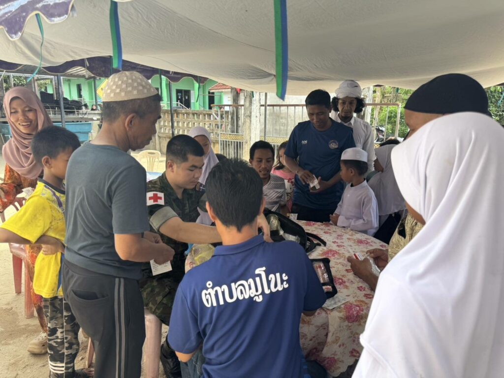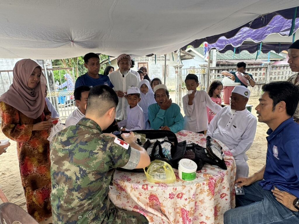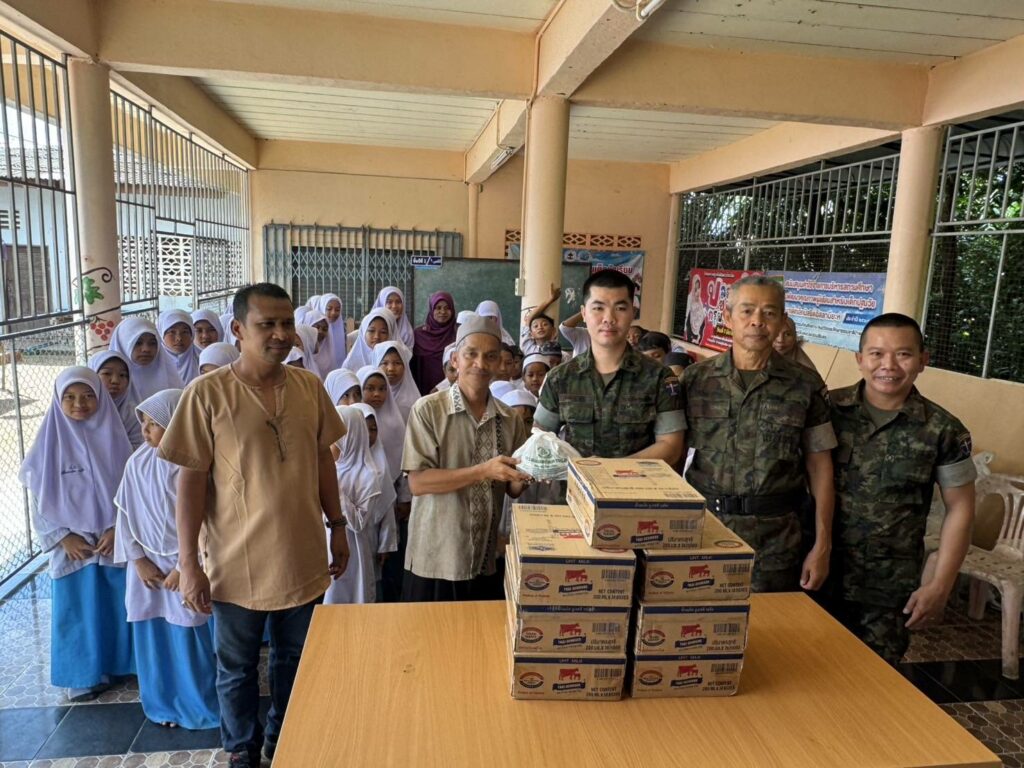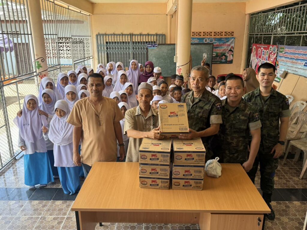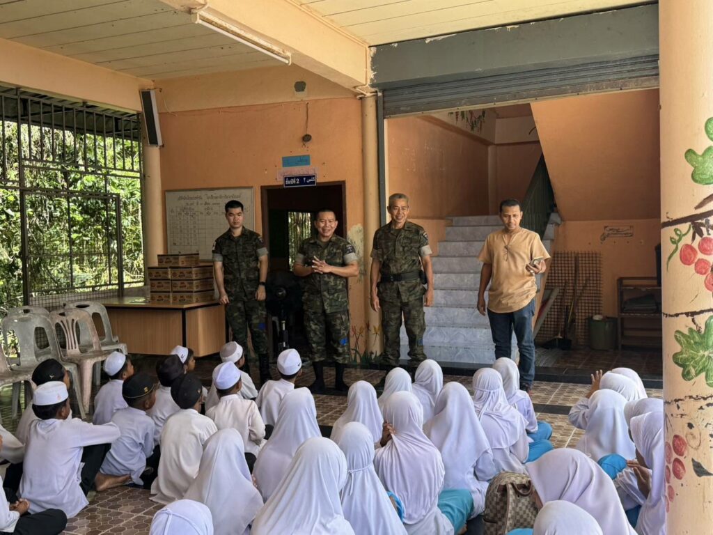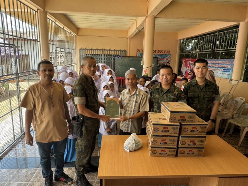 เมื่อ ๑๙ เม.ย.๖๘ ร.ต.ประสิทธิ์ ศรีไชย หน.ชป.กร. ร้อยปืนเล็กที่ ๔ ฉก.นย.ทร.๓๓ ชป.กร.ร้อย.ปืนเล็กที่ ๔ และ จนท.พยาบาล ร้อย.ปืนเล็กที่ ๔ ฉก.นย.ทร.๓๓ ร่วมกับ ว่าที่ ร.ต.ประเสริฐ อาแว กำนันตำบลมูโนะ เข้าพบปะพูดคุยพัฒนาสัมพันธ์กับครู และนักเรียน พร้อมมอบนม และมอบเอกสารยะกีน ตีกาบเล็ก (ฉบับชาวบ้าน) ให้กับคณะกรรมการมัสยิด และมอบยารักษาโรคเบื้องต้นให้กับประชาชน ณ ศูยน์พัฒนาเด็กเล็กมัสยิดอิสลามียะห์ ม.๔ ต.มูโนะ อ.สุไหงโก-ลก จว.นราธิวาส / พัน.พ.กรม สน.พล.นย. / By ข่าวผู้บังคับบัญชา จำนวนคนดู : 4