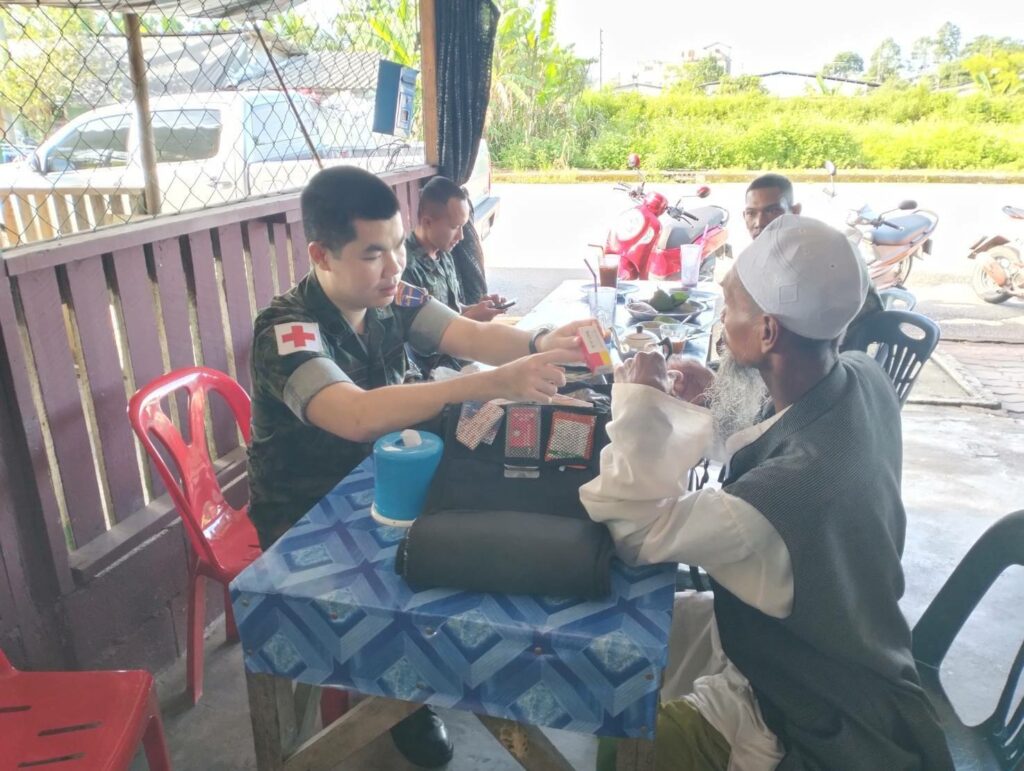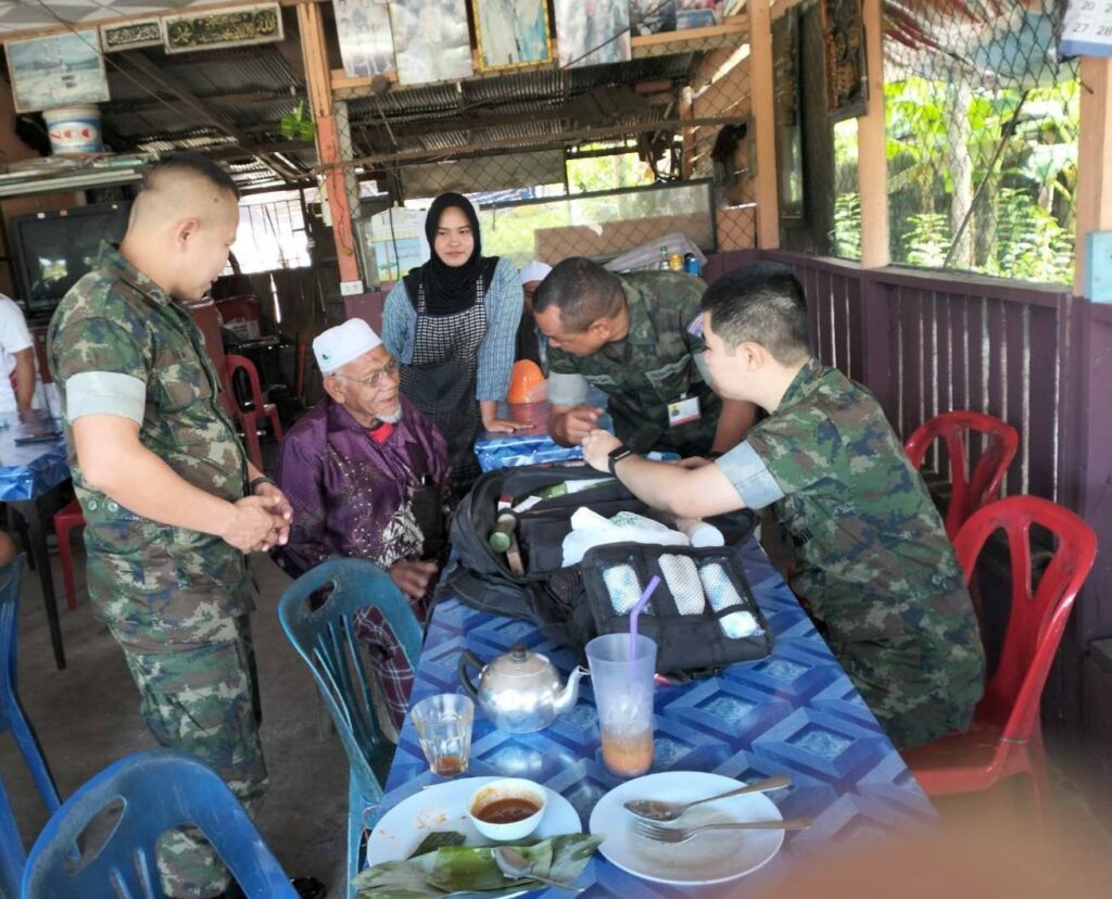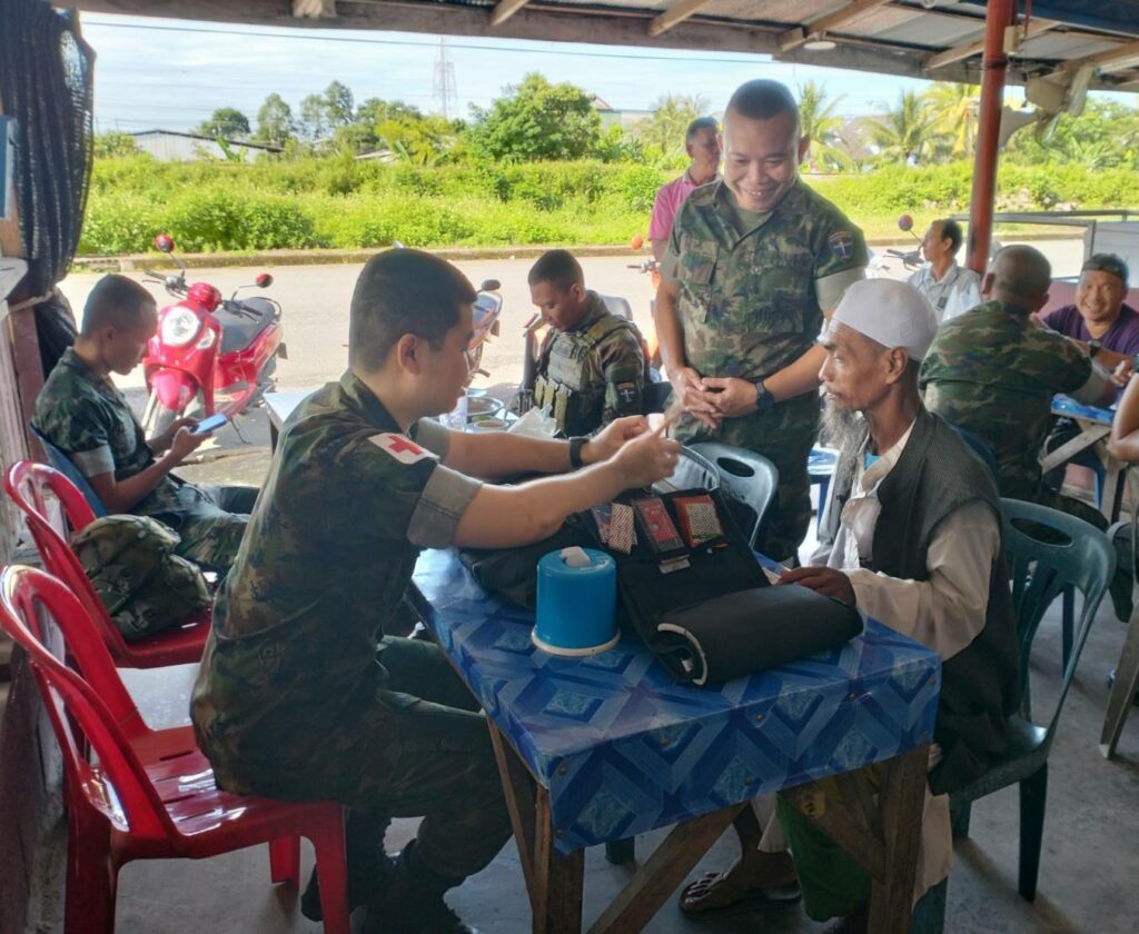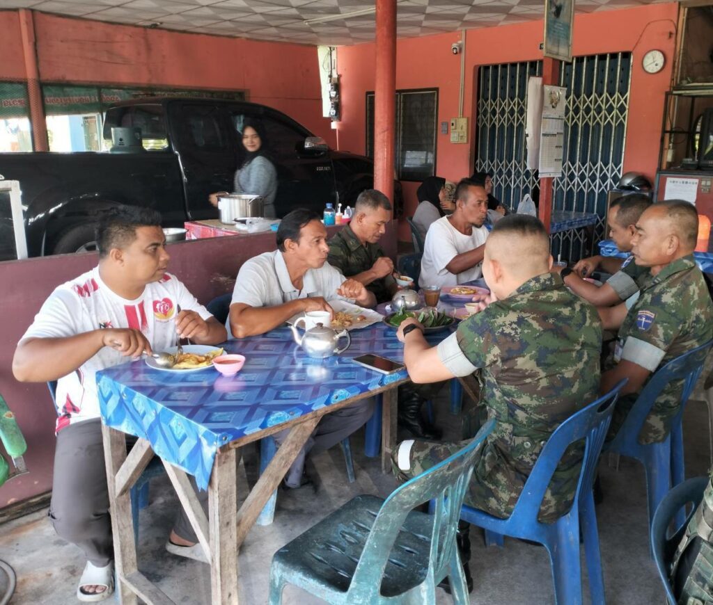 เมื่อ ๒๖ พ.ค.๖๘ ชป.กร.ร้อย.ปืนเล็กที่ ๔ ฉก.นย.ทร.๓๓ ผช.นกร.ฉก.นย.ทร.๓๓ ชป.กร.ฉก.นย.ทร.๓๓ พบปะพูดคุยเยี่ยมเยียนสร้างสัมพันธ์ที่ดีกับผู้นำชุมชนและประชาชนที่ร้านน้ำชาประจำหมู่บ้าน พร้อมทั้งสร้างความเข้าใจและความเชื่อมั่นให้กับพี่น้องประชาชนในพื้นที่และมอบยาสามัญประจำบ้าน ซึ่งเกี่ยวข้องในเรื่อง ฮูกุมปากัต (ธรรมนูญหมู่บ้าน) ๙ ดี ณ ร้านน้ำชา ม.๑ ต.ปาเสมัส อ.สุไหงโก-ลก จว.นราธิวาส
