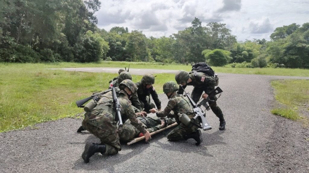 เมื่อ ๒๘ พ.ค.๖๘ มว.พ.ที่ ๑ ทำการฝึกร่วม พัน.ร.ฉก.นย.ตราด เพื่อเตรียมความพร้อมรองรับสถานการณ์ที่อาจเกิดขึ้นและภารกิจที่ได้รับมอบจากหน่วยเหนือ โดยการฝึกยุทธวิธีทหารราบ และการส่งกลับทางสายแพทย์ ณ พัน.ร.ฉก.นย.ตราด ต.ตะกาง อ.เมืองตราด จว.ตราด / พัน.พ.กรม สน.พล.นย. / By ข่าวผู้บังคับบัญชา จำนวนคนดู : 6