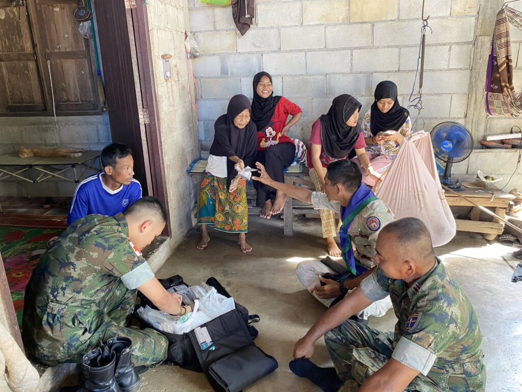 เมื่อ ๓๑ พ.ค.๖๘ ผช.นกร.ฉก.นย.ทร.๓๓ พร้อมด้วย รอง หน.ชป.กร.ฉก.นย.ทร.๓๓ เเละ จนท.พยาบาล ฉก.นย.ทร.๓๓ ลงพื้นที่พบปะเยี่ยมเยียนพูดคุยสร้างสัมพันธ์ที่ดีกับประชาชนในพื้นที่ เยี่ยมผู้ป่วยติดเตียง พร้อมทั้งมอบข้าวสาร และมอบยาสามัญประจำบ้านให้กับประชาชนในพื้นที่ ณ ม.๘ บ.ลูโบ๊ะซามา ต.ปาเสมัส อ.สุไหงโก-ลก จว.นราธิวาส
