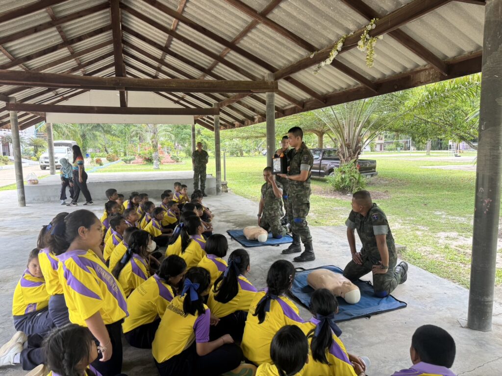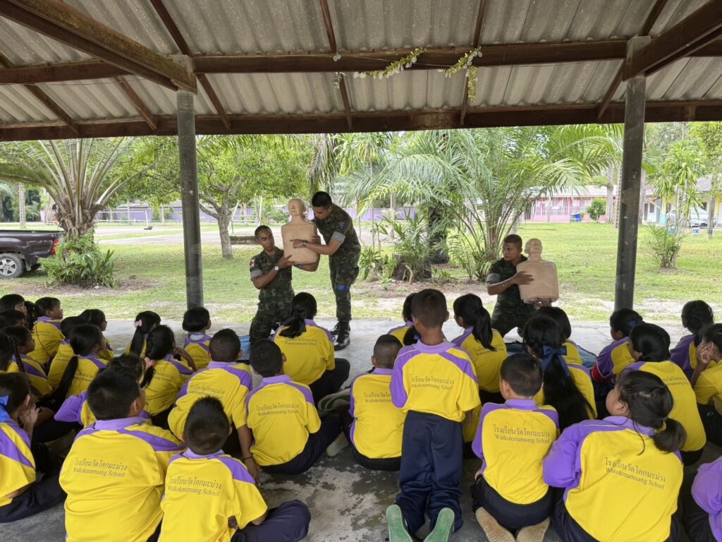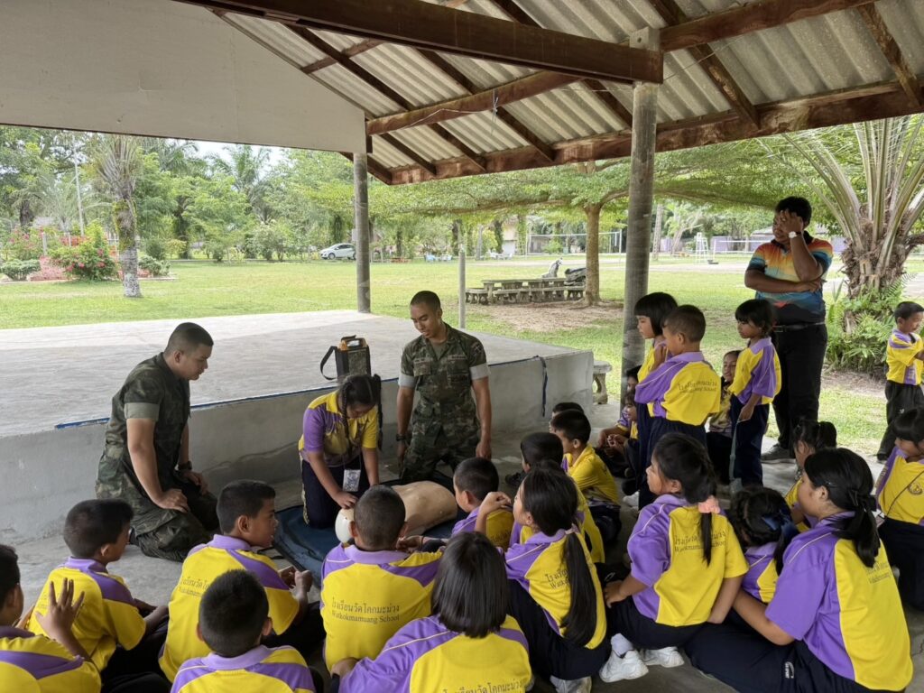 เมื่อ ๕ มิ.ย.๖๘ ว่าที่ ร.ท.สมโชค เเสงสายฟ้า รอง ผบ.ร้อย.ปืนเล็กที่ ๒ ฉก.นย.ทร.๓๓ พร้อมด้วย ชป.กร. และ จนท.พยาบาลประจำกองร้อย เข้าพบปะเยี่ยมเยียน และให้ความรู้เกี่ยวกับการกู้ฟื้นคืนชีพ (CPR) ให้แก่คณะครู และนักเรียน โรงเรียนวัดโคกมะม่วง ณ โรงเรียนวัดโคกมะม่วง ต.พร่อน อ.ตากใบ จว.นราธิวาส / พัน.พ.กรม สน.พล.นย. / By ข่าวผู้บังคับบัญชา จำนวนคนดู : 3