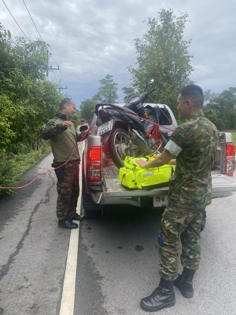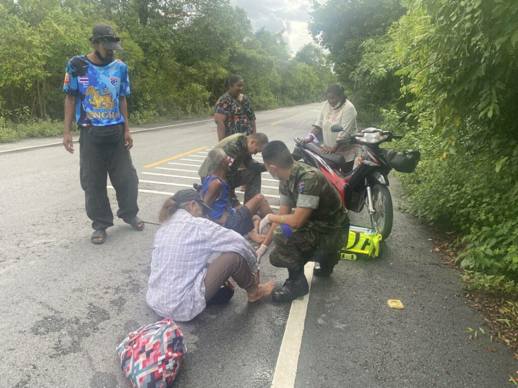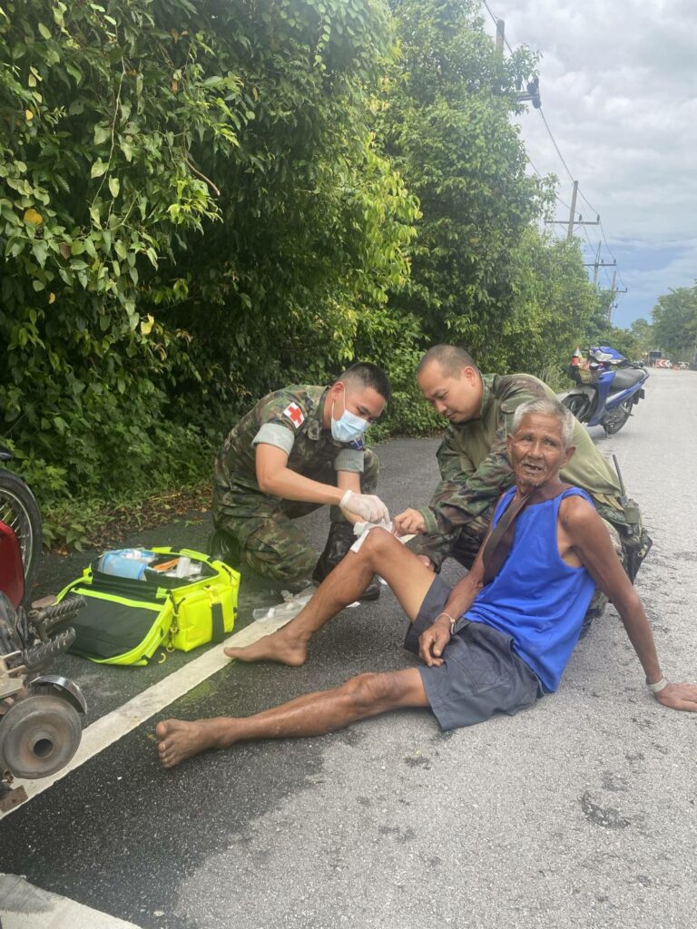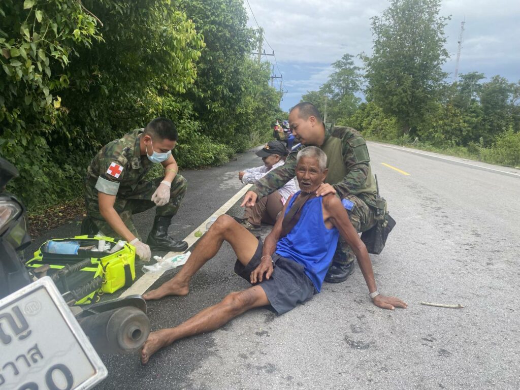 เมื่อ ๗ มิ.ย.๖๘ ฉก.นย.ทร.33 ร.ท.เชษฐา กาญจนรัตน์ ผช.นกร.ฉก.นย.ทร.๓๓ และ จนท.พยาบาล ได้รับแจ้ง มีผู้ประสบอุบัติเหตุขี่รถมอเตอร์ไซค์ล้มบริเวณหน้าฐานปฎิบัติการ มีผู้บาดเจ็บจำนวน ๒ ราย นาย สุข ทองคำ  ได้รับบาดเจ็บแผลถลอกบริเวณเข่าด้านขวาและบริเวณใบหน้าเล็กน้อย รู้สึกตัวดีถามตอบรู้เรื่อง และ ภรรยา ได้รับบาดเจ็บข้อเท้าเล็กน้อย รู้สึกตัวดี จนท.พยาบาลได้ให้การช่วยเหลือโดยการปฐมพยาบาลเบื้องต้นล้างแผล และเนื่องจากผู้บาดเจ็บปฏิเสธไปโรงพยาบาล หน่วย ฉก.นย.ทร.๓๓ จึงจัดรถนำผู้บาดเจ็บไปส่งที่บ้านได้อย่างปลอดภัย