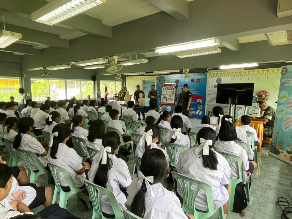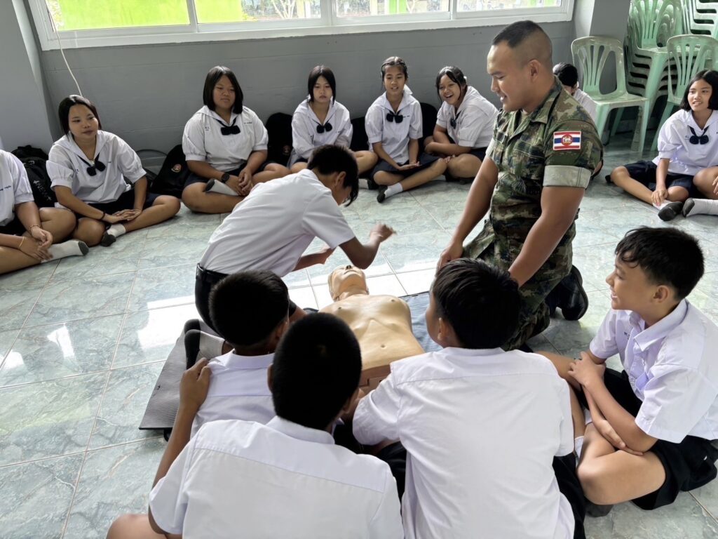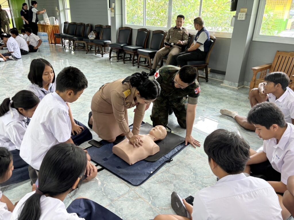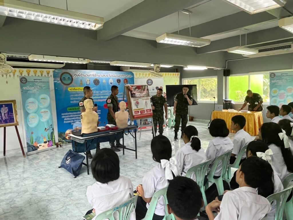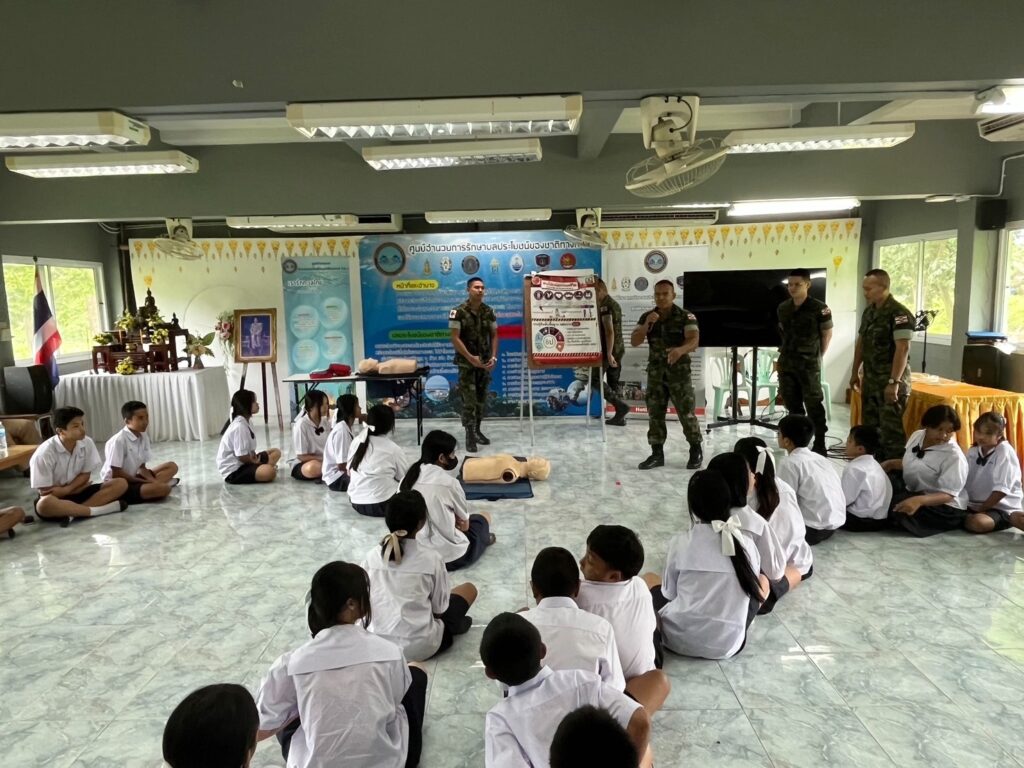 เมื่อ ๑๒ มิ.ย.๖๘ ว่าที่ ร.ต.อริญชย์ จัยสิน ผบ.ร้อย.พ.กอง สนช.กจต. และ จนท.พยาบาลดำเนินการให้ความรู้เรื่องการปฐมพยาบาลการช่วยฟื้นคืนชีพขั้นพื้นฐาน (CPR) และการใช้เครื่องฟื้นคืนคลื่นหัวใจด้วยไฟฟ้าแบบอัตโนมัติ (AED) ให้แก่นักเรียนชั้นมัธยมศึกษาตอนต้น ณ ร.ร.ศรีรัตร์ราษฎร์นุเคราะห์ ต.ทุ่งเบญจา อ.ท่าใหม่ จว.จันทบุรี / พัน.พ.กรม สน.พล.นย. / By ข่าวผู้บังคับบัญชา จำนวนคนดู : 7