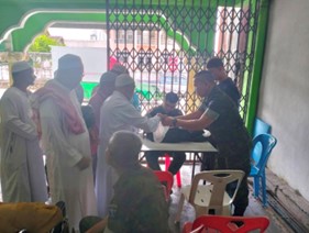 เมื่อ ๑๓ มิ.ย.๖๘ ร.ต.ประสิทธิ์ ศรีไชย หน.ชป.กร.ร้อยปืนเล็กที่ ๔ ฉก.นย.ทร.๓๓ และ จนท.พยาบาล ร้อย.ปืนเล็กที่ ๔ ฉก.นย.ทร.๓๓ เข้าพบปะพูดคุยสร้างสัมพันธ์ที่ดีกับผู้นำชุมชน ผู้นำศาสนา ร่วมละหมาดวันศุกร์ และมอบยาสามัญประจำบ้านให้แก่ประชาชน ณ มัสยิดอัลยุมอียะห์อัลฮาซานียะห์ ต.สุไหงโก-ลก อ.สุไหงโก-ลก จว.นราธิวาส