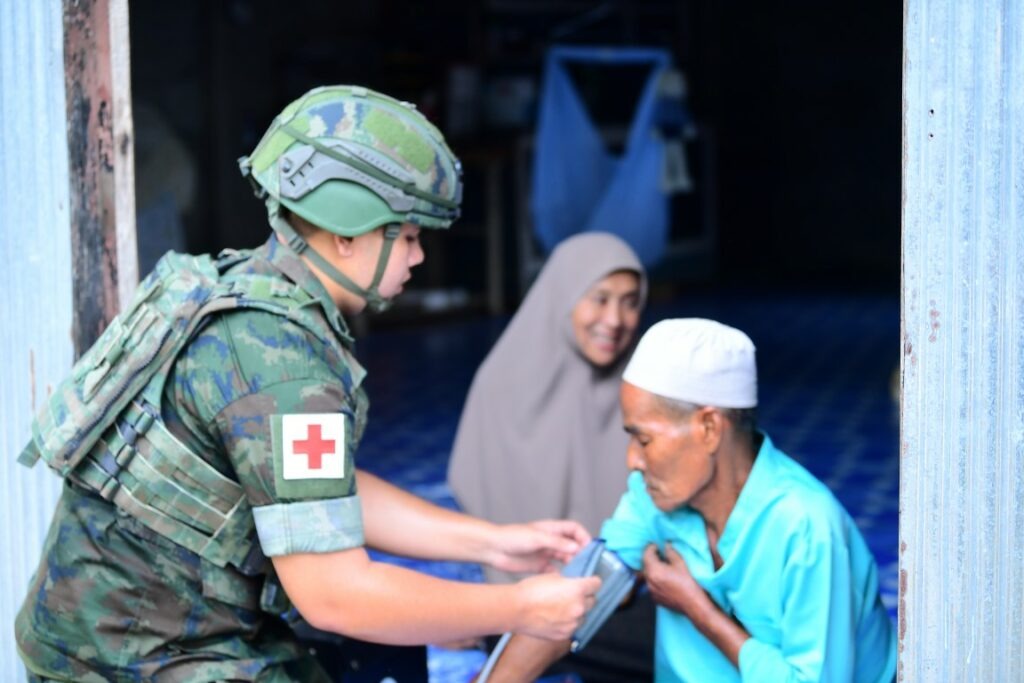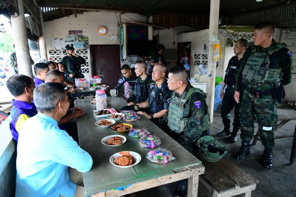 เมื่อ ๒๒ ต.ค.๖๘ น.อ.บัญญัติ วงศ์จำปา ผบ.ฉก.นย.ทร./ผบ.ฉก.นย.ภต. พร้อมด้วย ฝ่ายอำนวยการ,น.ท.พีรพงษ์ วงษ์จิรเจริญกุล ผบ.ฉก.นย.ทร.๓๓ ให้การต้อนรับ พล.ต.ยอดอาวุธ พึ่งพักตร์ ผบ.ฉก.นราธิวาส และคณะ ในโอกาสที่นำกำลังทหาร ตำรวจ และฝ่ายปกครอง ปฏิบัติภารกิจลาดตระเวนจรยุทธเชิงยุทธวิธีในพื้นที่ตามแนวชายแดนของ ต.ไพรวัน, ต.ศาลาใหม่, ต.เจ๊ะเห และเทศบาลตากใบ อ.ตากใบ จว.นราธิวาส / พัน.พ.กรม สน.พล.นย. / By ข่าวผู้บังคับบัญชา จำนวนคนดู : 0