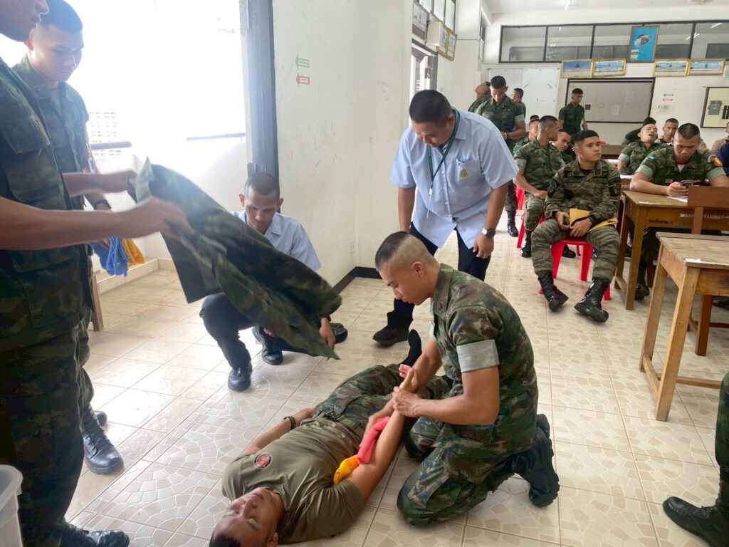 เมื่อ ๑๐ พ.ย.๖๘ แผนกอาชีวอนามัย กกป.รพ.อาภากรเกียรติวงศ์ ฐท.สส. ดำเนินโครงการอบรมการเฝ้าระวังป้องกันอันตรายจากความร้อน ระยะที่ ๒ ให้แก่นักเรียนหลักสูตรรบพิเศษแขนงการลาดตระเวนสะเทินน้ำสะเทินบกเเละจู่โจมนาวิกโยธิน ซึ่งผู้เข้ารับการอบรมจะได้รับความรู้ และฝึกปฏิบัติการปฐมพยาบาล กรณีมีผู้ป่วยโรคลมร้อน / พัน.พ.กรม สน.พล.นย. / By ข่าวผู้บังคับบัญชา จำนวนคนดู : 0