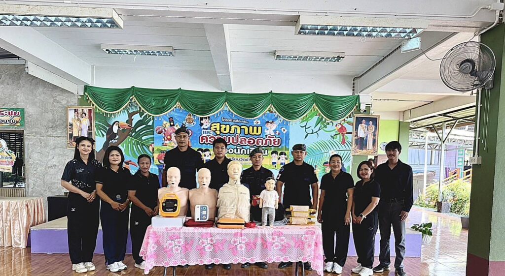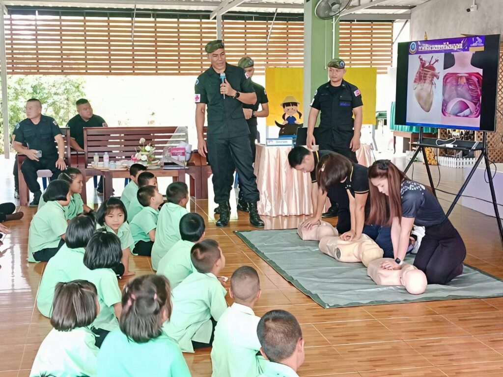 เมื่อ ๒๖ มี.ค.๖๙ พยาบาล ชค.ทพ.นย.๑ ให้การสนับสนุนวิทยากรอบรมความรู้ด้านการกู้ชีพขั้นพื้นฐาน (CPR & AED, BLS) และการปฐมพยาบาลเบื้องต้น แก่ครูและนักเรียนโรงเรียนวัดช้างทูน อ.บ่อไร่ จว.ตราด ภายใต้โครงการส่งเสริมสุขภาพและความปลอดภัยของนักเรียน ประจำปีงบประมาณ ๒๕๖๙ การอบรมมีวัตถุประสงค์เพื่อให้เยาวชนมีความรู้และทักษะในการช่วยเหลือผู้ประสบเหตุฉุกเฉิน สามารถนำไปใช้ดูแลตนเองและผู้อื่นได้อย่างถูกต้อง อีกทั้งยังเป็นการสนับสนุนการช่วยเหลือประชาชนในพื้นที่ สร้างความสัมพันธ์อันดี และเสริมสร้างความเชื่อมั่นต่อหน่วยงานทหาร