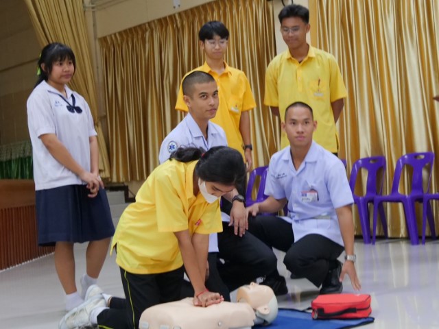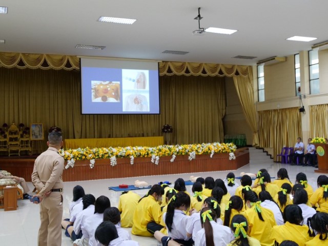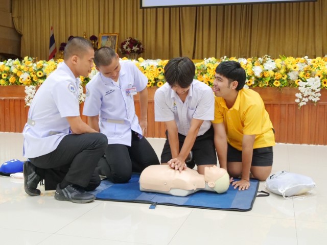 เมื่อ ๑๓ พ.ย.๖๖ รร.นวก.ศวก.พร. ให้การสนับสนุนคณะวิทยากรบรรยายเชิงปฏิบัติการ เรื่อง “การฝึกอบรมการปฐมพยาบาลเบื้องต้น และการกู้ชีพเบื้องต้น (CPR)” ตามแนวคิดของ “ชุมชนเข้มแข็ง” เพื่อเสริมสร้างกลไกความร่วมมือความเชื่อมั่นและดำรงความสัมพันธ์ ความร่วมมืออันดีระหว่างกองทัพเรือ กับชุมชน ณ รร.ประดู่ทรงธรรมใน / รร.นวก.ศวก.พร. / By ข่าวผู้บังคับบัญชา จำนวนคนดู : 3