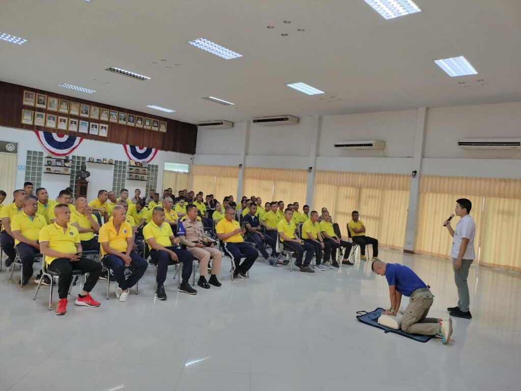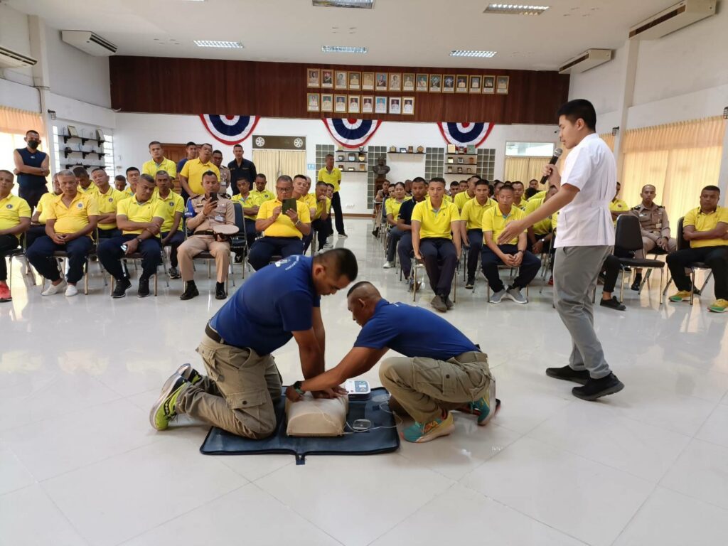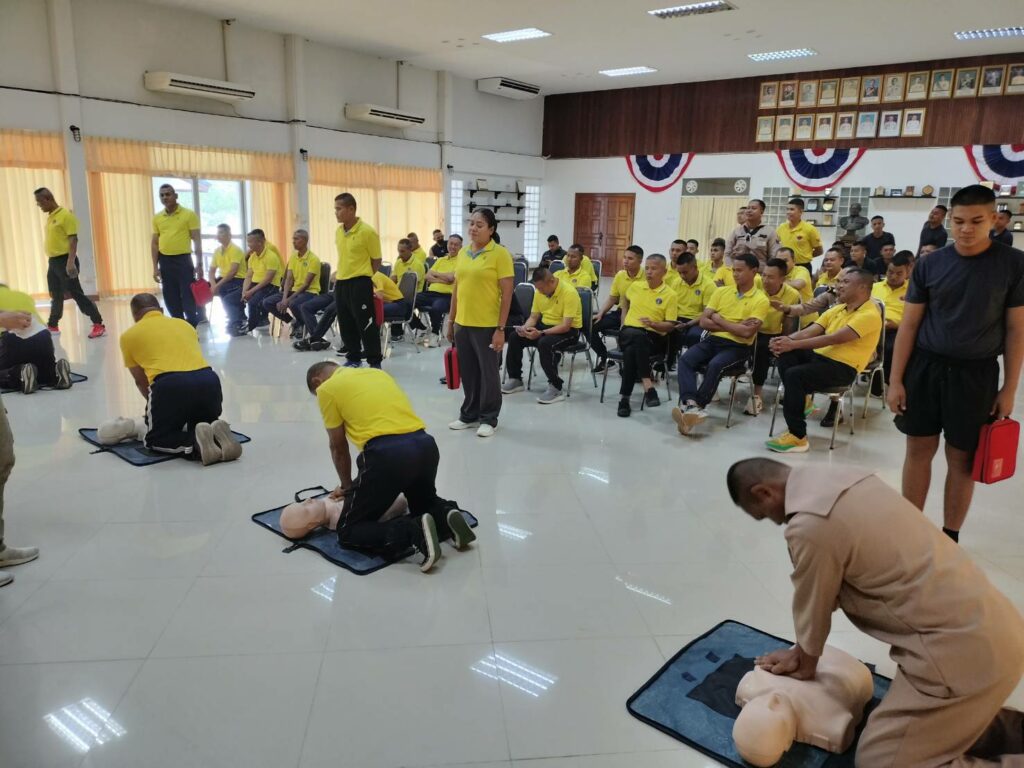 เมื่อ ๒๓ พ.ย.๖๖ ร.ต.รวินท์ ปัญจมะวัต รอง ผอ.รพ.ฐท.พง.ทรภ.๓ และทีมวิทยากรบรรยาย ให้ความรู้ ฝึกอบรมการปฐมพยาบาลเบื้องต้น การกู้ชีพขั้นพื้นฐาน(CPR) และการใช้เครื่องฟื้นคืนคลื่นหัวใจด้วยไฟฟ้าแบบอัตโนมัติ(AED) ให้แก่กำลังพล กองขนส่ง แผนกสรรพวุธ และ พัน สห.ทร.ที่ ๔ ณ สโมสรสัญญาบัตร ฐท.พง.ทรภ.๓ / รพ.ฐท.พง.ทรภ.๓ / By ข่าวผู้บังคับบัญชา จำนวนคนดู : 3