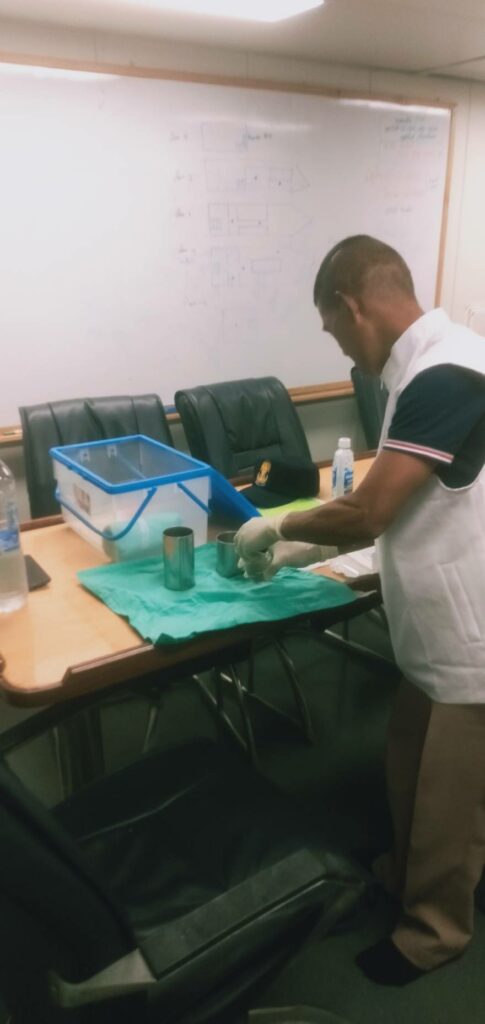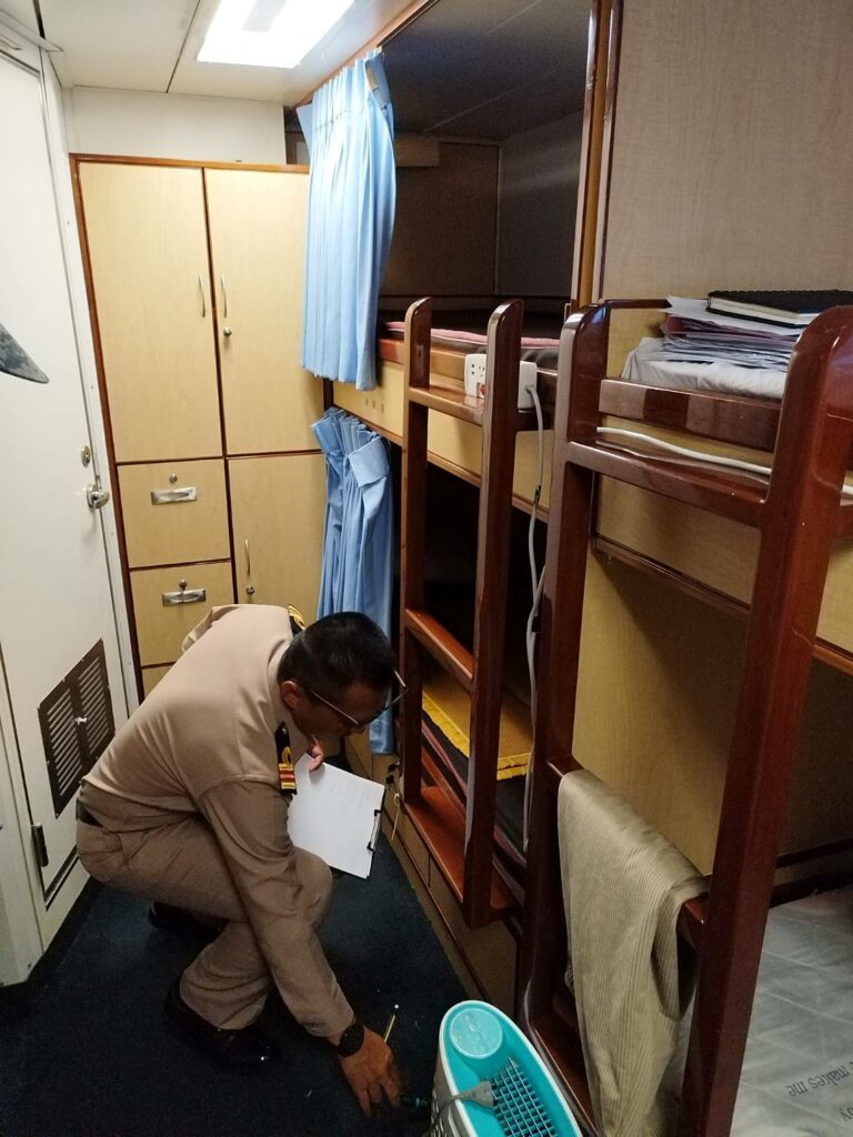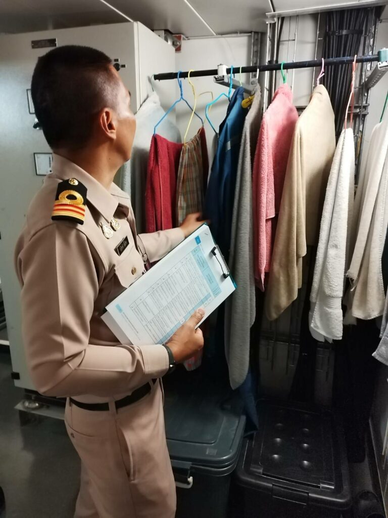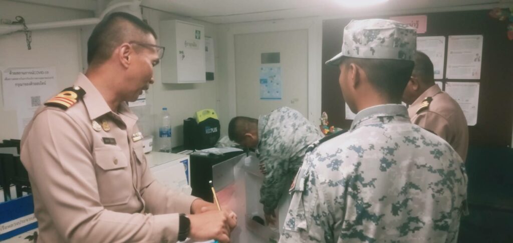 เมื่อ ๑๔ ธ.ค.๖๖ หมวดเวชกรรมป้องกัน รพ.ฐท.พง.ทรภ.๓ ดำเนินการตรวจสุขาภิบาลเรือ ให้แก่ ร.ล.ประจวบคีรีขันธ์ เพื่อออกเอกสารรับรองสุขาภิบาลเรือ (Ship Sanitation Certificates) กรณีที่เรือต้องเดินทางไปต่างประเทศตามกฎอนามัยระหว่างประเทศ (International Health Regulations: IHR 2005) ณ ร.ล.ประจวบคีรีขันธ์