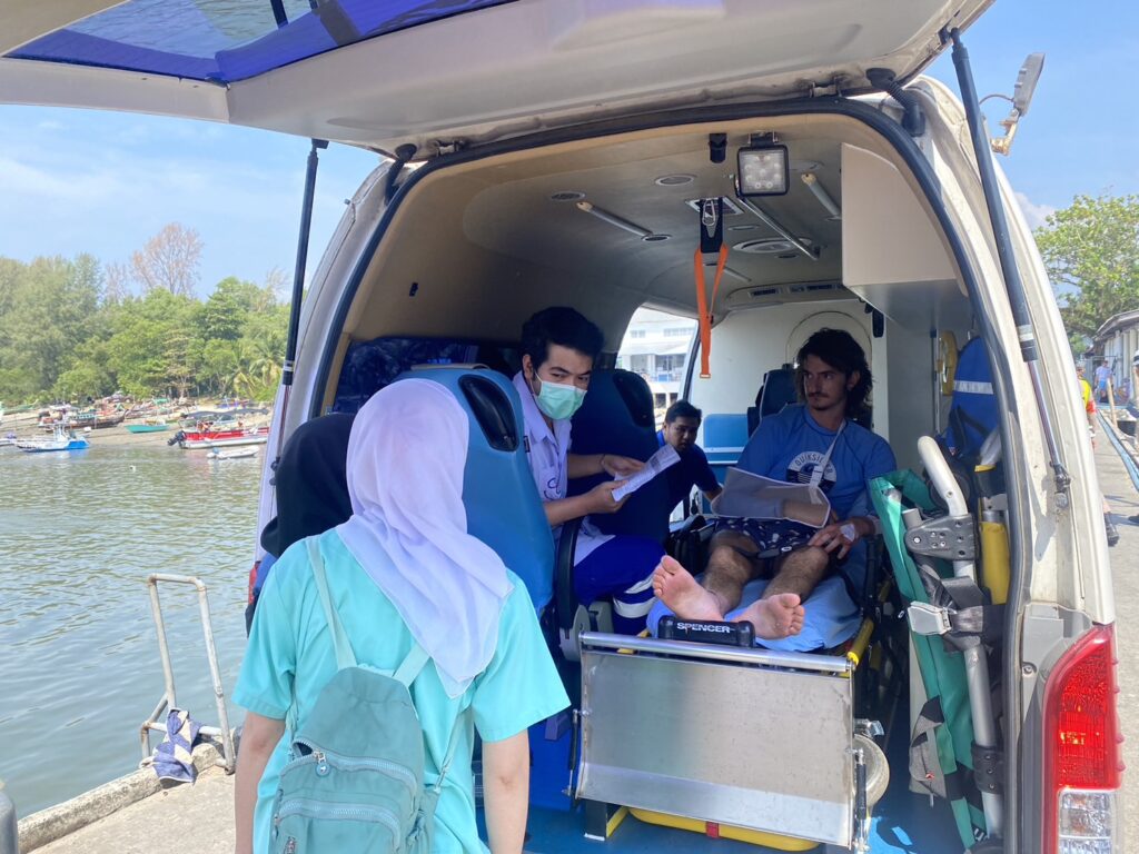 เมื่อ ๗ ก.พ.๖๗ ศคท.จว.พง.ฯได้รับแจ้งจาก จนท.นรภ.ทร.ก.สิมิลัน ว่ามีผู้ประสบอุบัติเหตุ ชื่อ Mr. paolo minadakis สัญชาติอิตาลี เพศชาย อายุ ๒๗ ปี เป็น drive master ของบริษัท ซี บรีซ ภูเก็ต จำกัด ซึ่งได้เดินทางไปยังอุทยานแห่งชาติหมู่ก.สิมิลัน กับเรือ speed boat โดย จนท.พยาบาลประจำอุทยานเเห่งชาติหมู่เกาะสิมิลัน ได้ให้การช่วยเหลือ เเละทำการปฐมพยาบาลในเบื้องต้น เเละนำตัวมากับเรือพยาบาล สสจ.พังงา ต.ลำแก่น อ.ท้ายเหมือง จว.พังงา / รพ.ฐท.พง.ทรภ.๓ / By ข่าวผู้บังคับบัญชา จำนวนคนดู : 3