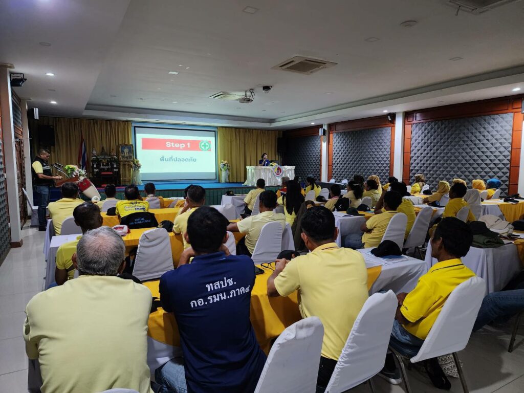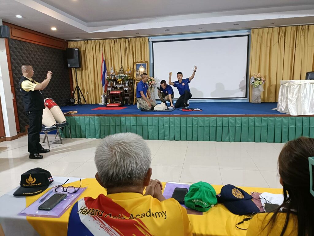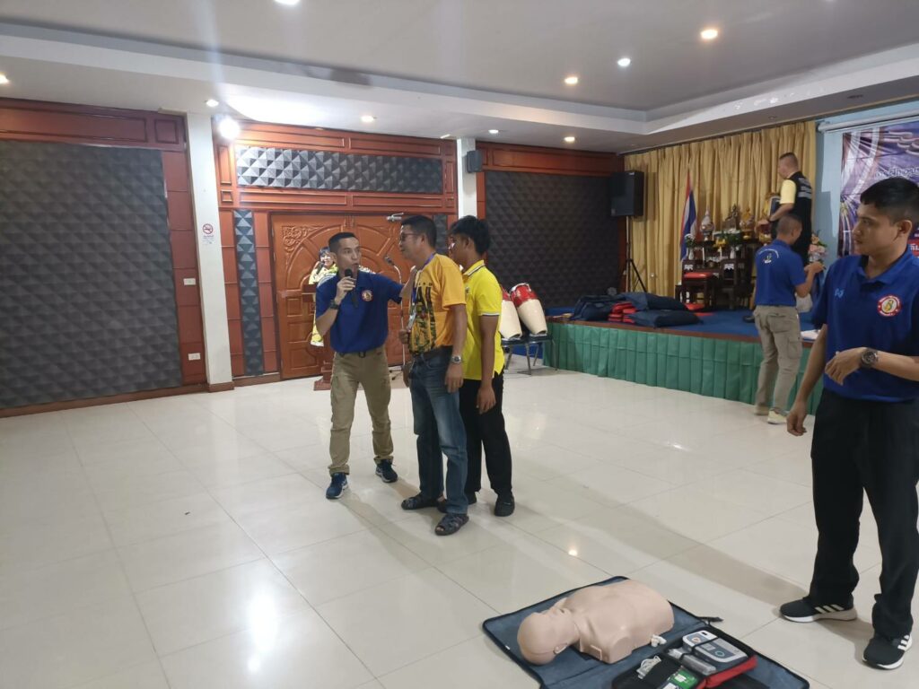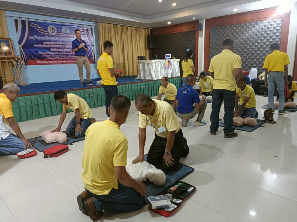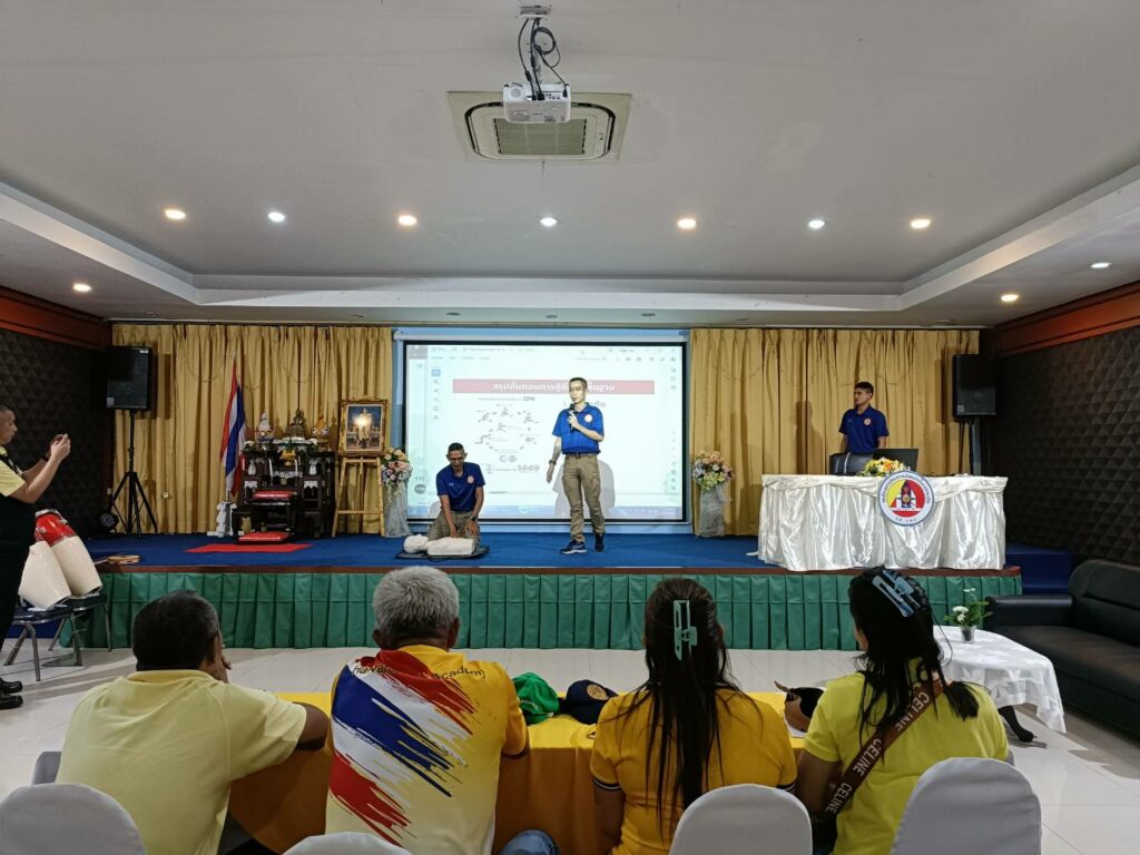 เมื่อ ๑ มี.ค.๖๗ รพ.ฐท.พง.ทรภ.๓ สนับสนุนวิทยากร บรรยายให้ความรู้ ฝึกอบรมการปฐมพยาบาลเบื้องต้น การกู้ชีพขั้นพื้นฐาน(CPR) และการใช้เครื่องฟื้นคืนคลื่นหัวใจด้วยไฟฟ้าแบบอัตโนมัติ(AED) ให้แก่ ไทยอาสาป้องกันชาติ (ทสปช.) กอ.รมน. จว.พังงา ณ ห้องพิงกัน โรงแรมภูงา ต.ตาดแดด อ.เมืองพังงา จว.พังงา / รพ.ฐท.พง.ทรภ.๓ / By ข่าวผู้บังคับบัญชา จำนวนคนดู : 8
